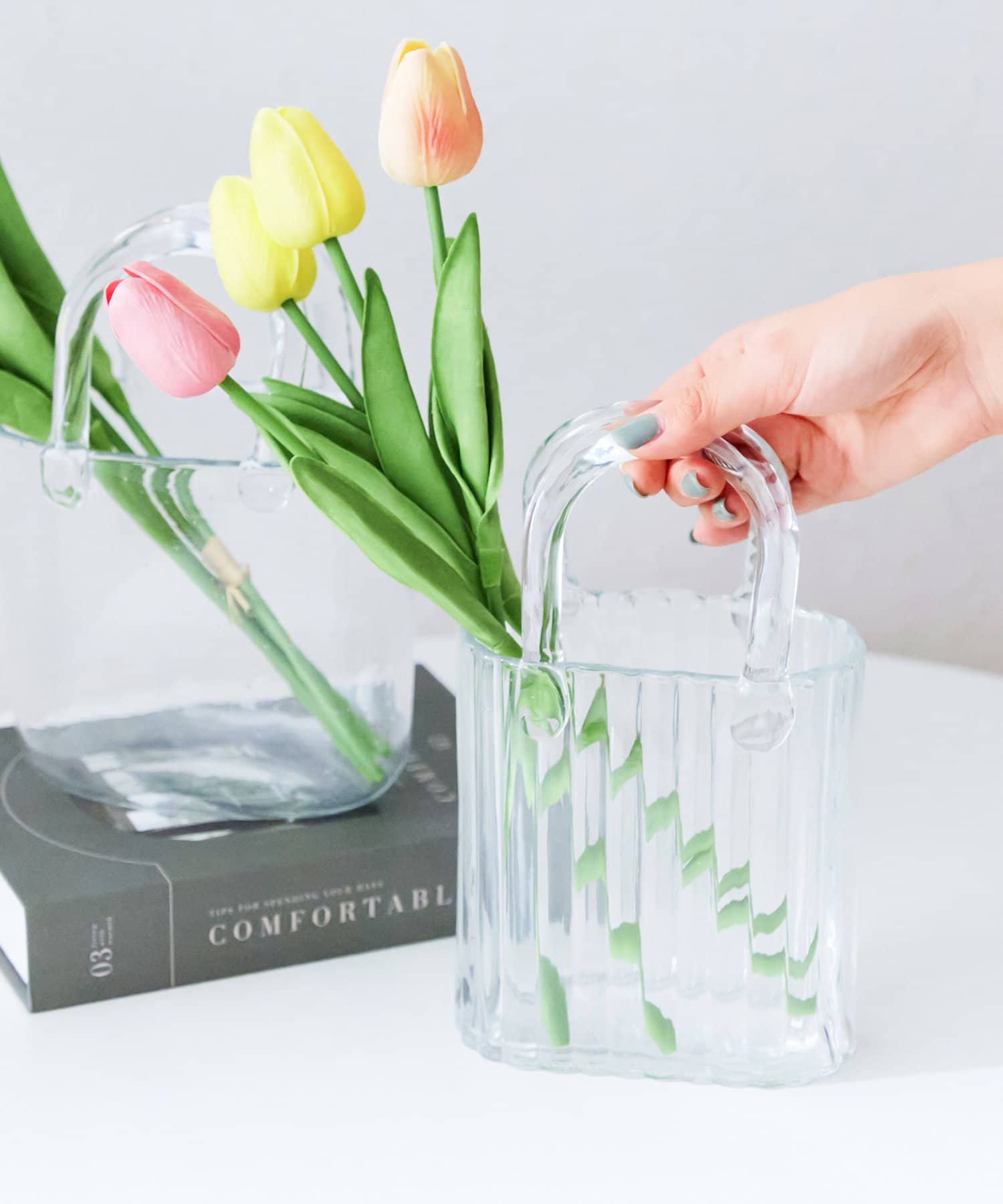 ●ユニークなバッグ型のオシャレなガラスフラワーベース。