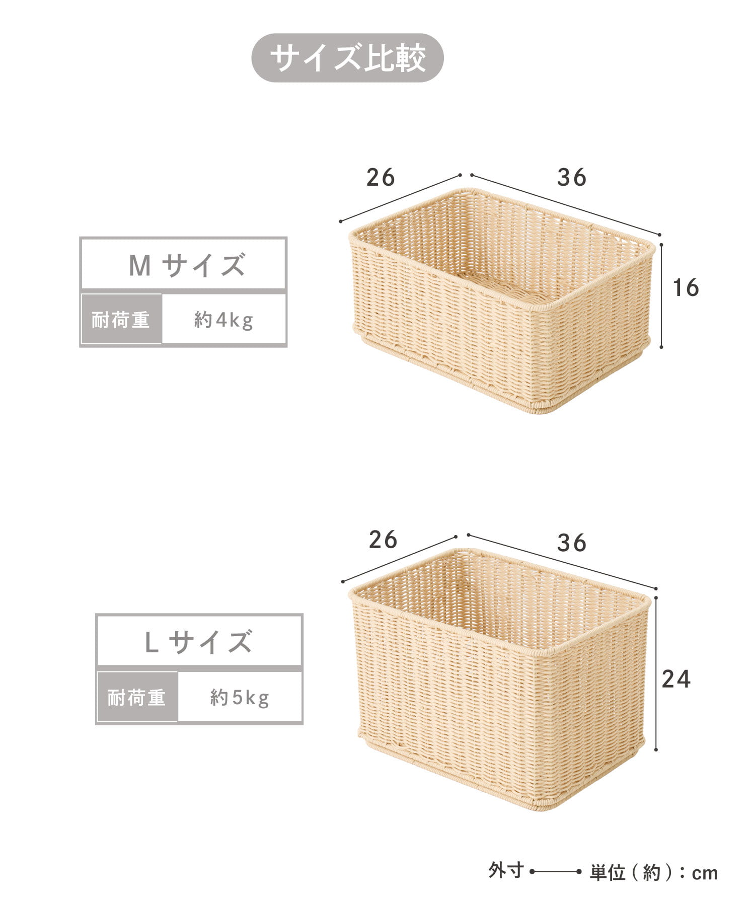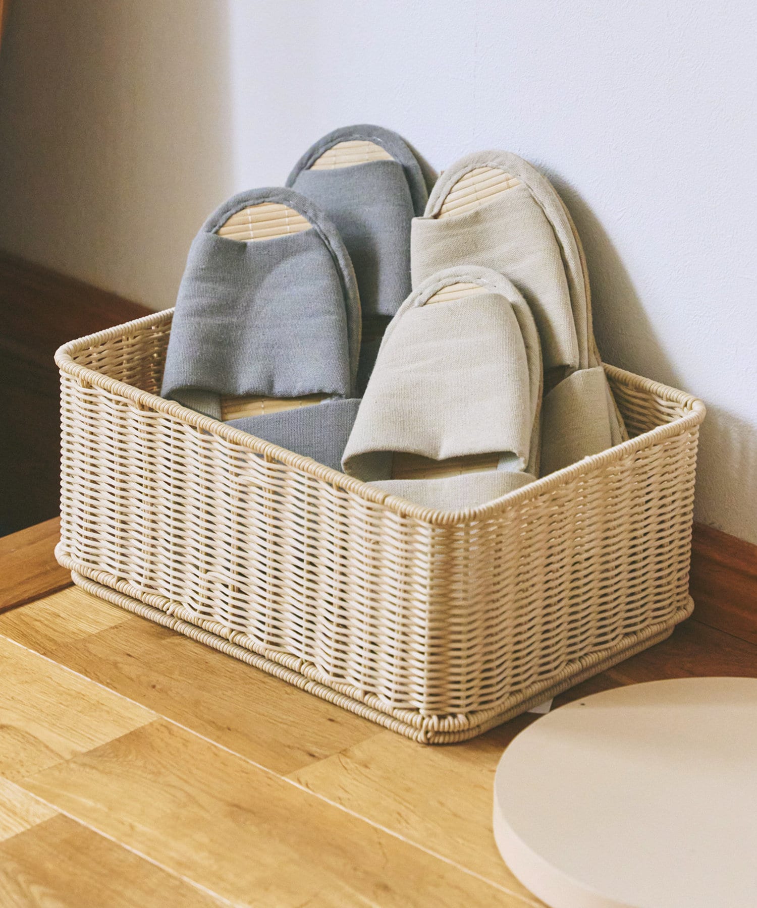 ●水で丸洗いできて便利なPPラタンのバスケット。