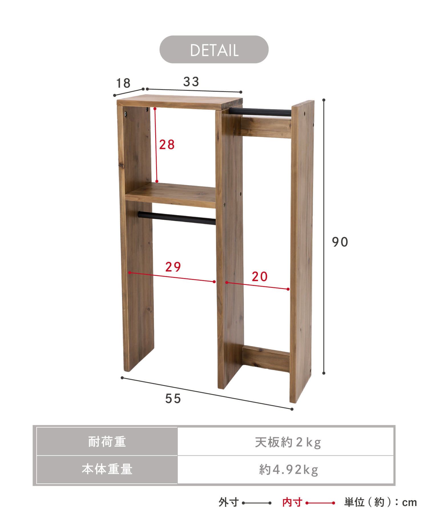 サイズ - 0 約高さ90×幅55.5×奥行き18cm 収納内寸:約高さ28×幅29×奥行き18cm
