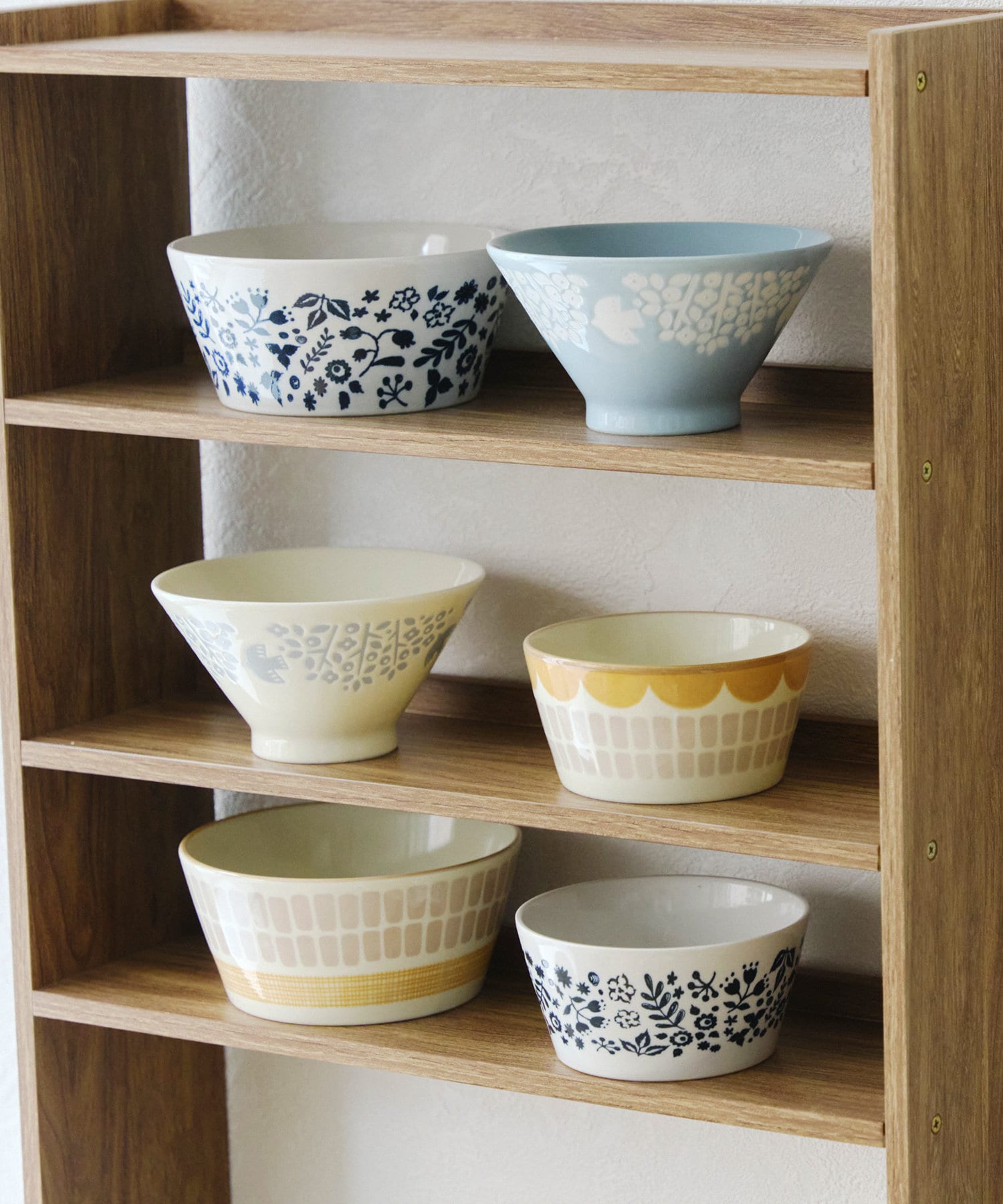 ●優しいカラーのかわいい小鳥と植物のナチュラルな柄が食卓を明るくしてくれます。