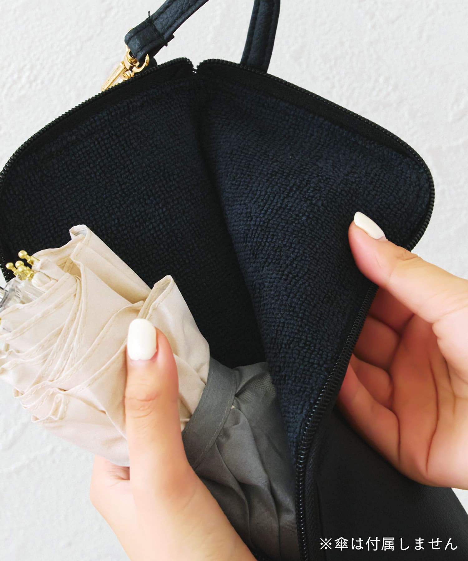 ●傘のデザインによって収納できない場合があります。サイズが合わない場合は使用しないでください。