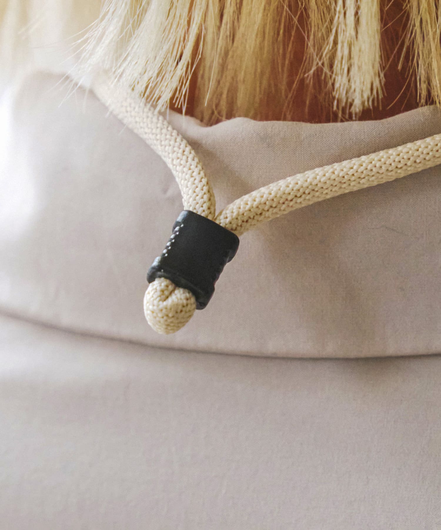 ●ハットの風飛びや落下を防止してくれるストラップ。