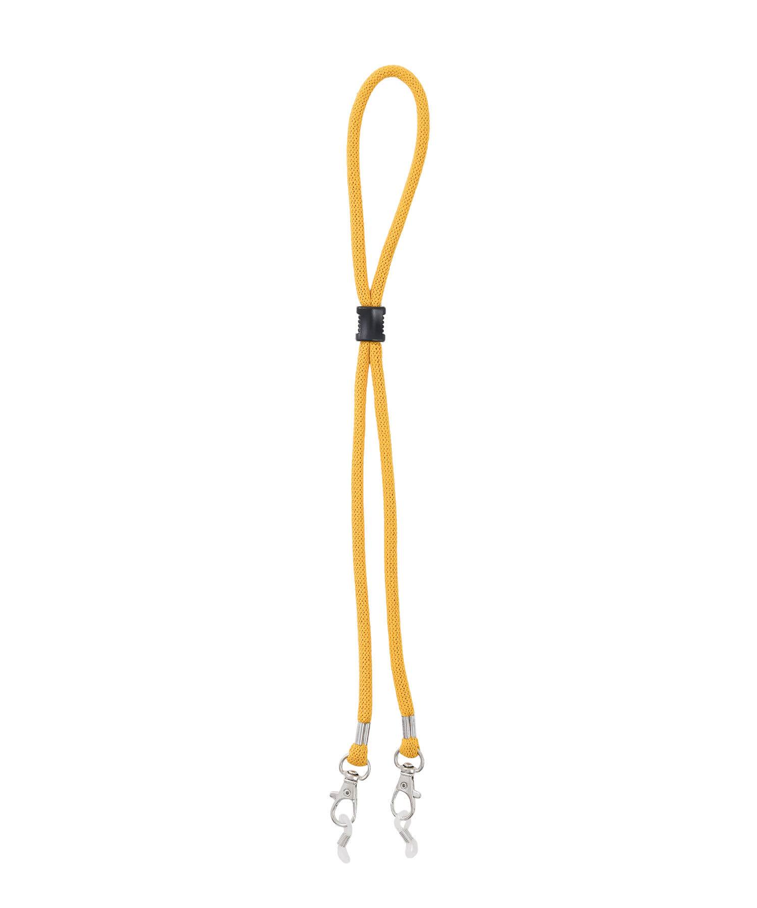 写真のようにメガネならいいと思いますが、帽子に付けるならちょっと短いかもしれません。でも黄色の太い紐のものはあまり見ないので、かわいいです!