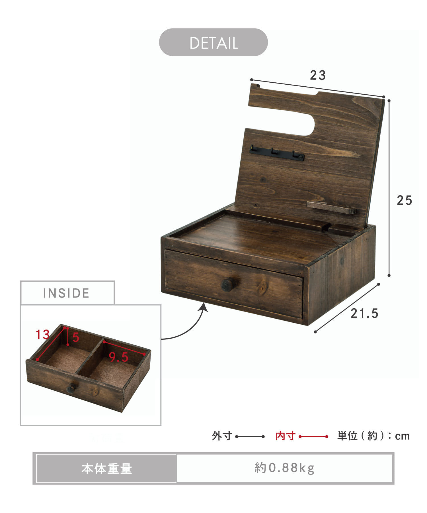 サイズ - 0 約高さ25×幅23×奥行き21.5cm <引き出し内寸>約高さ5×幅9.5×奥行き13cm
