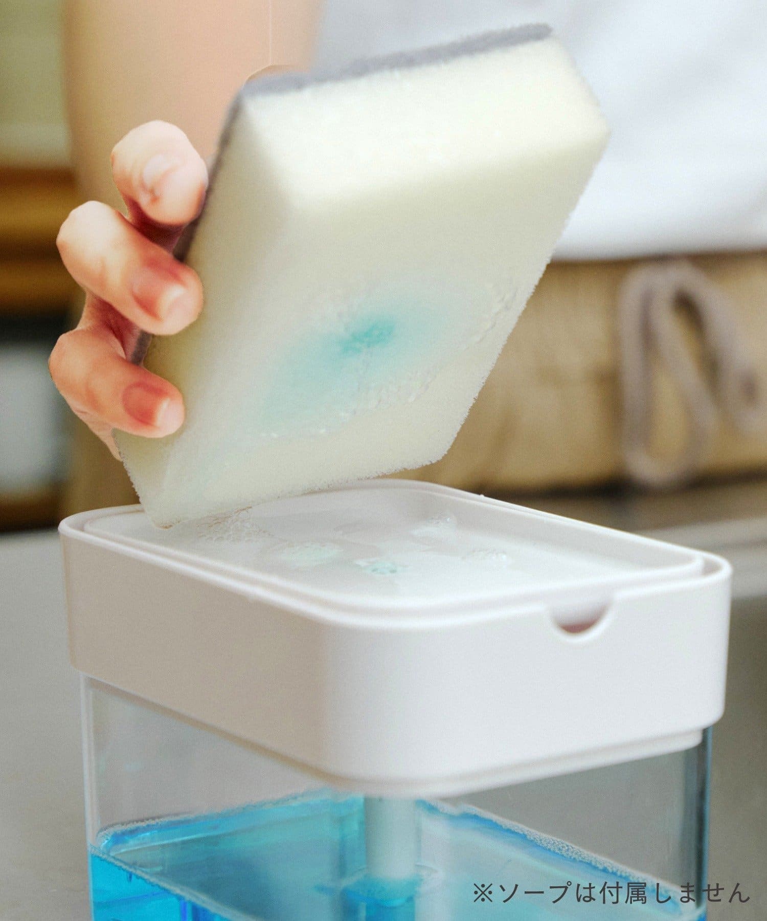 ●スポンジを軽くプッシュするだけで適量の洗剤が出るディスペンサー。