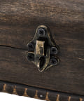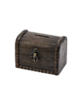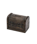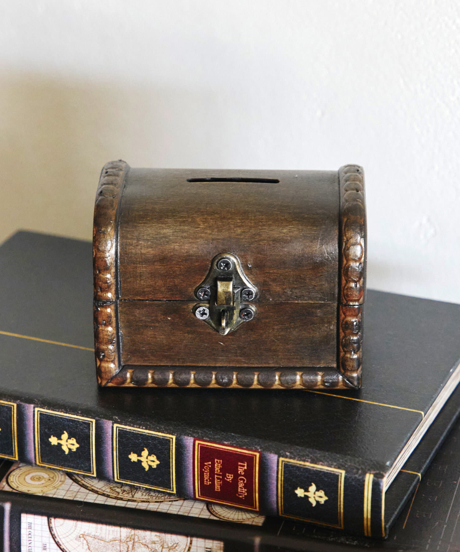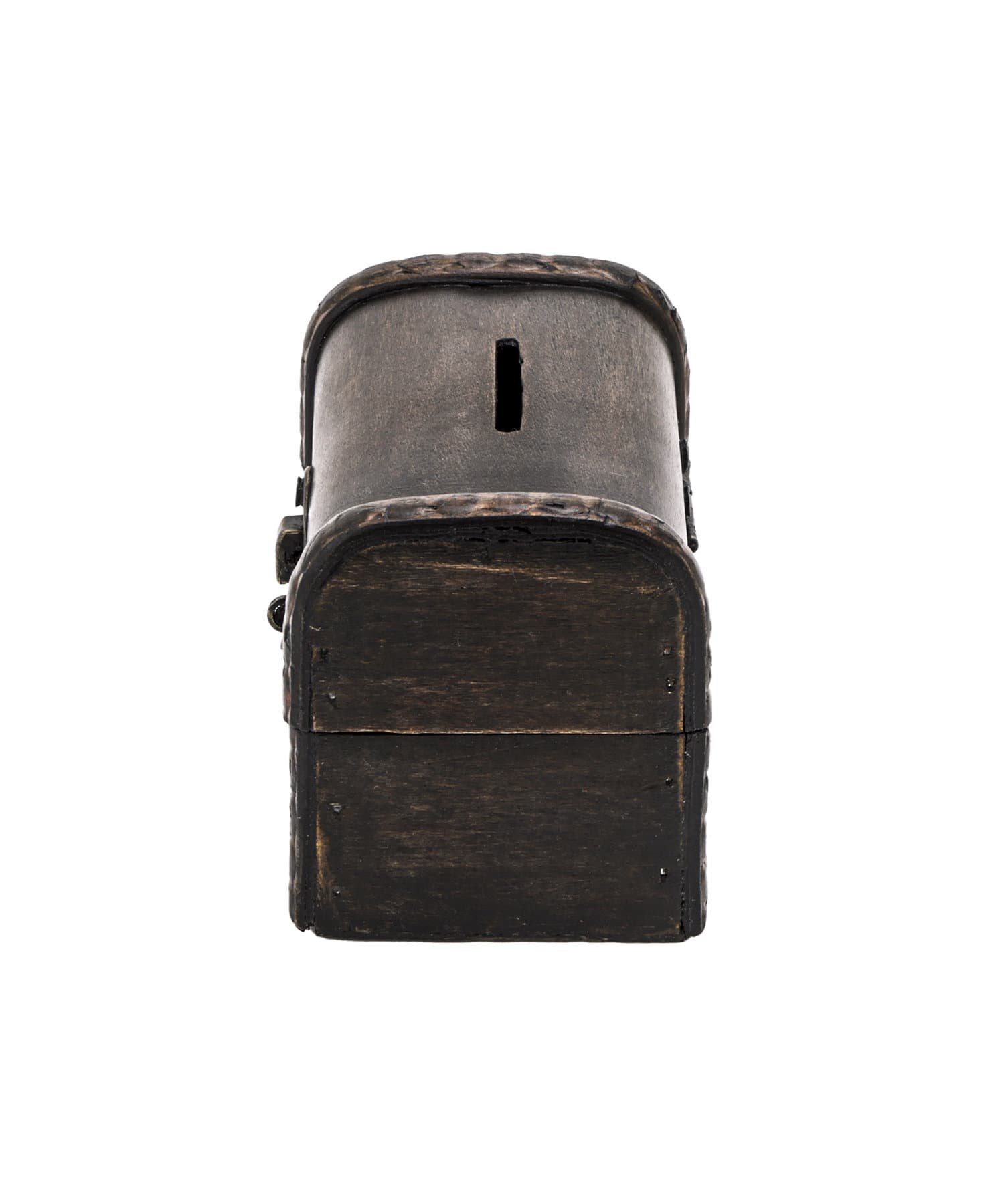 ●落ち着いた深い色味がアンティークかつインダストリアルな雰囲気あるミニトランク型の貯金箱。
