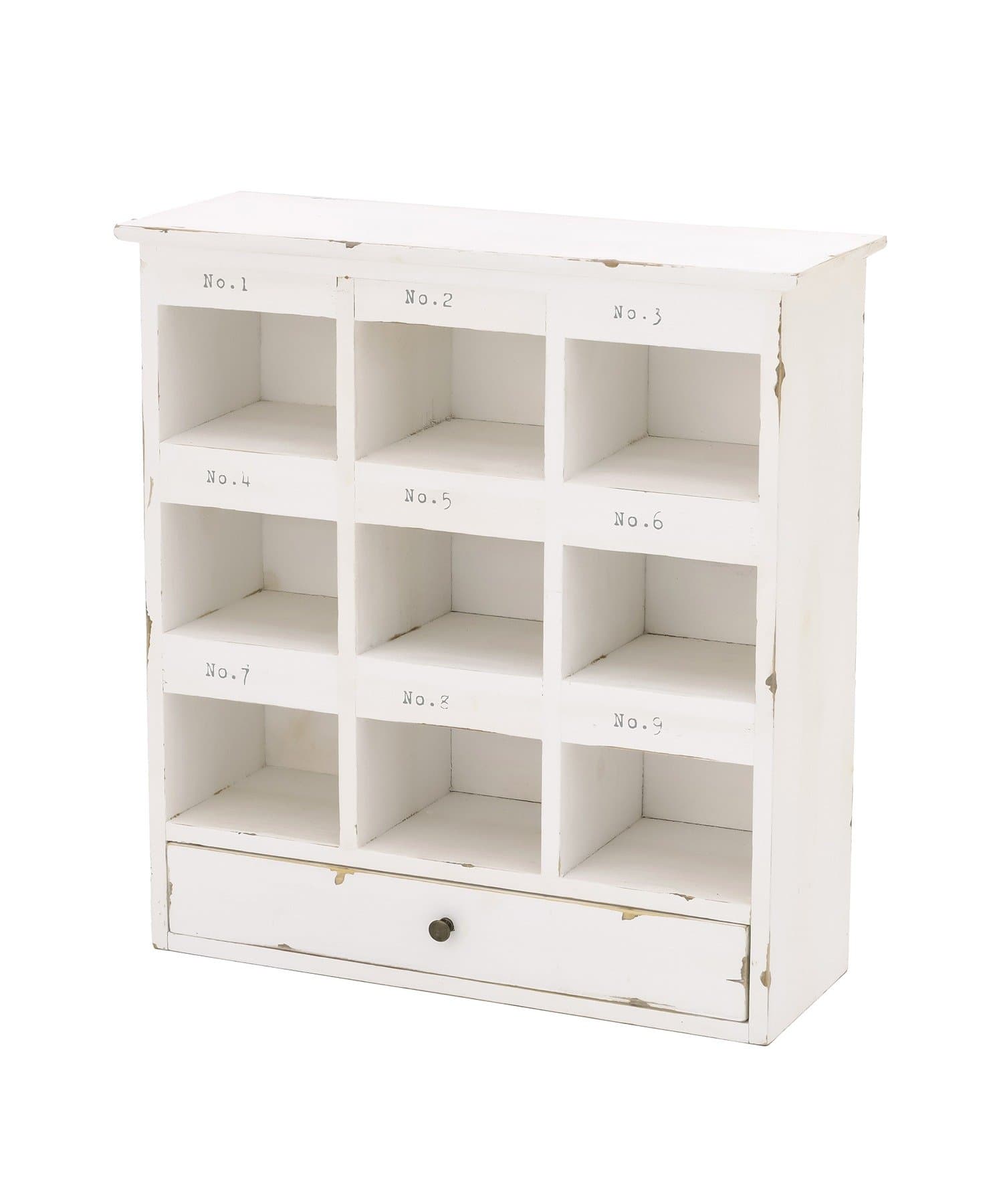 ●上部には3×3の9つの仕切り棚があり、小物やコレクションをきれいにディスプレイできます。