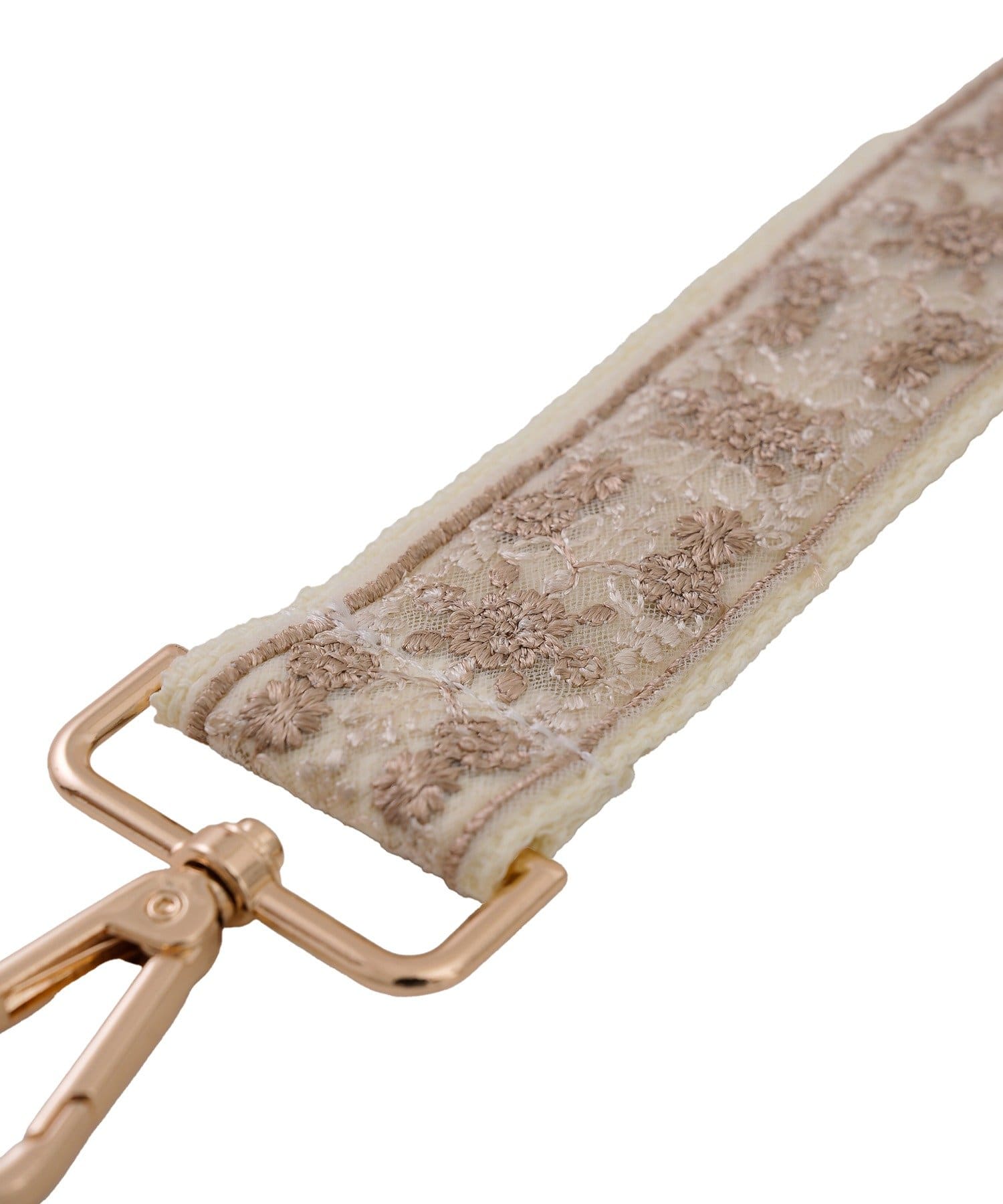 ●繊細な刺繍リボンが使用されている、可憐で上品なショルダーストラップ。