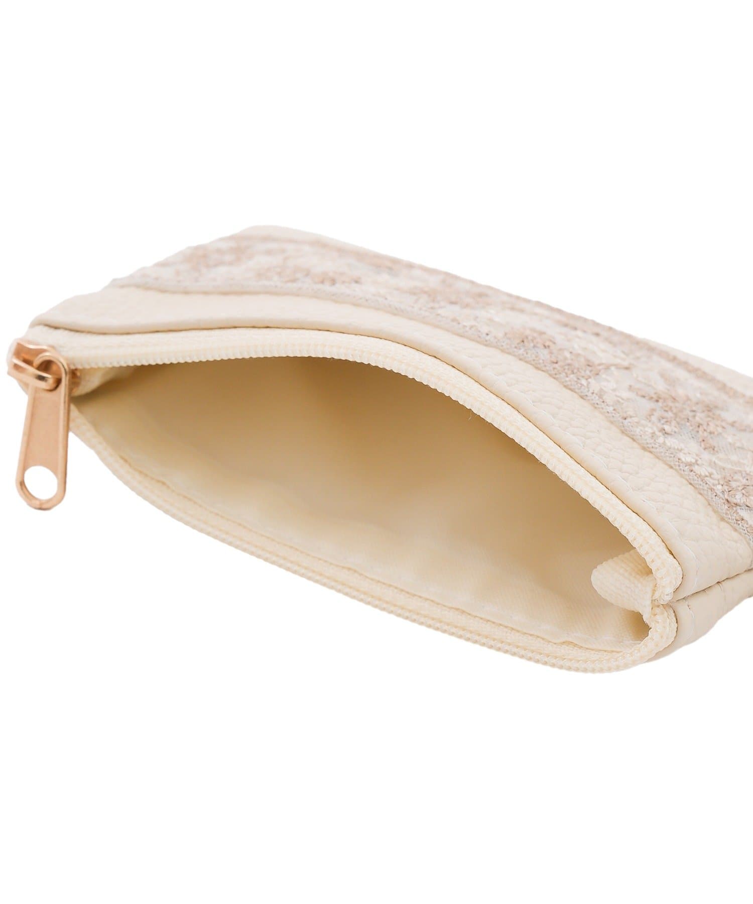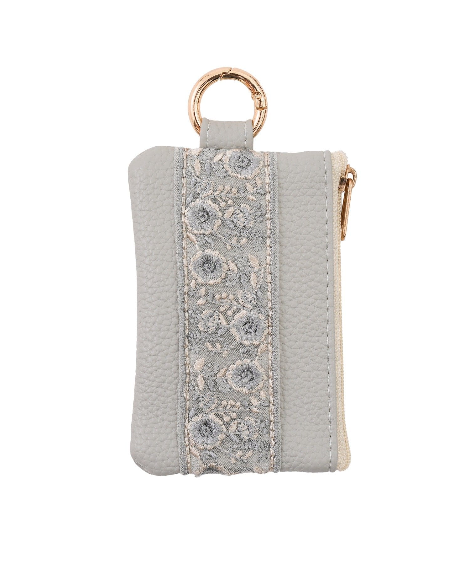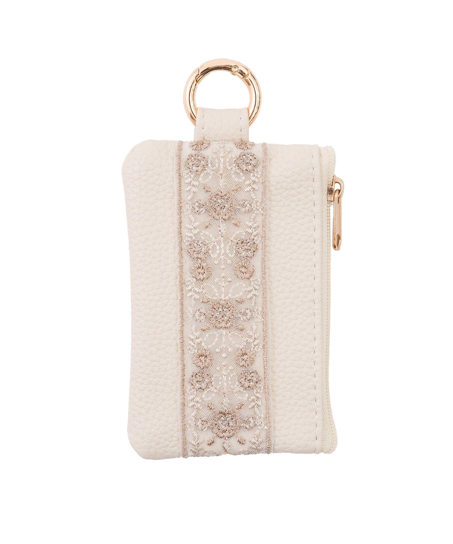 ●フロントにあしらった刺繍リボンが繊細なミニポーチ。