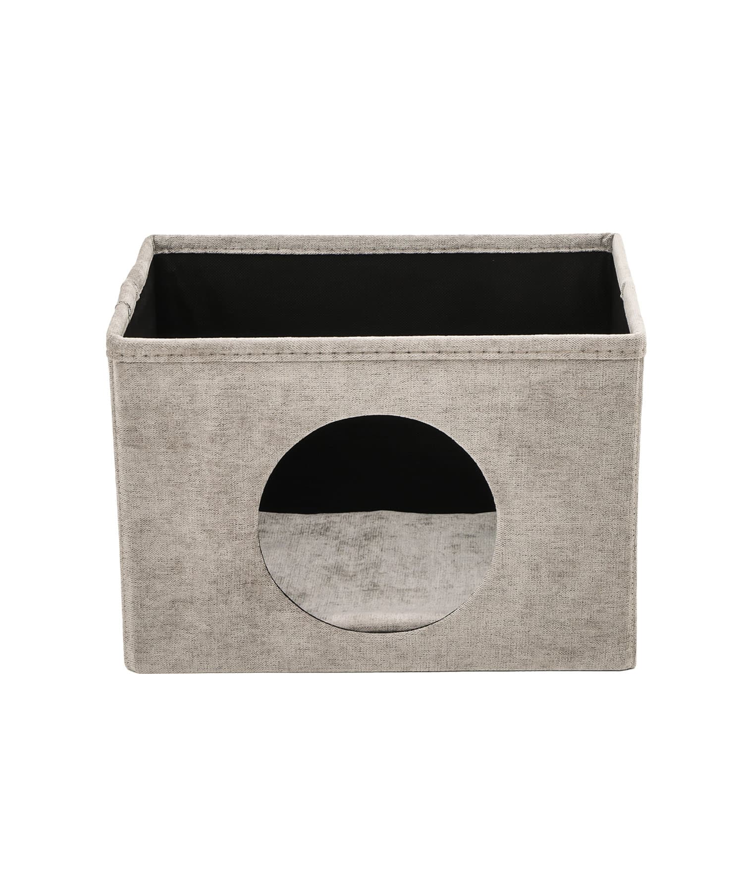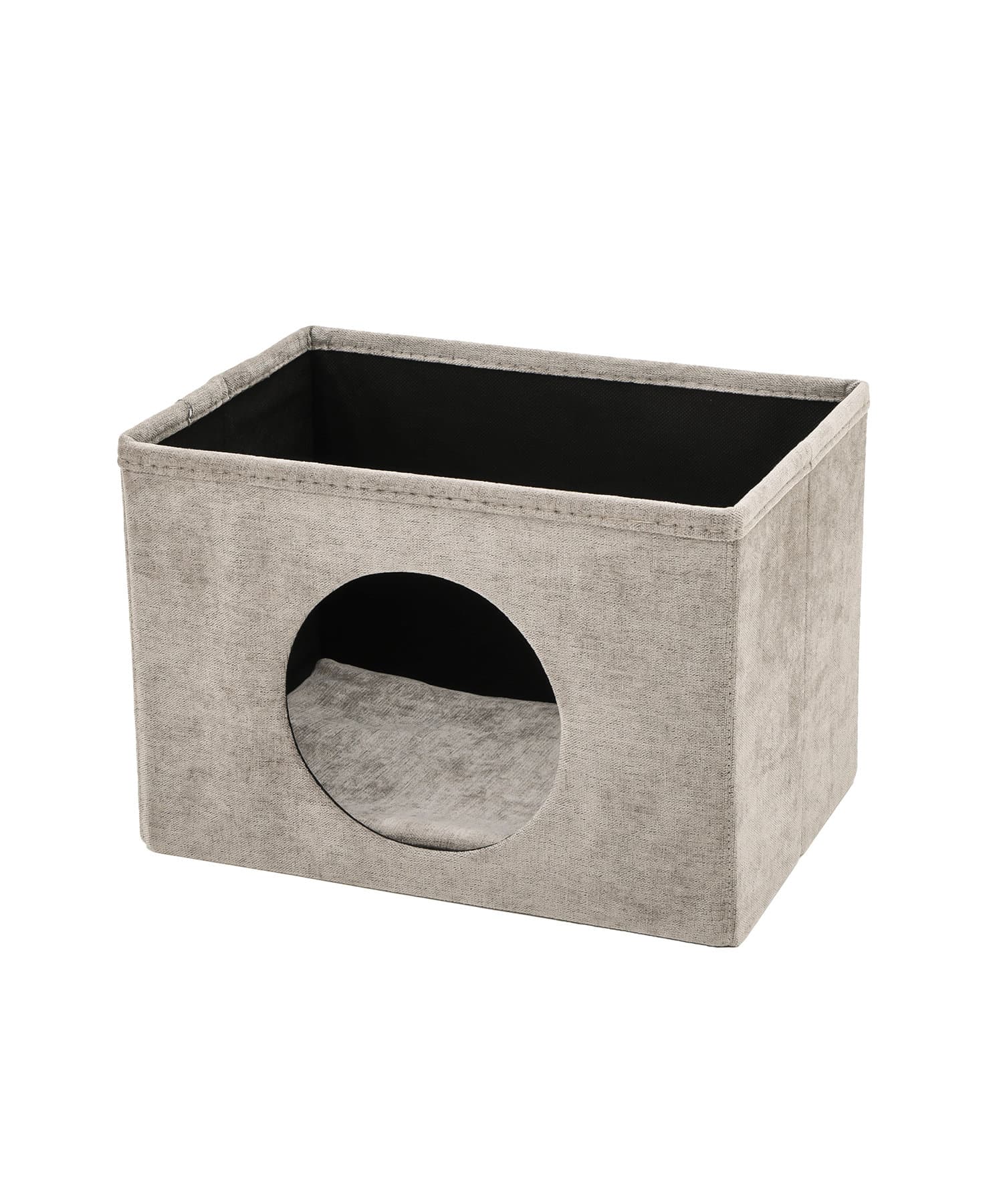 ●折りたたみができる収納ボックスにペットが入る用の丸穴が付いているハウスボックス。