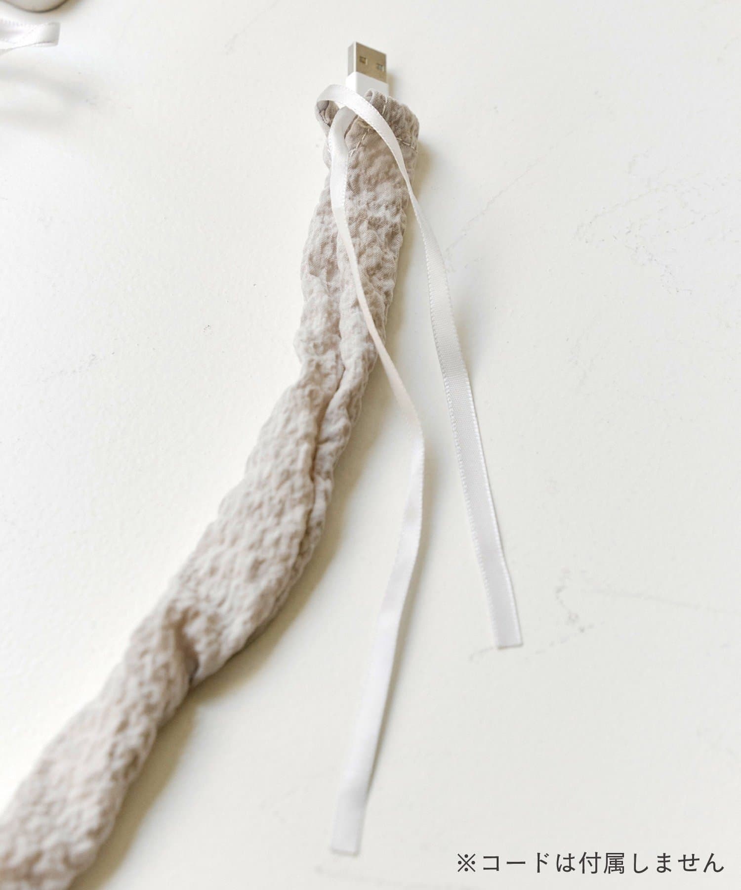 ●生活感の出やすいコードをやさしくカバーしてくれる、くしゅくしゅ素材のコードカバー。