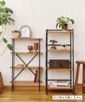 ●アイアンのフレームと木製棚板を組み合わせた、スタイリッシュなデザインのシェルフ。