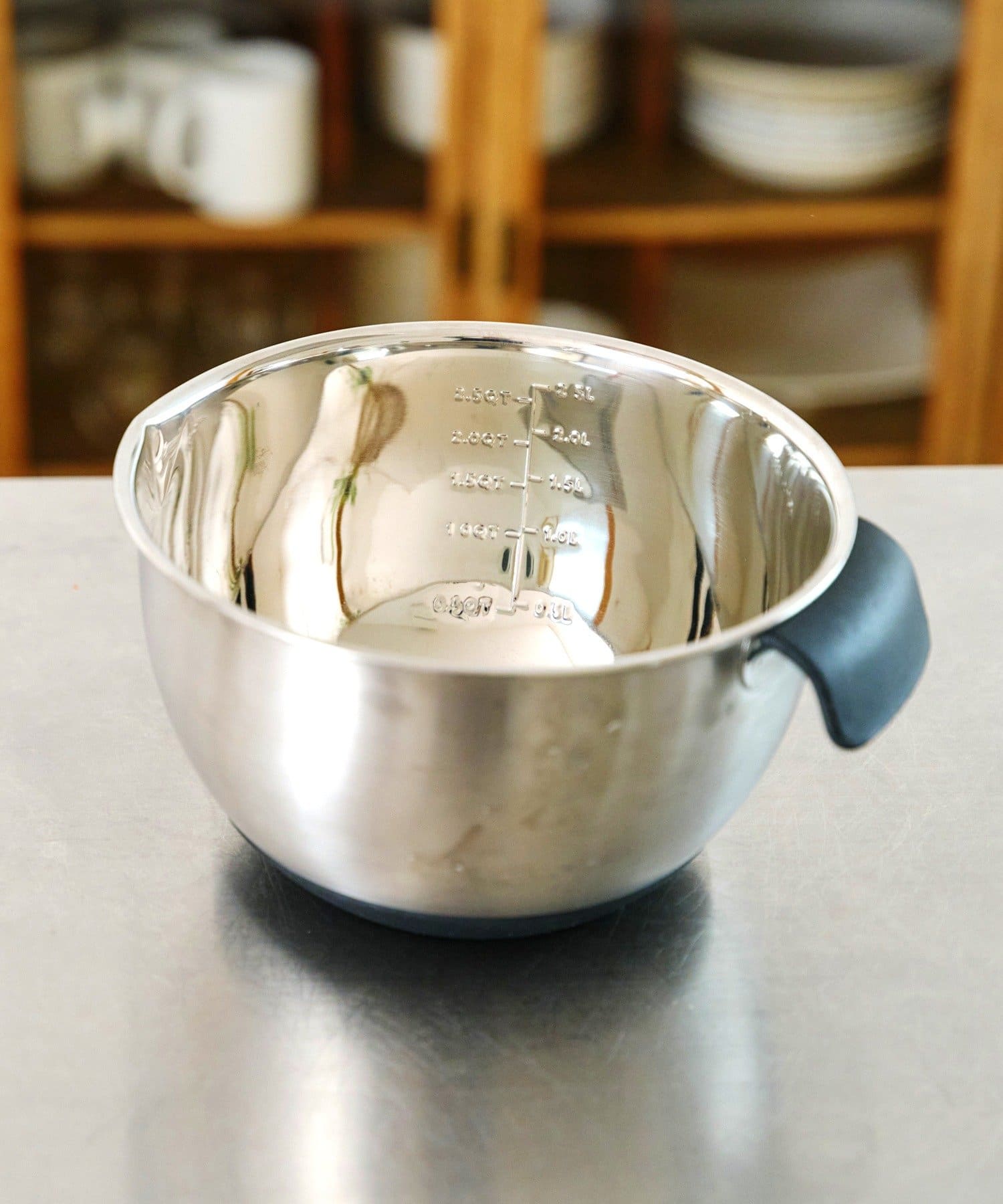 ●注ぎ口とメモリ付きで、混ぜる・量る・注ぐがこれひとつで完結!