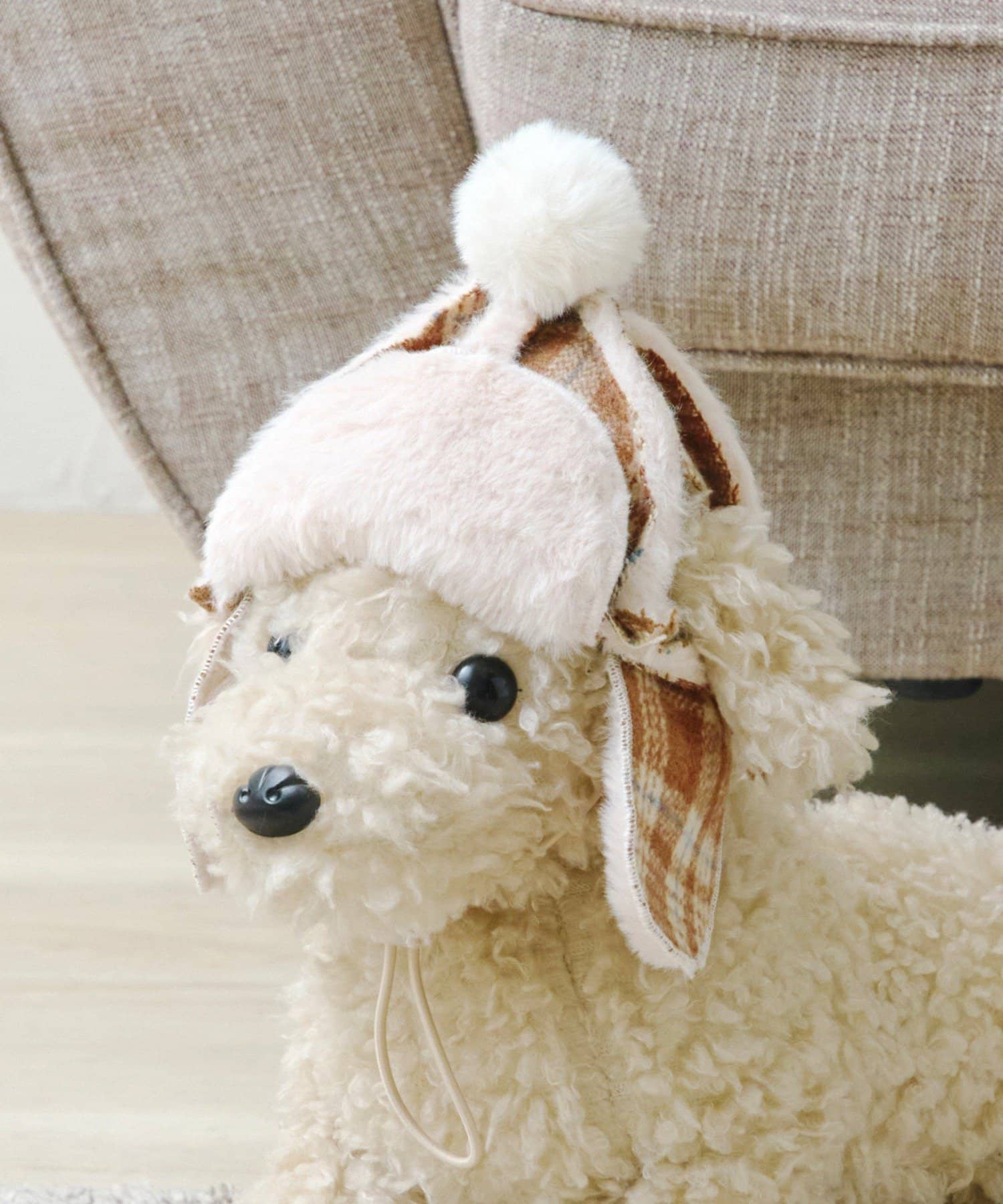 ●ポンポン付きで可愛らしいチェック柄のフライトキャップ。