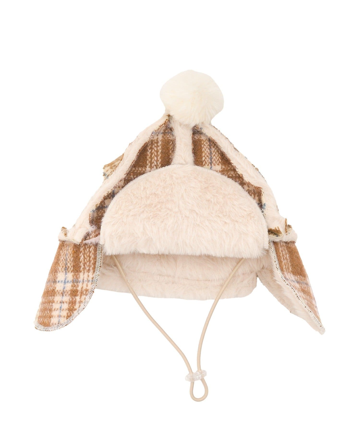 ポンポン付きチェックフライトキャップ