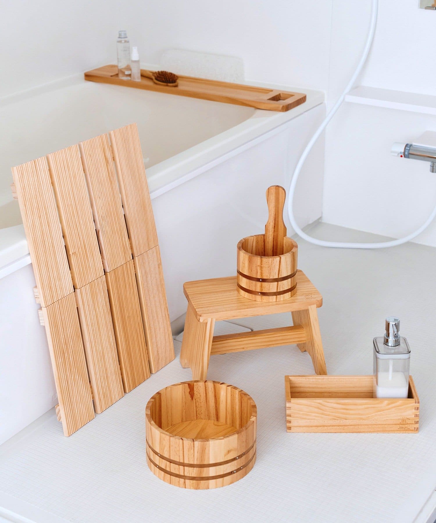 ●自宅で温泉気分が味わえる木製の風呂桶。