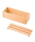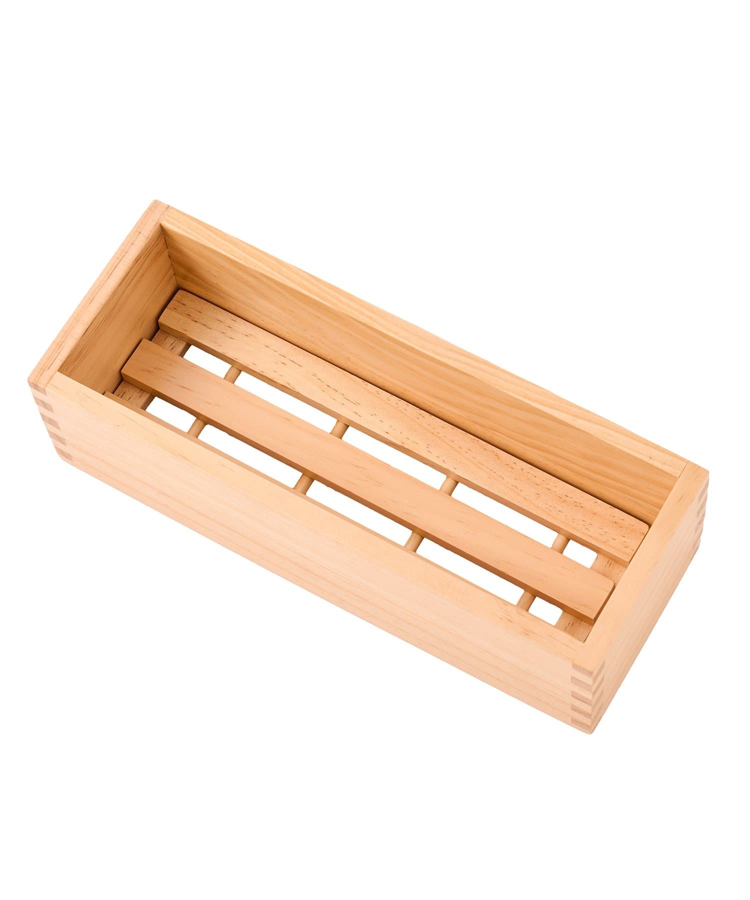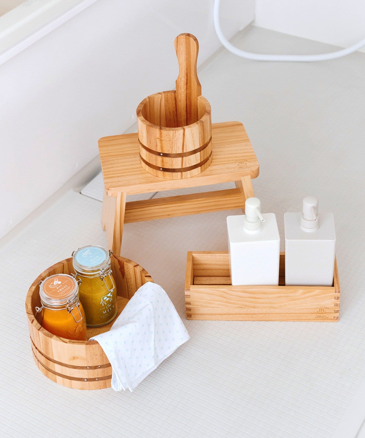 ●シャンプーやボディーソープを収納できる木製ボックス。