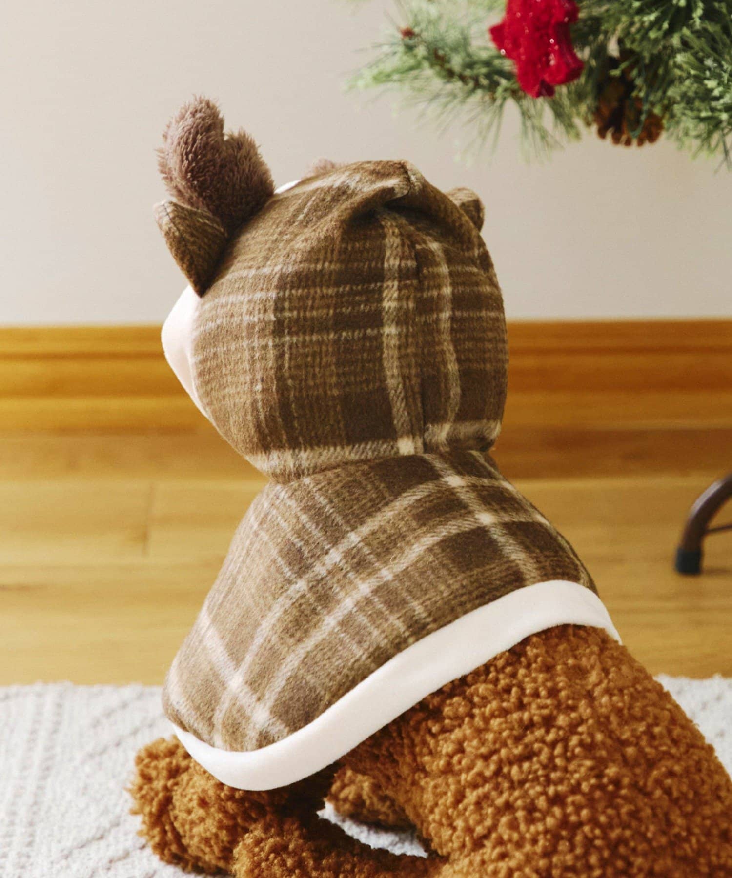 ●トナカイの角のフードがついた、小型犬用トナカイポンチョ。