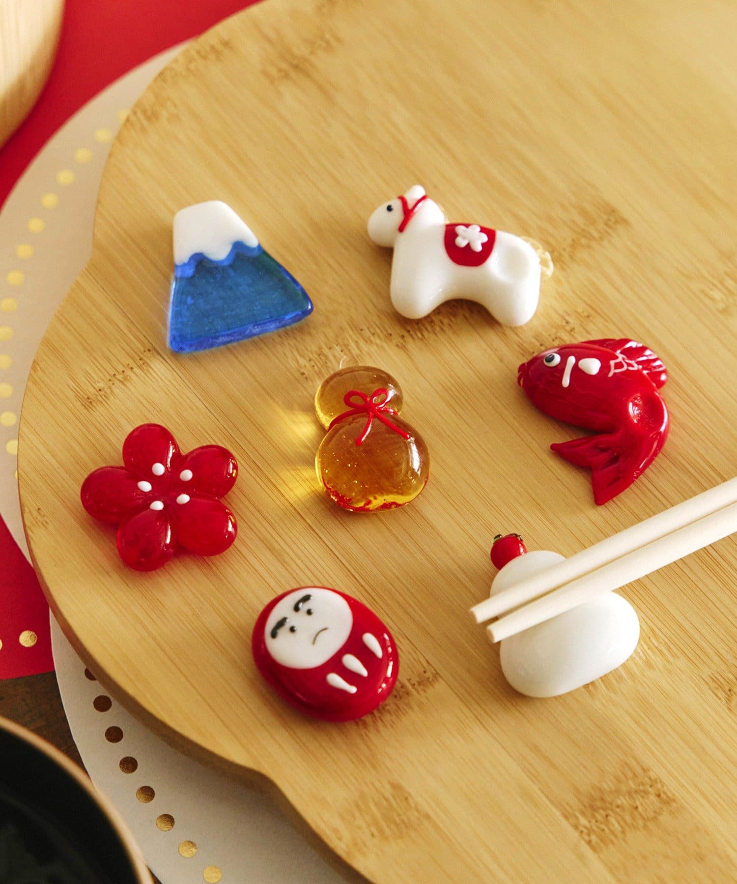 ガラスの箸置き鏡餅/花ひらく、新春のうつわ