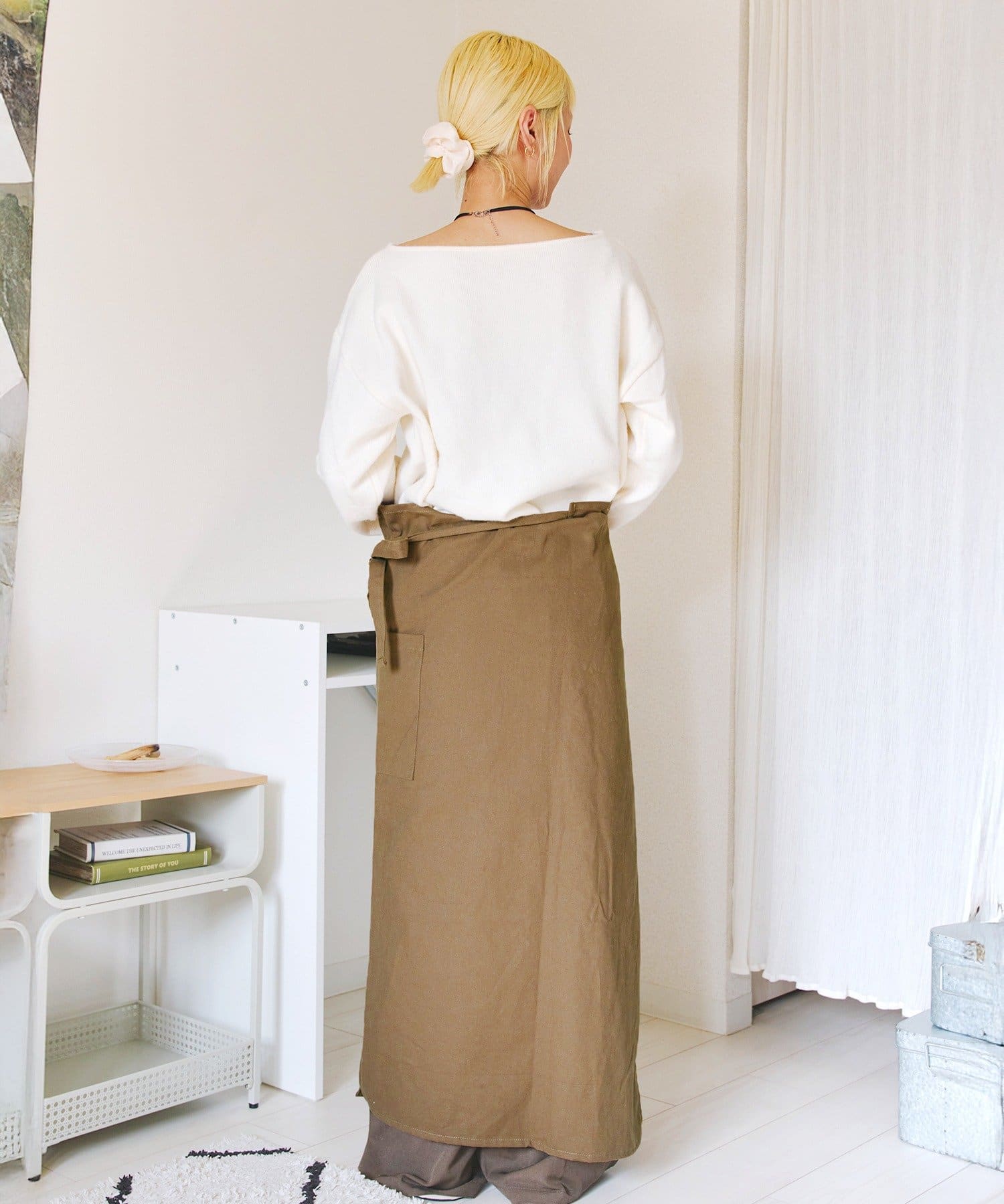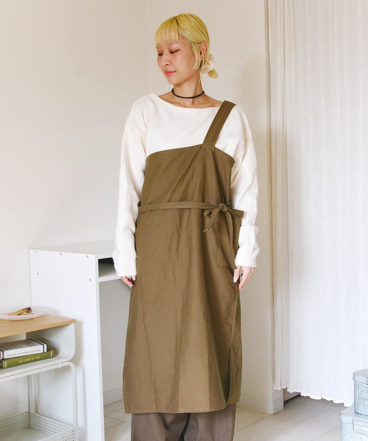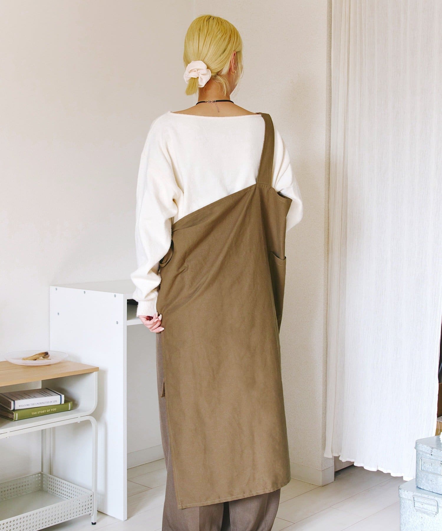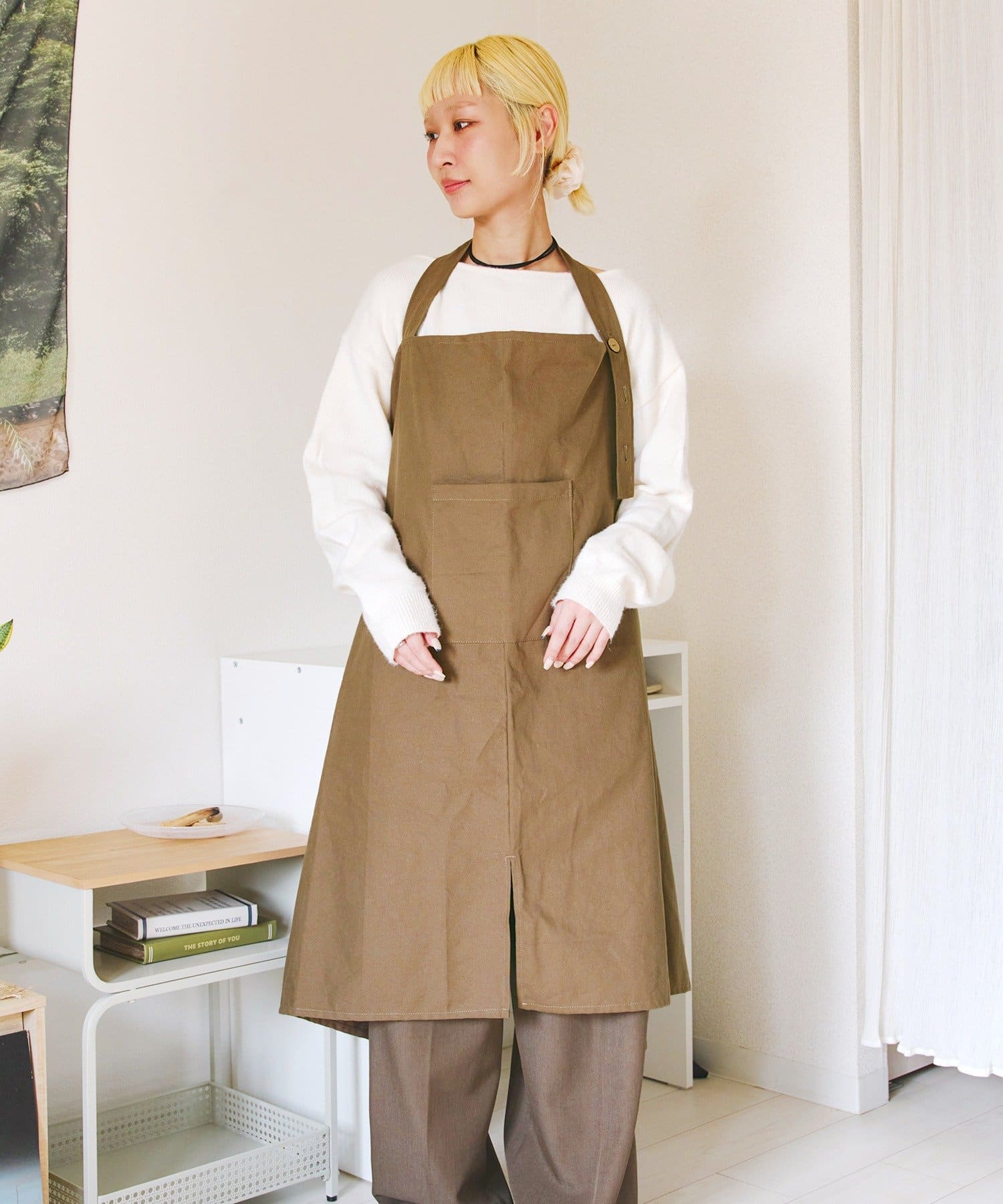 ●前後での着用アレンジの他、肩紐部分を折り込んでギャルソンエプロンとしても◎