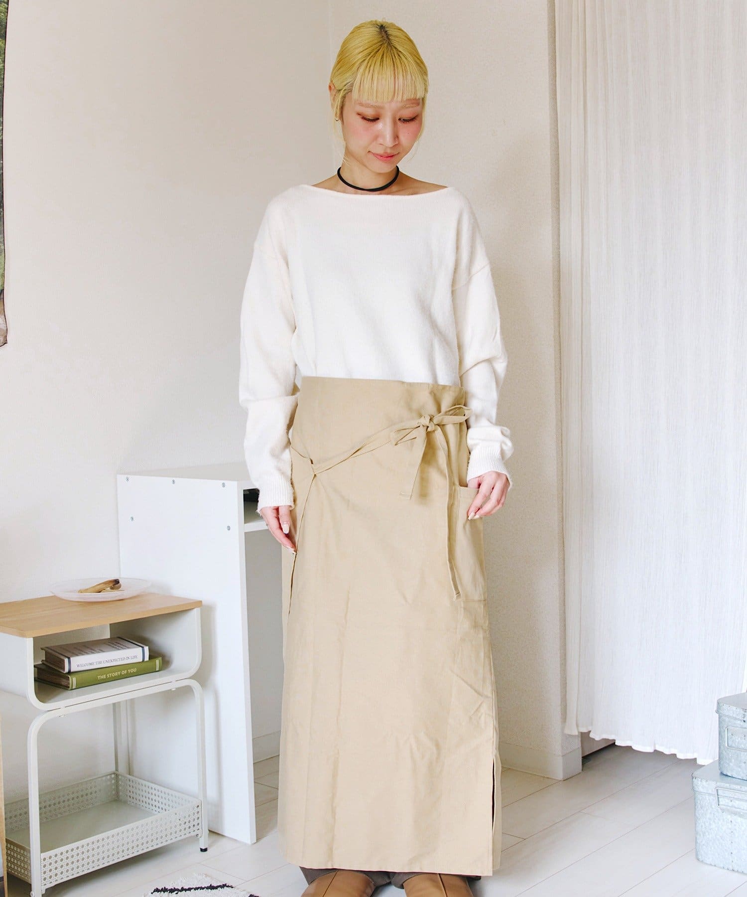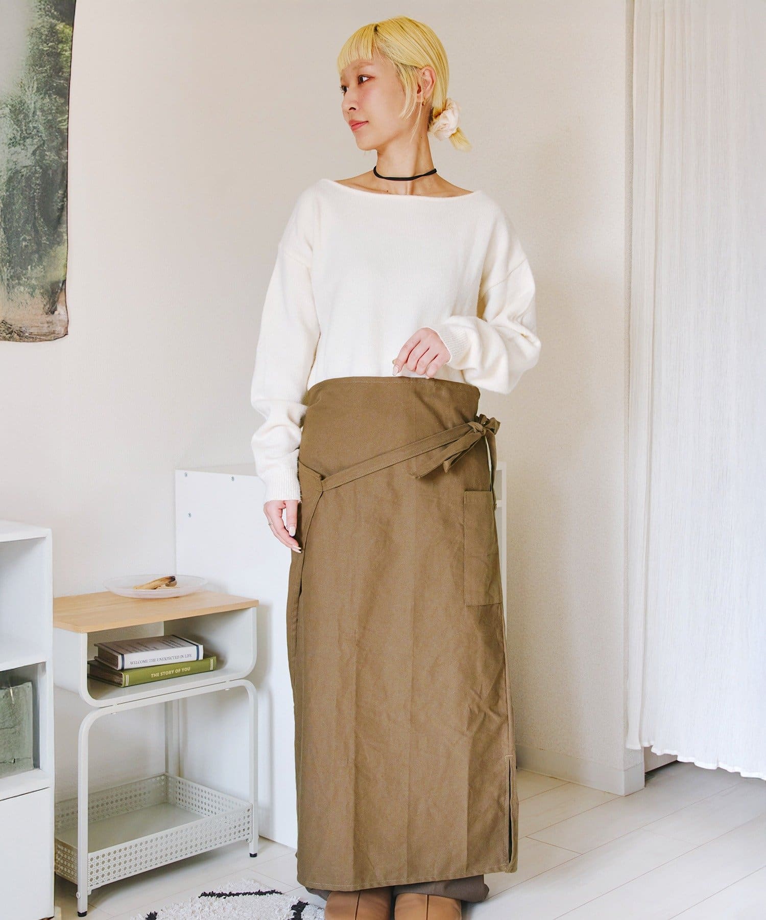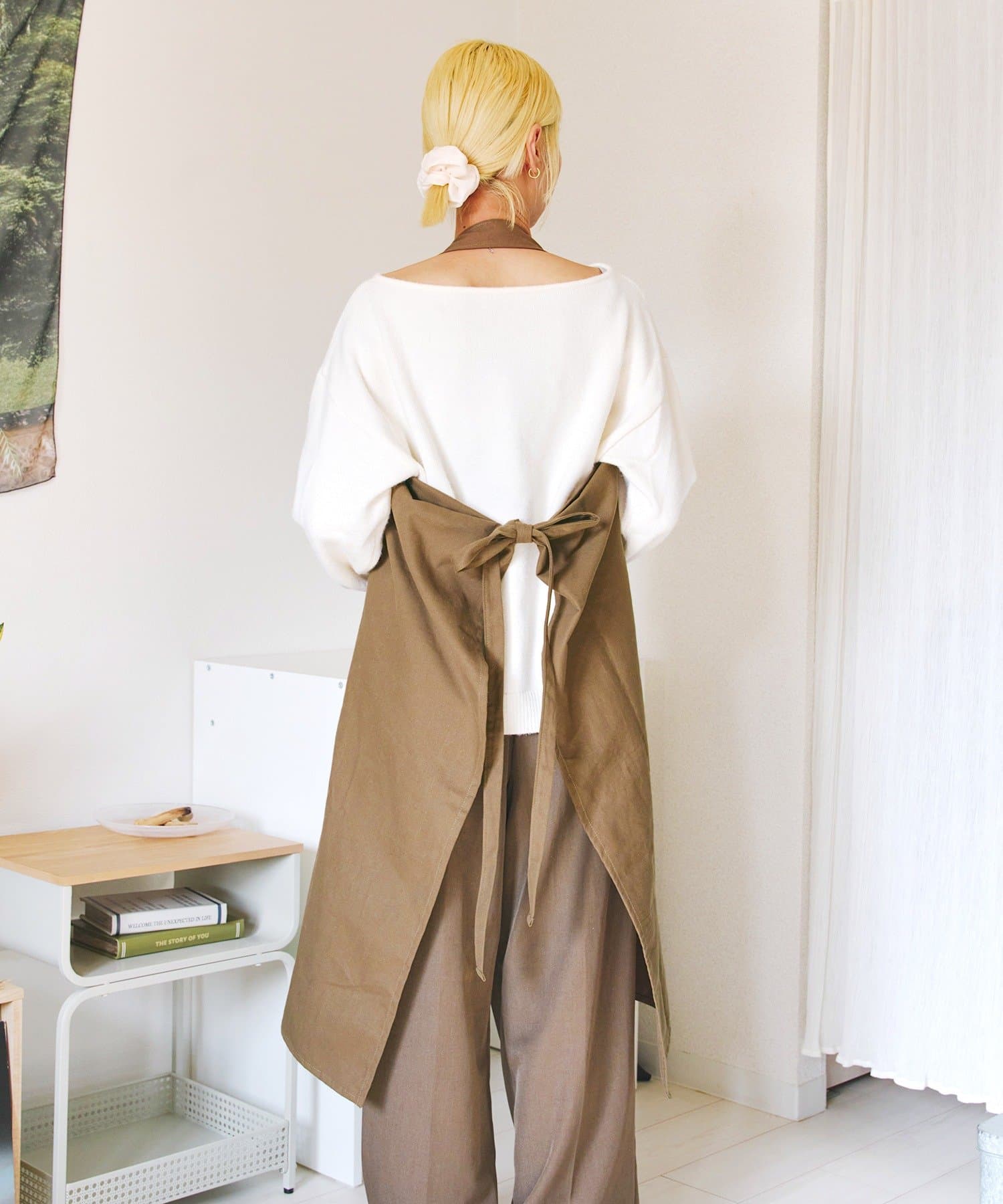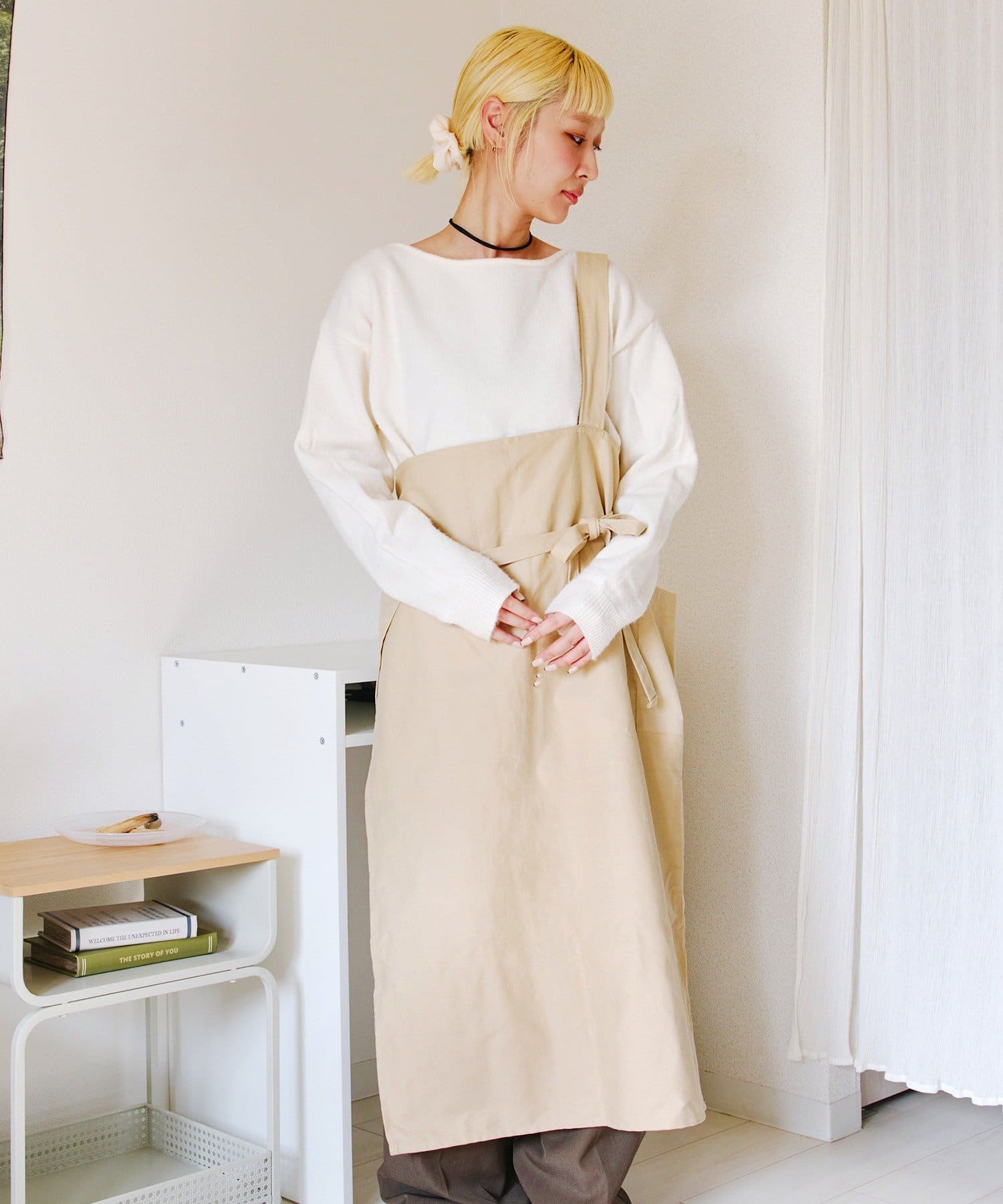 ●前後での着用アレンジの他、肩紐部分を折り込んでギャルソンエプロンとしても◎