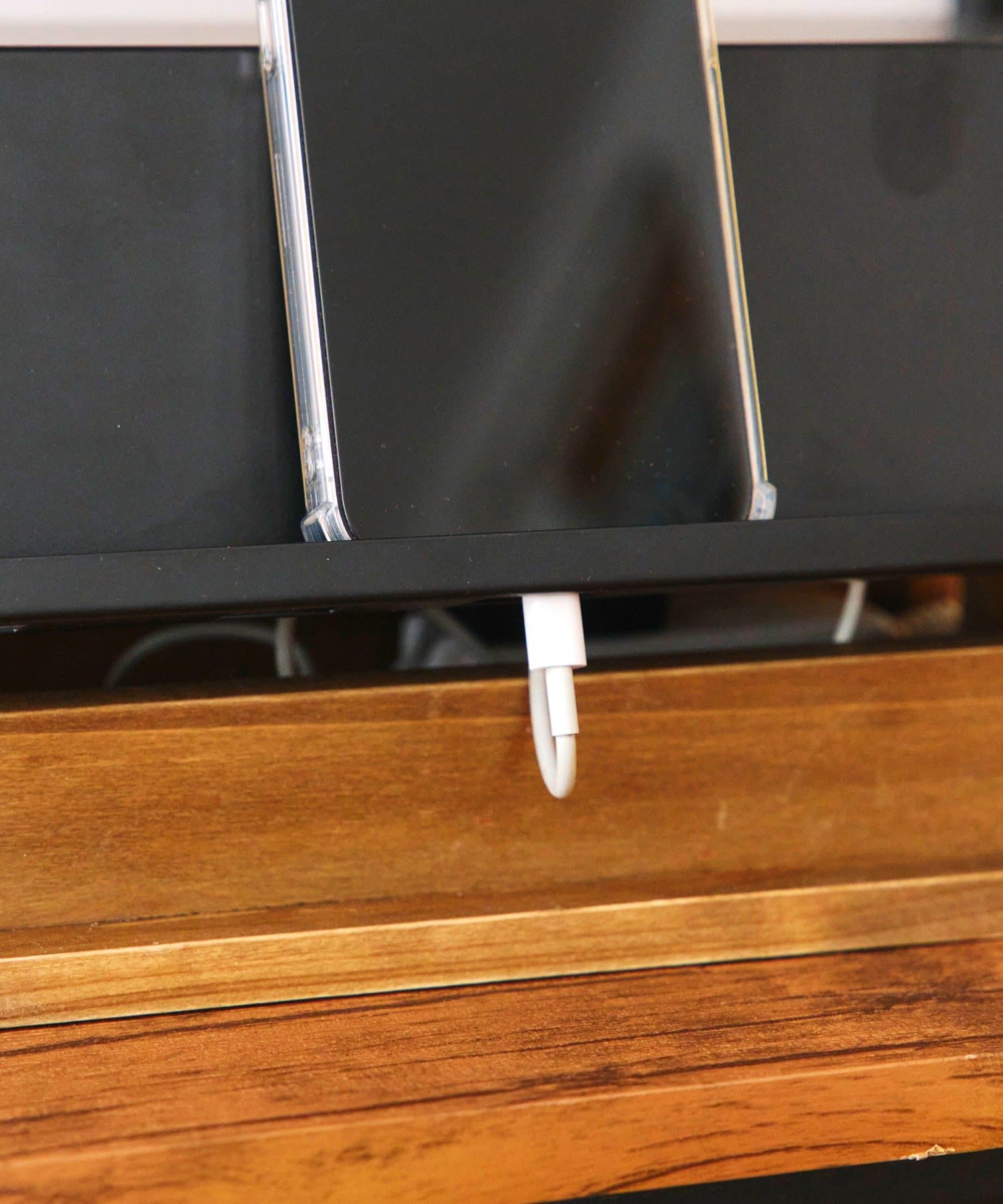 ●充電ケーブルに余計な負荷がかからないよう絶妙な高さ設計にこだわっており、スマートフォンやタブレットをスマートに立て掛けられます。