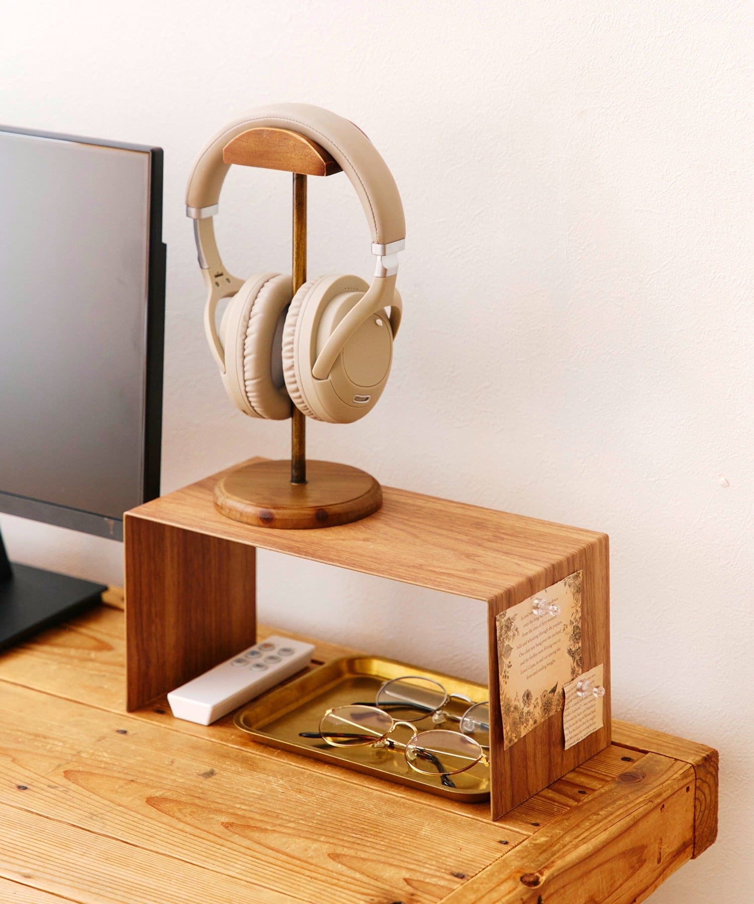 ●天然木のぬくもりが感じられる、木製のヘッドホンスタンド。