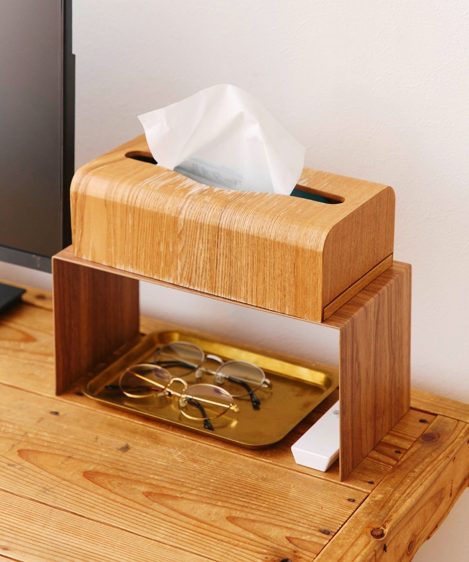 ●ナチュラルな木目調のデザインを施した、インテリアに馴染みやすいコの字型ラック。