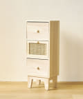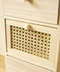 ●明るいカラーのウッドとラタンの引き出し面がナチュラルキレイめデザイン。