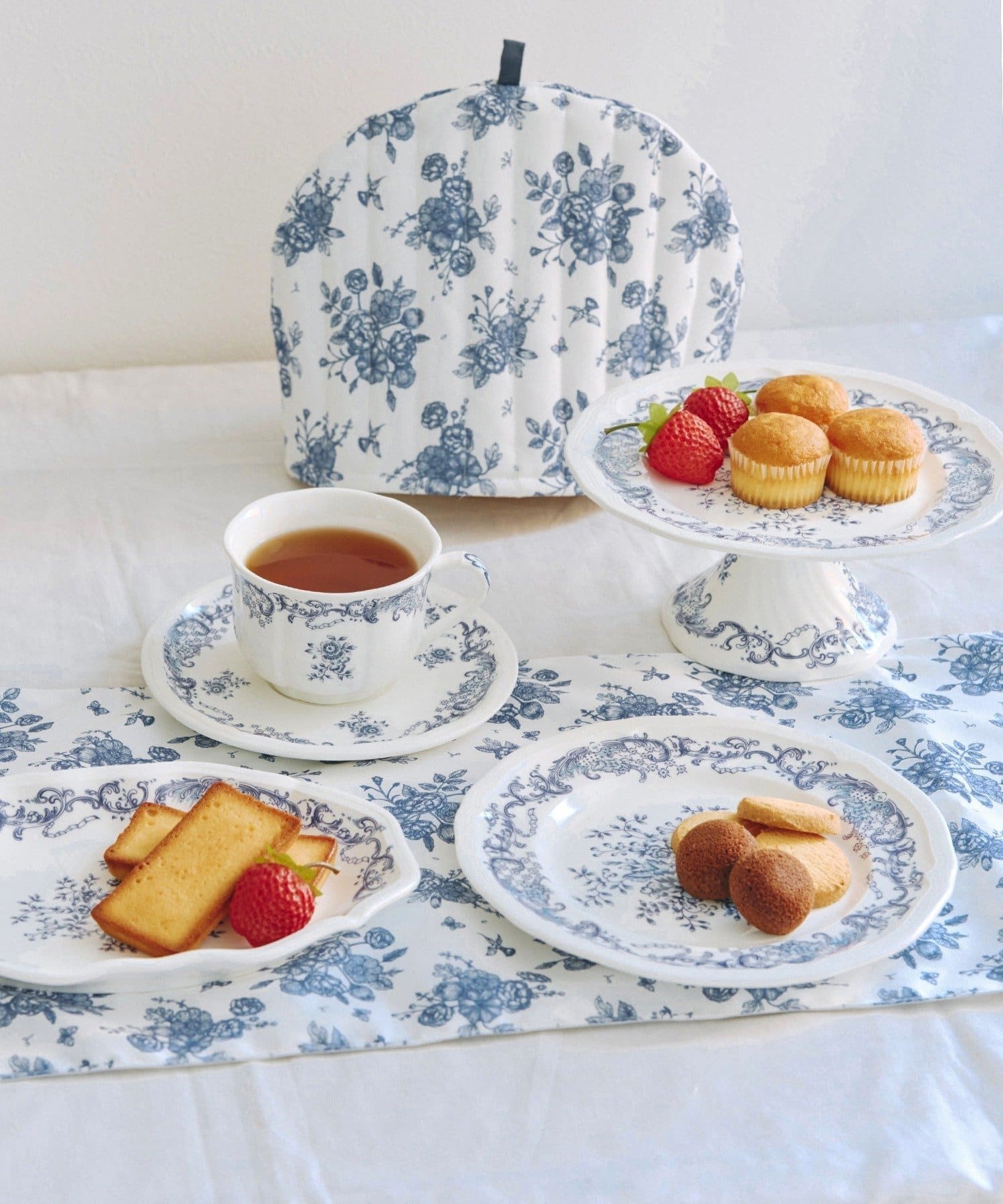 ●爽やかなブルーの花柄が、ティータイムを彩るプレート。