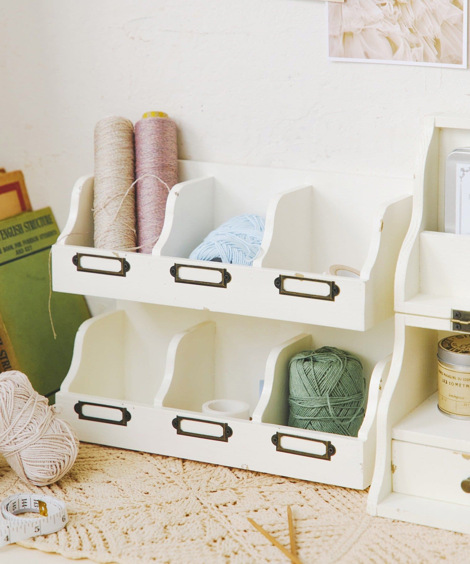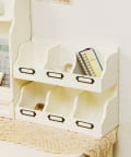 ●文房具やデスク周りの小物を、6つの仕切りですっきり整理できます。