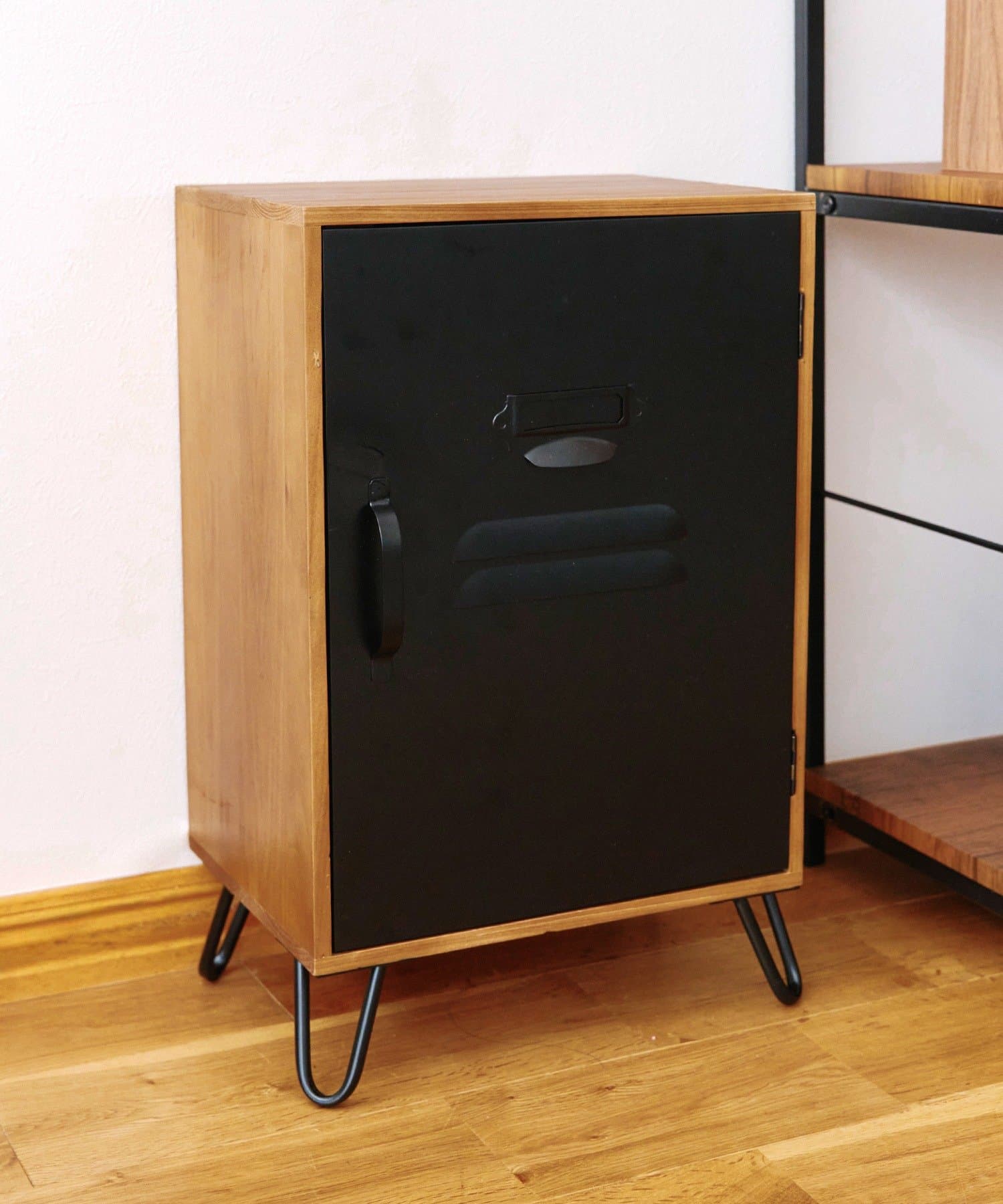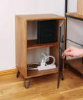 ●クールなアイアンと木製素材を組み合わせた、ヴィンテージ感あるデザインの目隠しキャビネット。