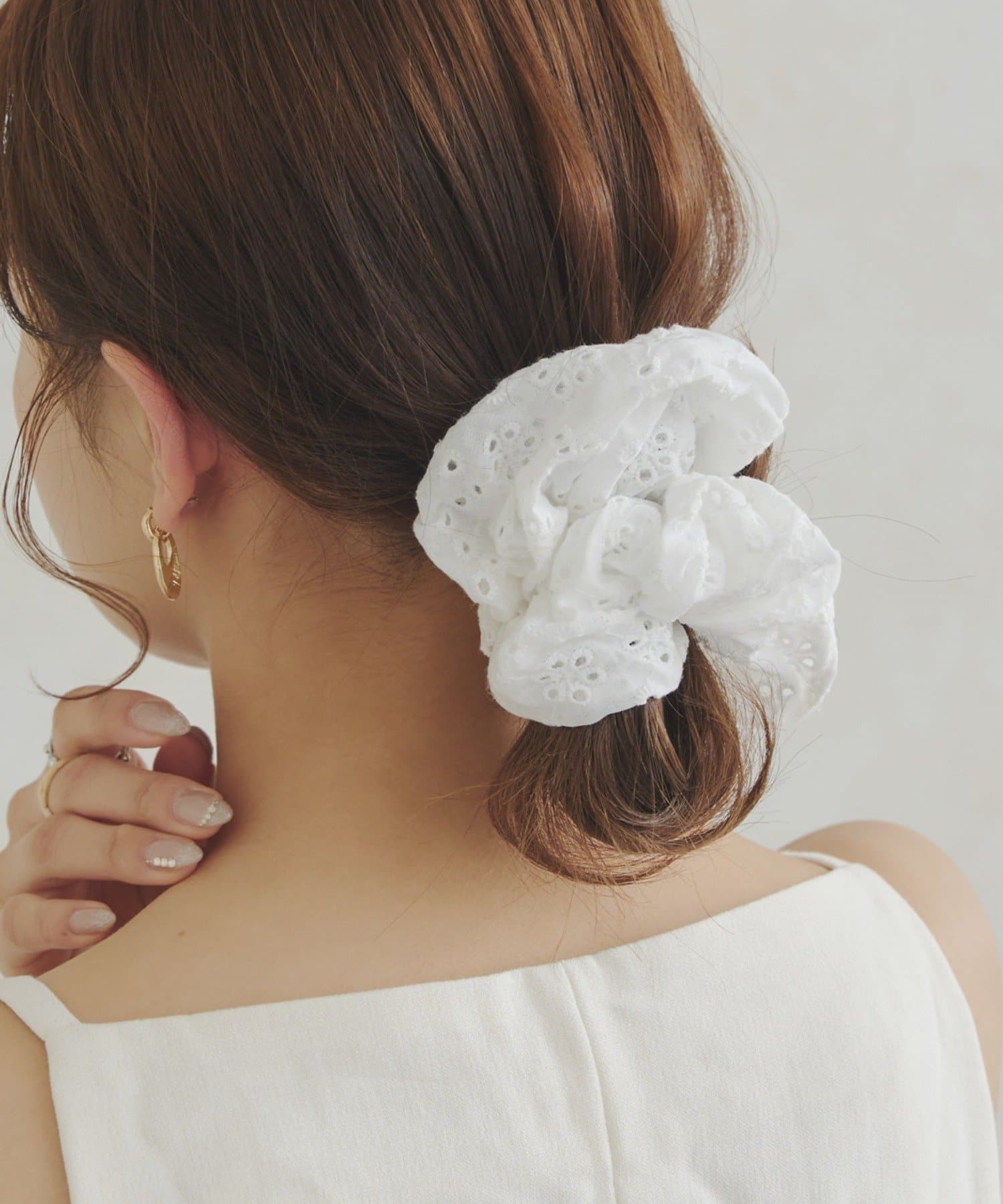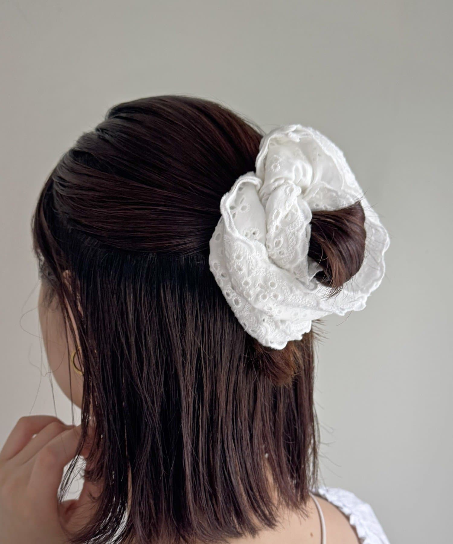 つけるだけで後ろ姿まで可愛くなれるコットン風レースシュシュ