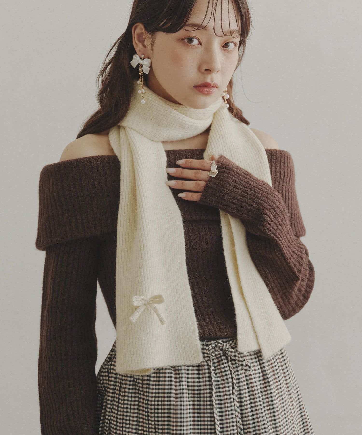 TOP > Lattice > レディース > ファッション雑貨 > マフラー/ティペット > サイドリボンショートマフラー