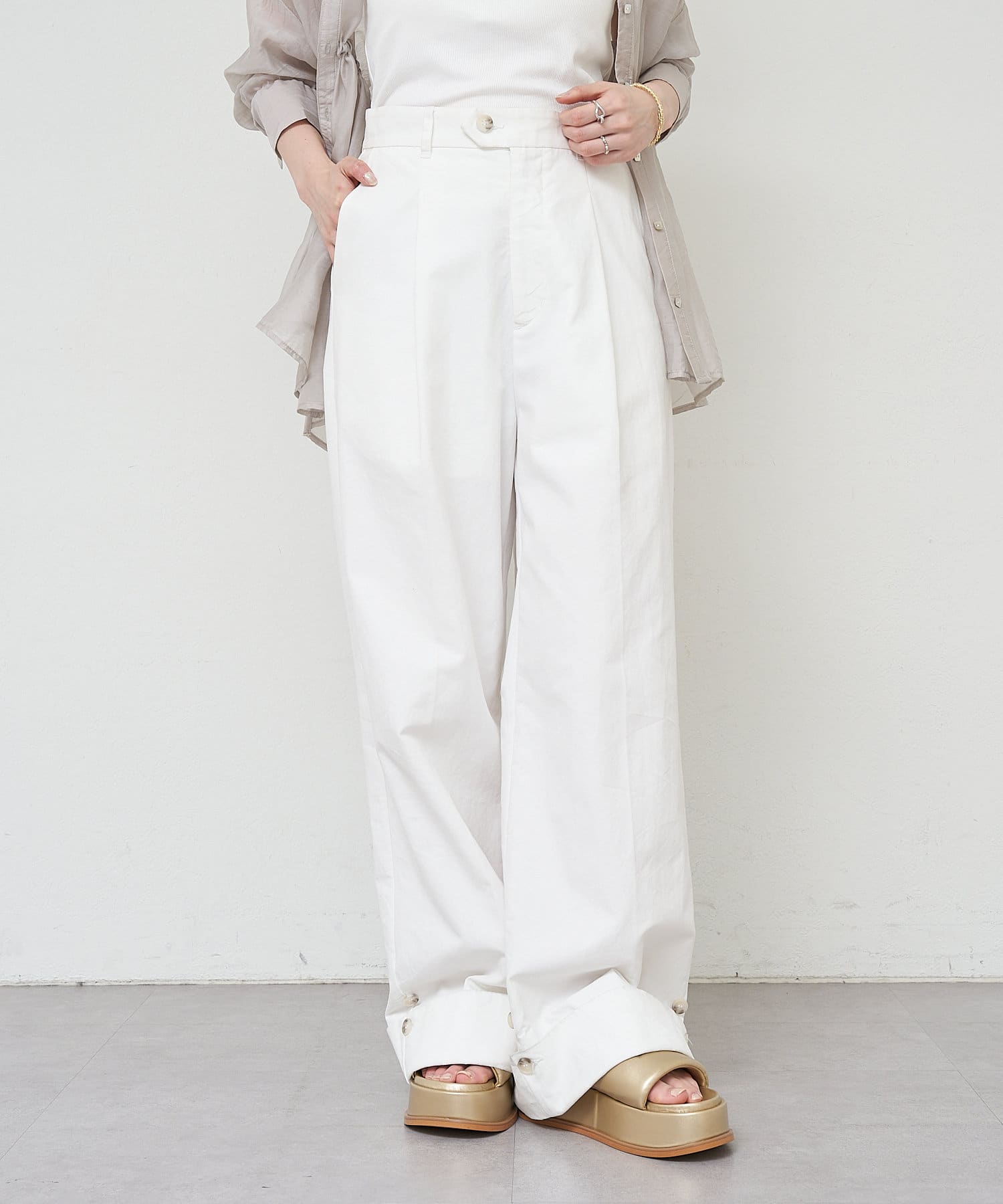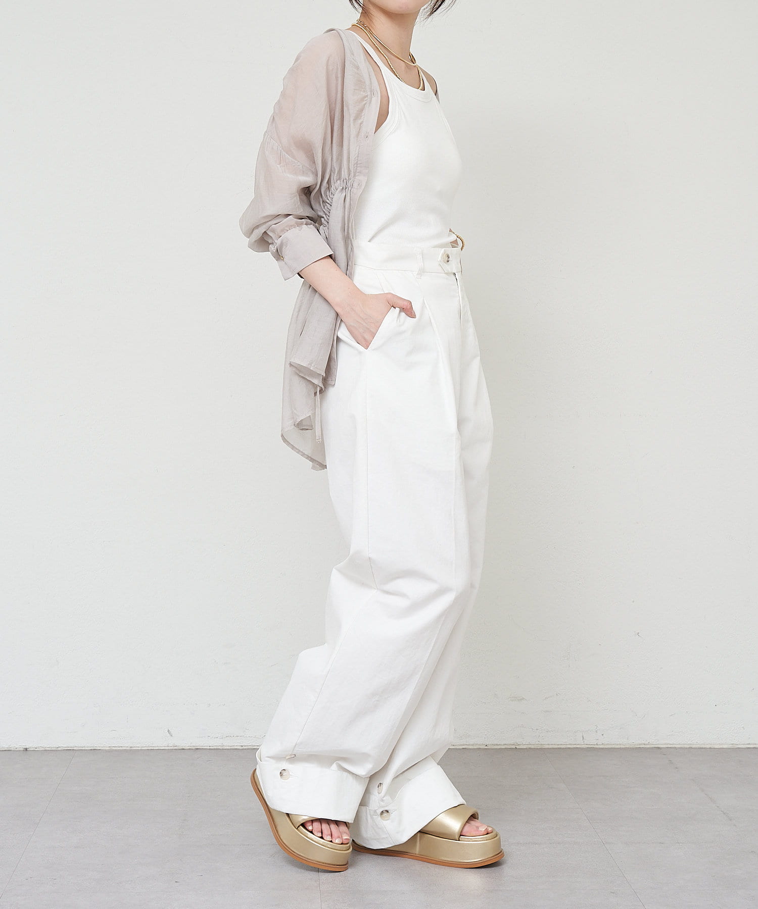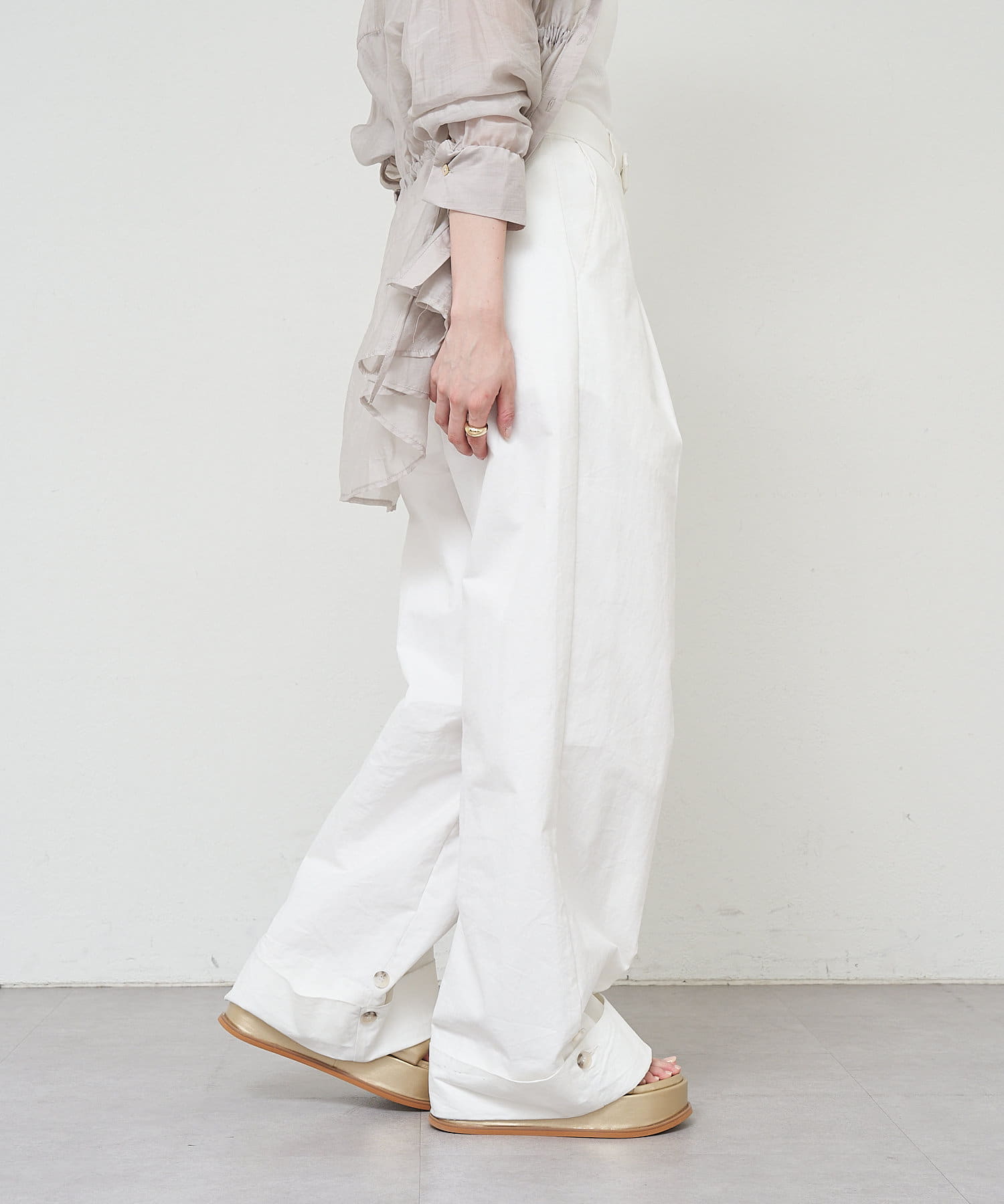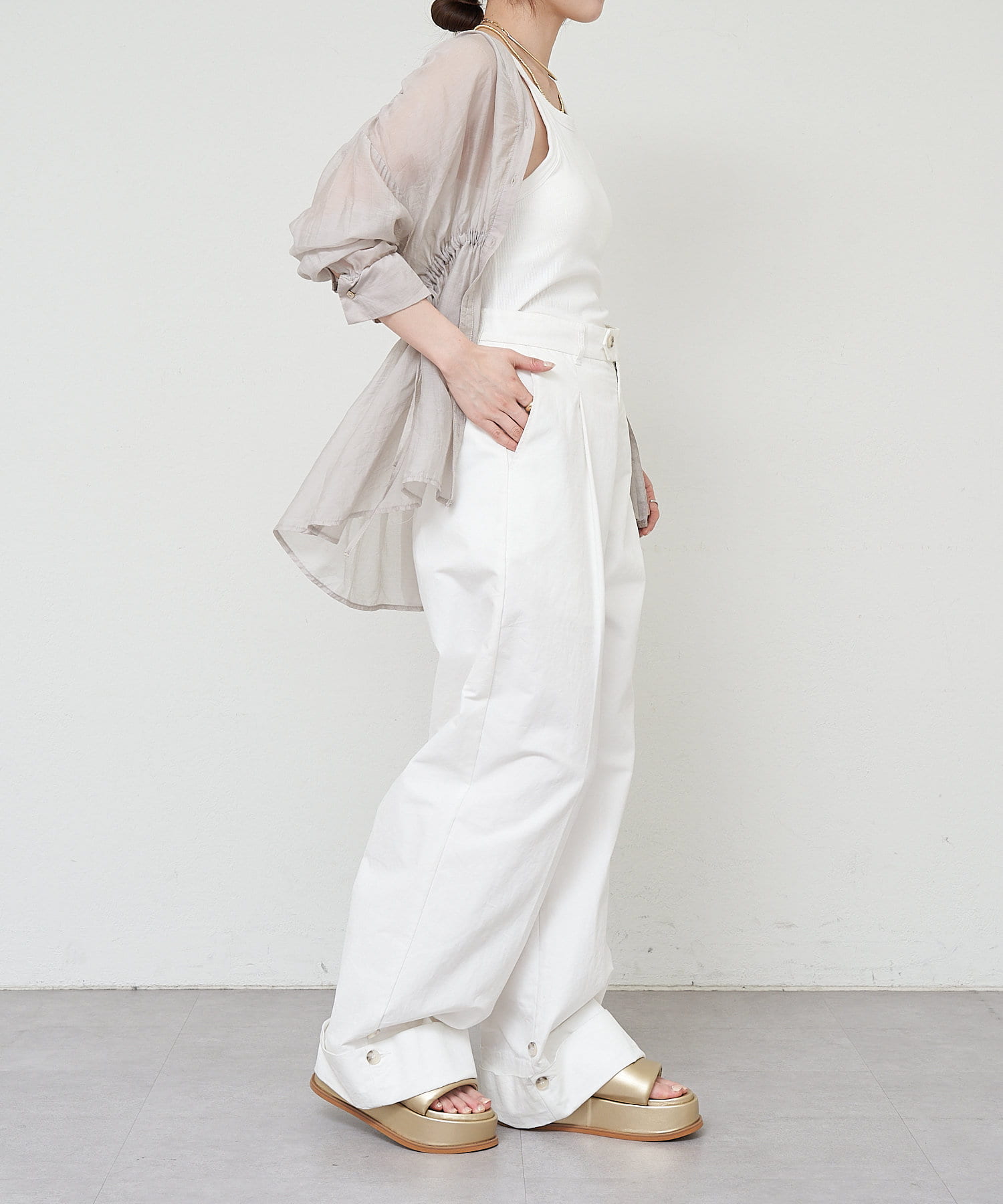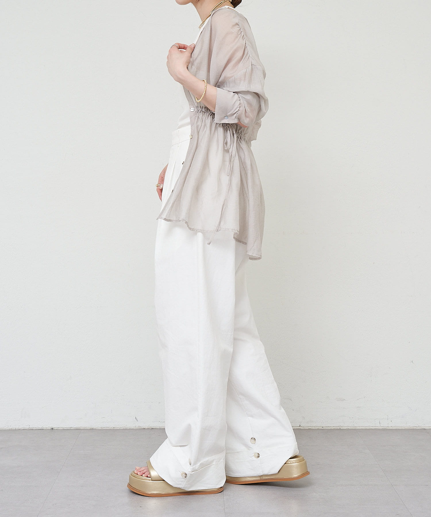 裾の両サイドに3段階のボタンが付いているので、お好みの長さで調整が可能です。