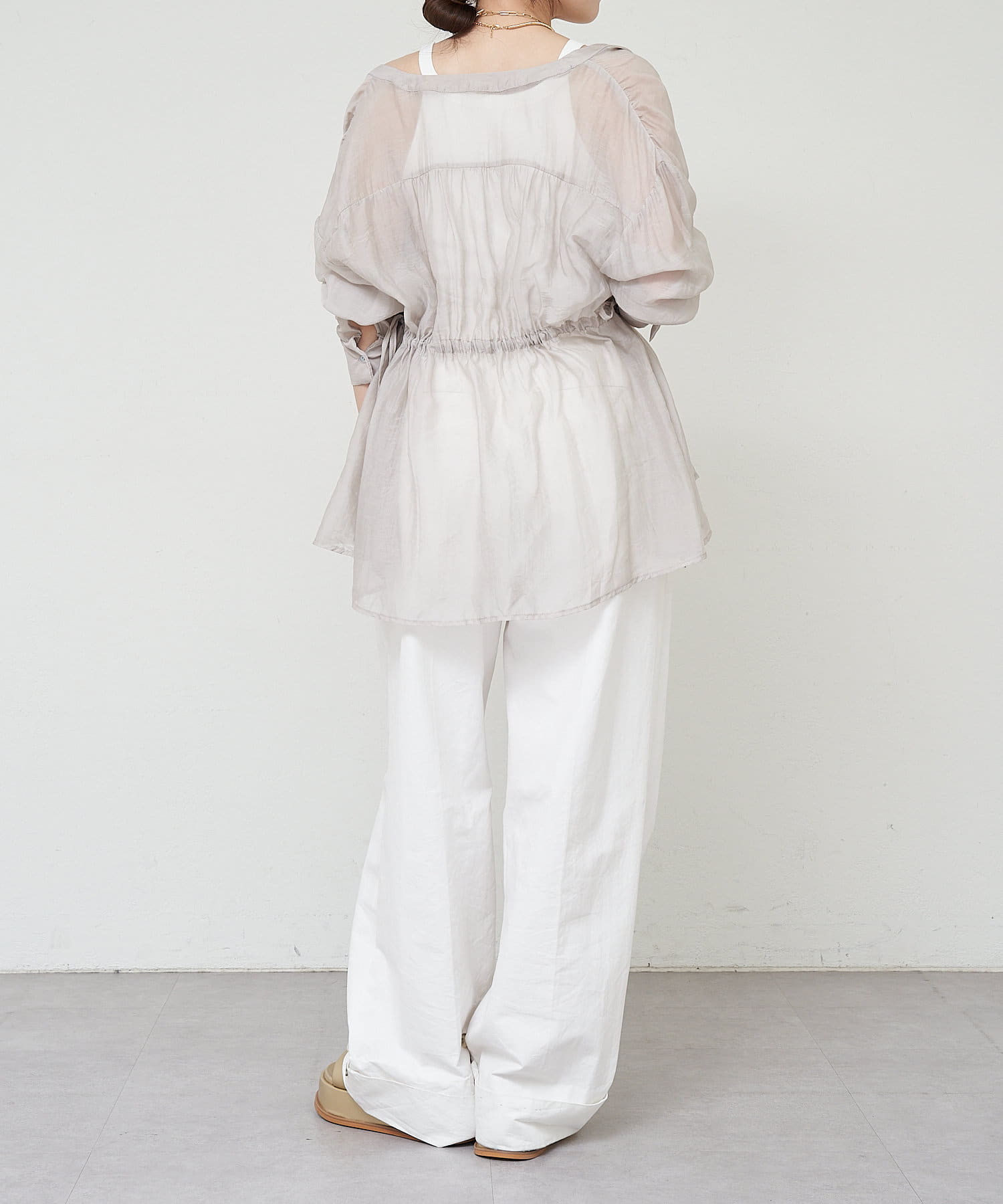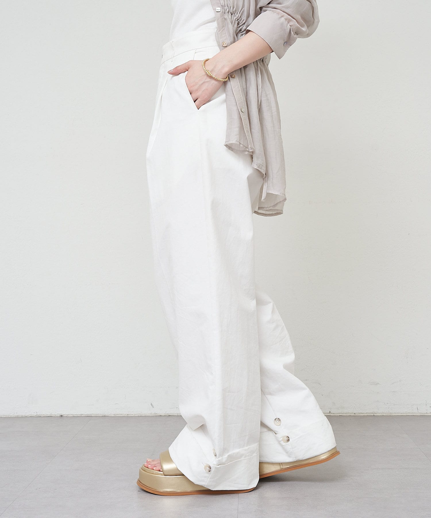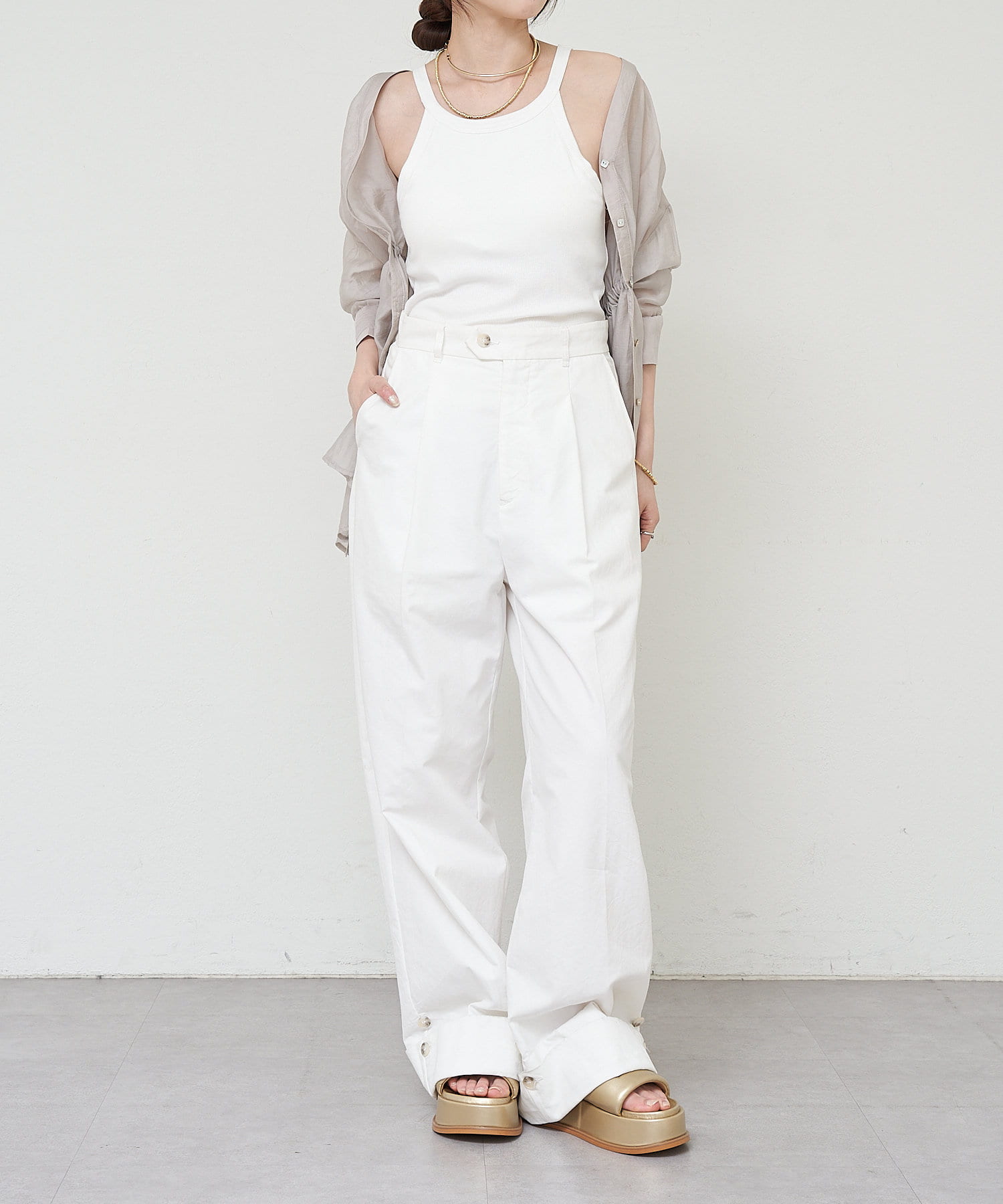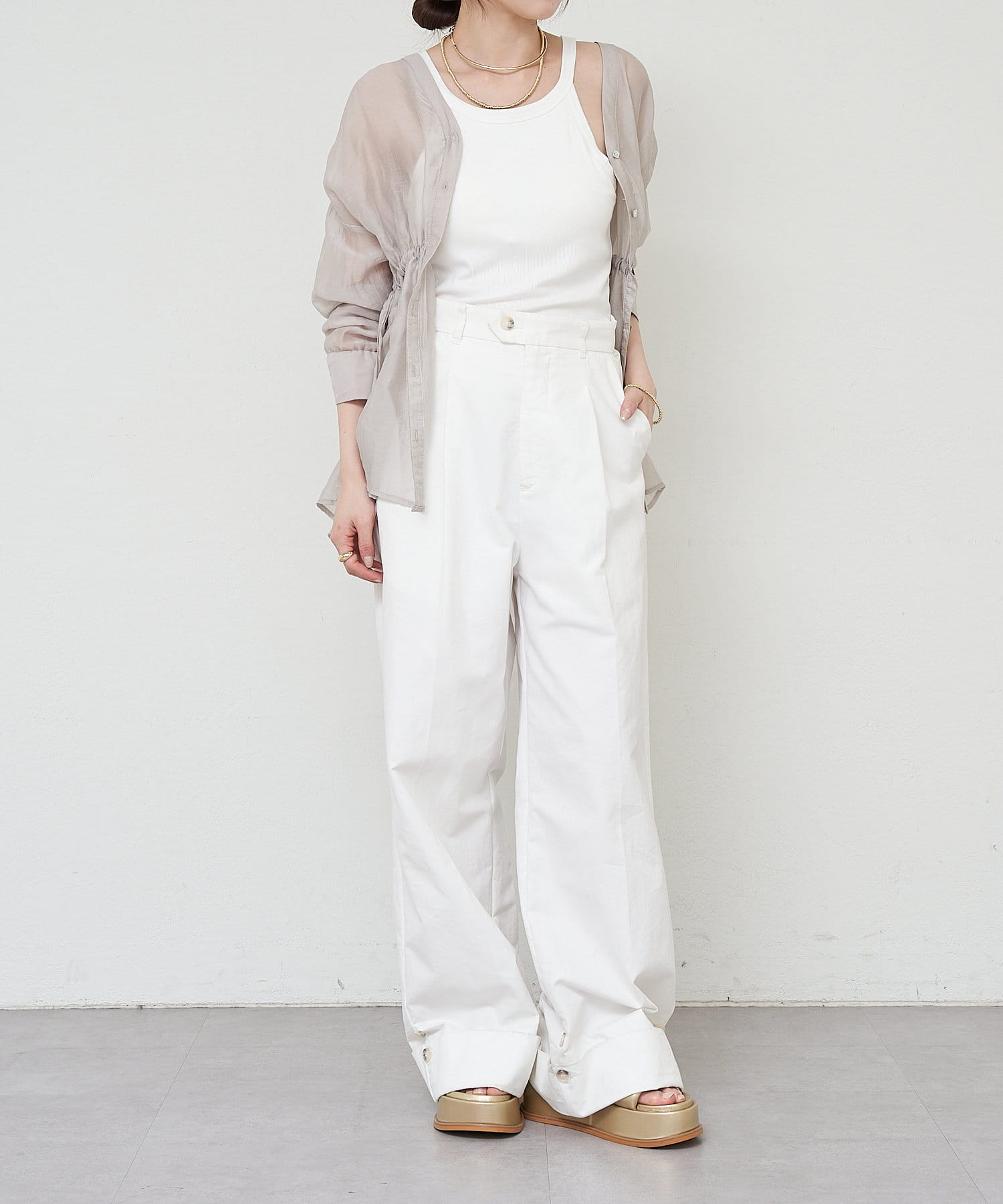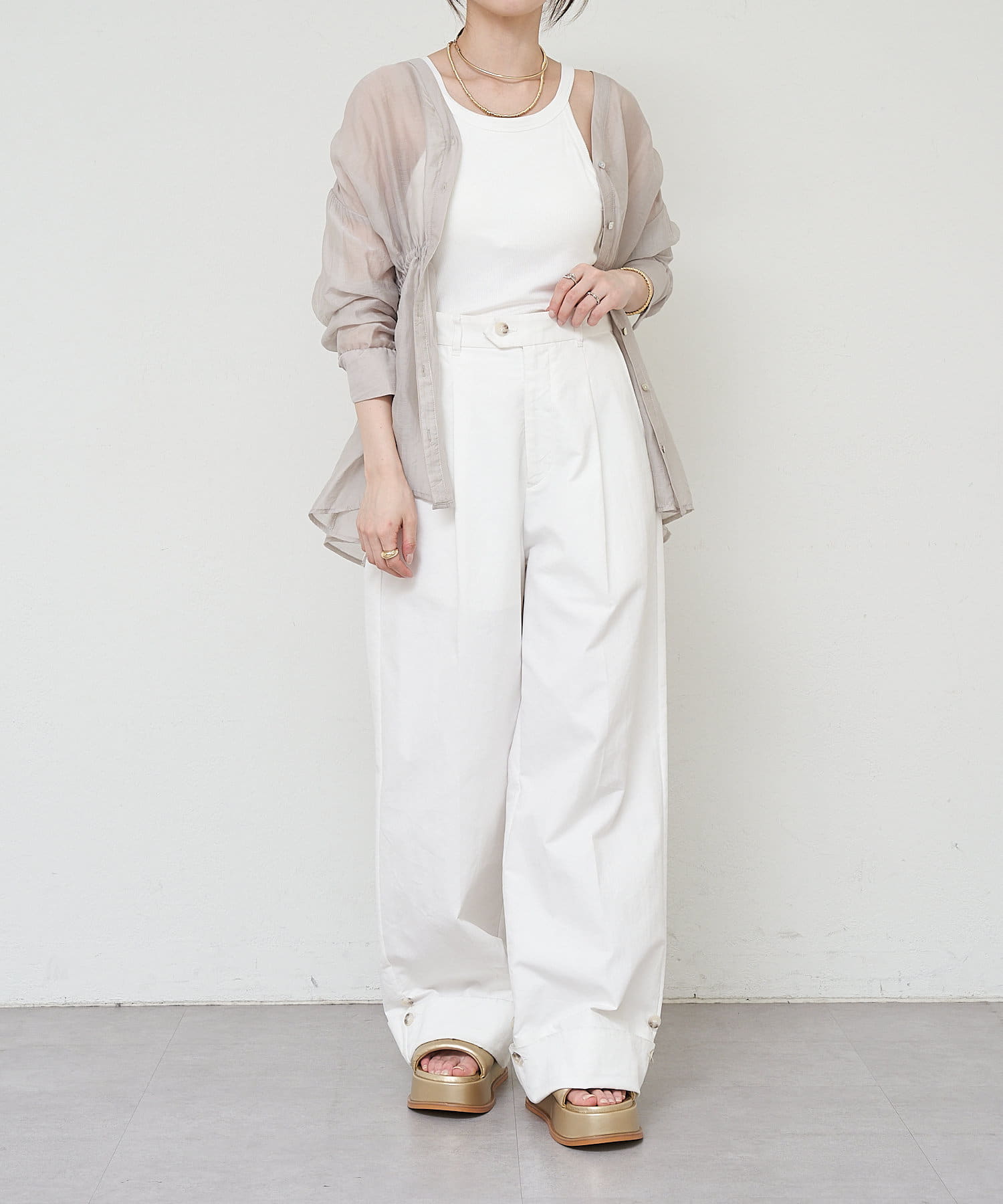 裾の両サイドに3段階のボタンが付いているので、お好みの長さで調整が可能です。