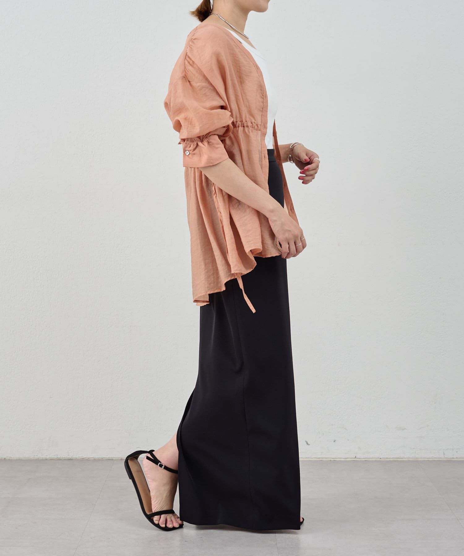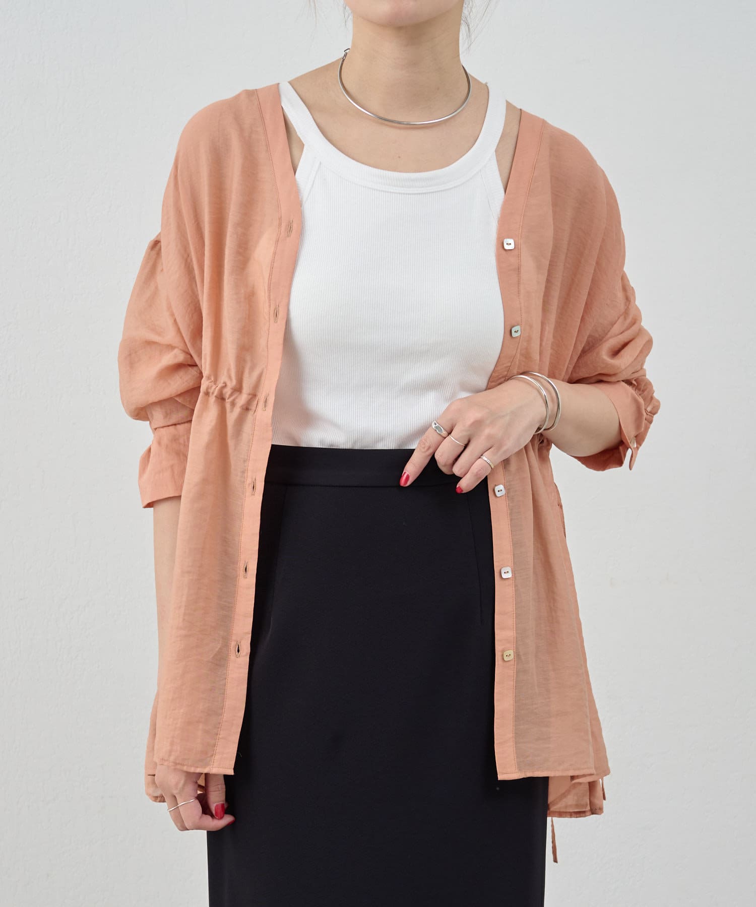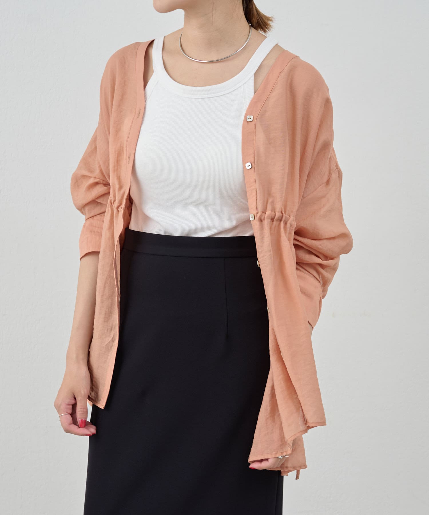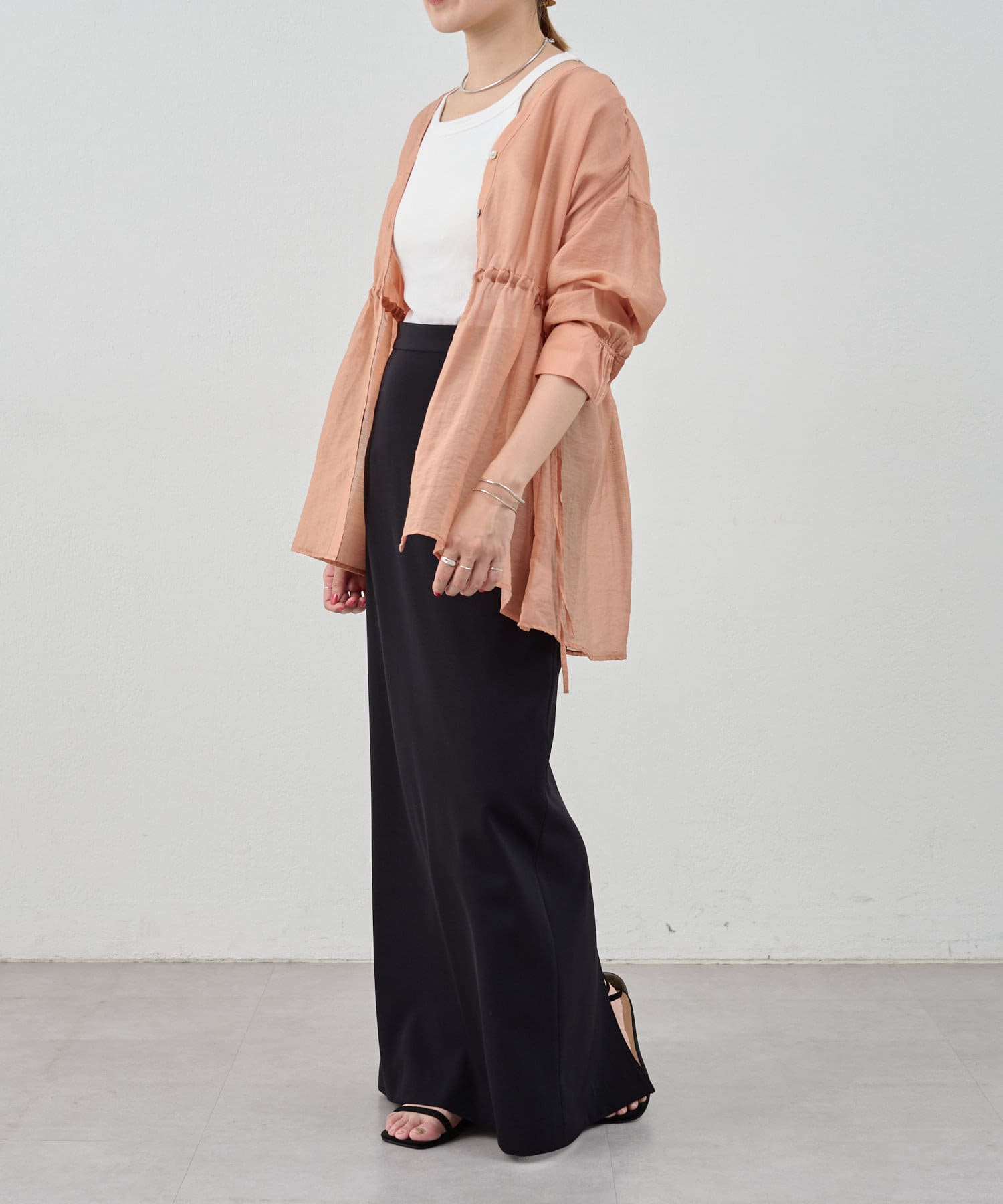 ・軽やかな印象のシアー素材が特徴的なトップス。