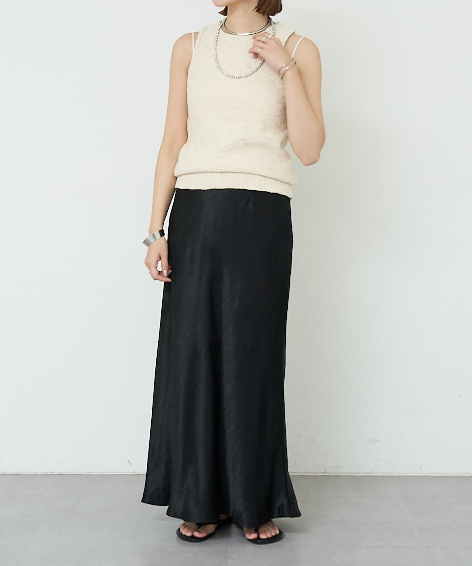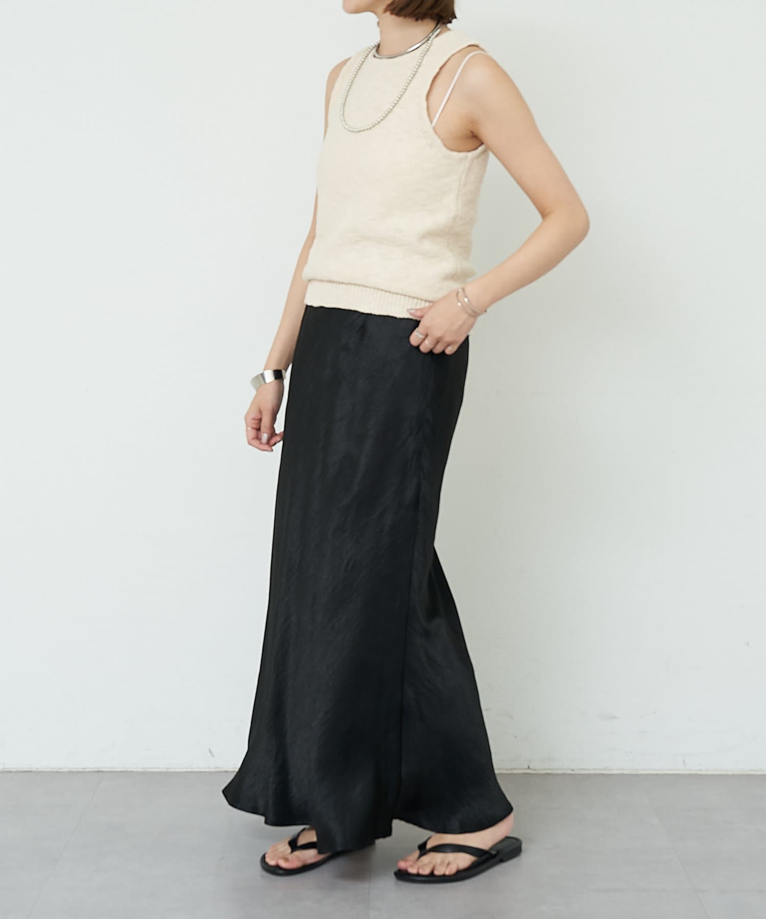 ややアメスリタイプにしているためヘルシーなスタイリングで着て頂けます。