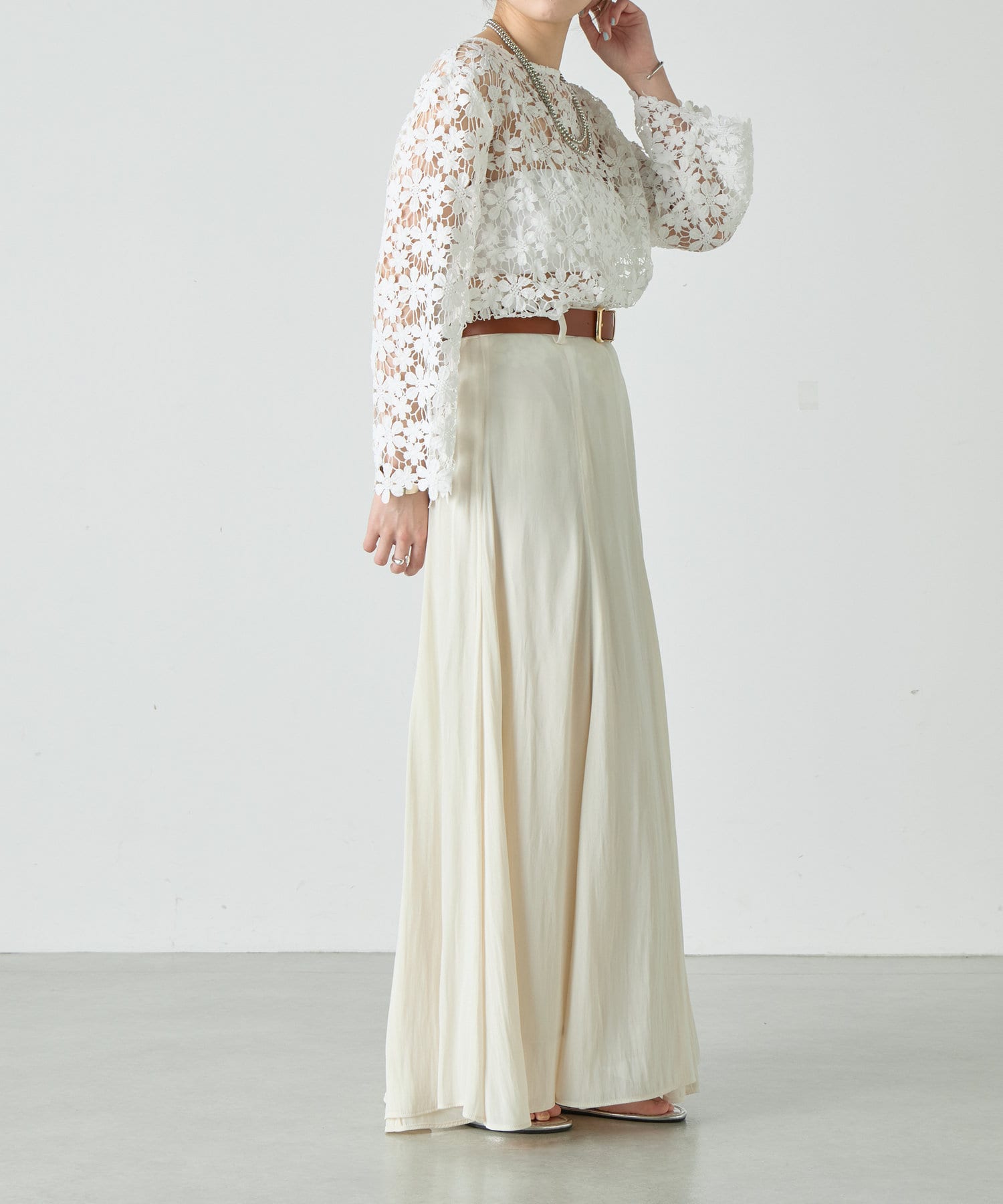 薄手の色見は少し透け感がでるのでペチコートの着用がおすすめです。