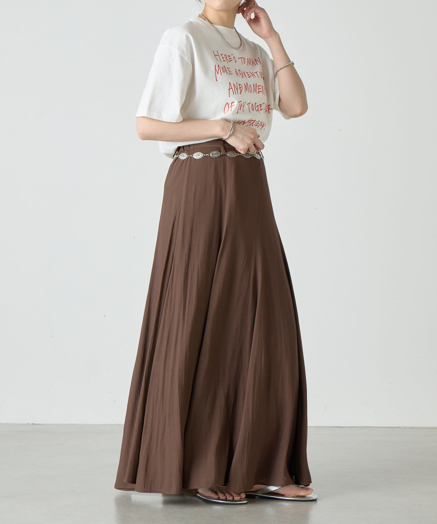 たっぷりとしたボリュームのフレアスカート