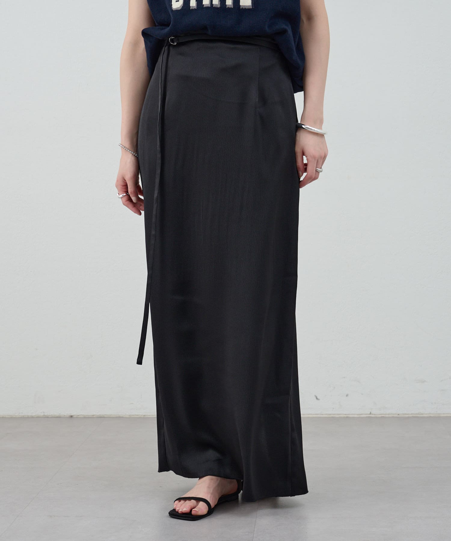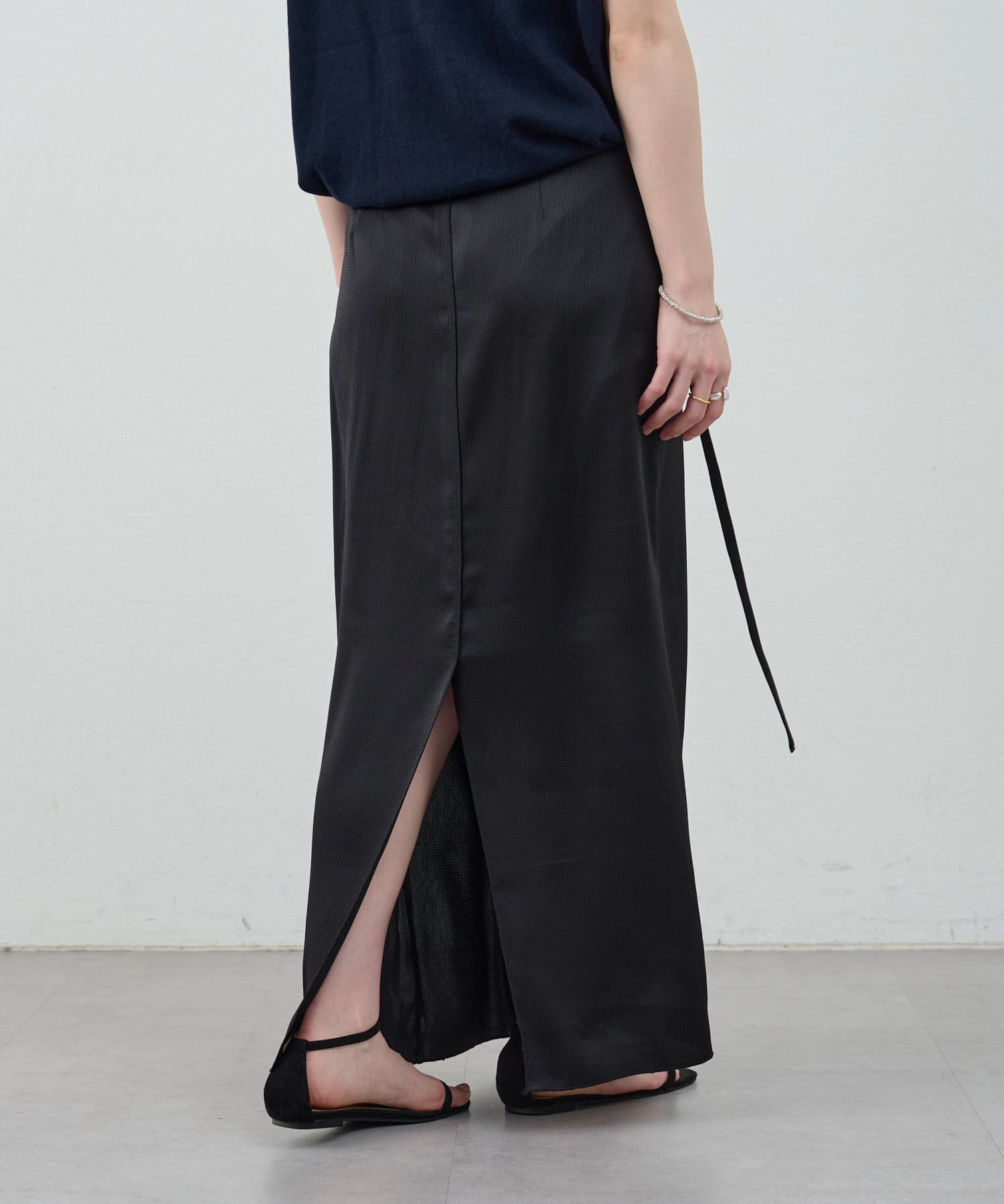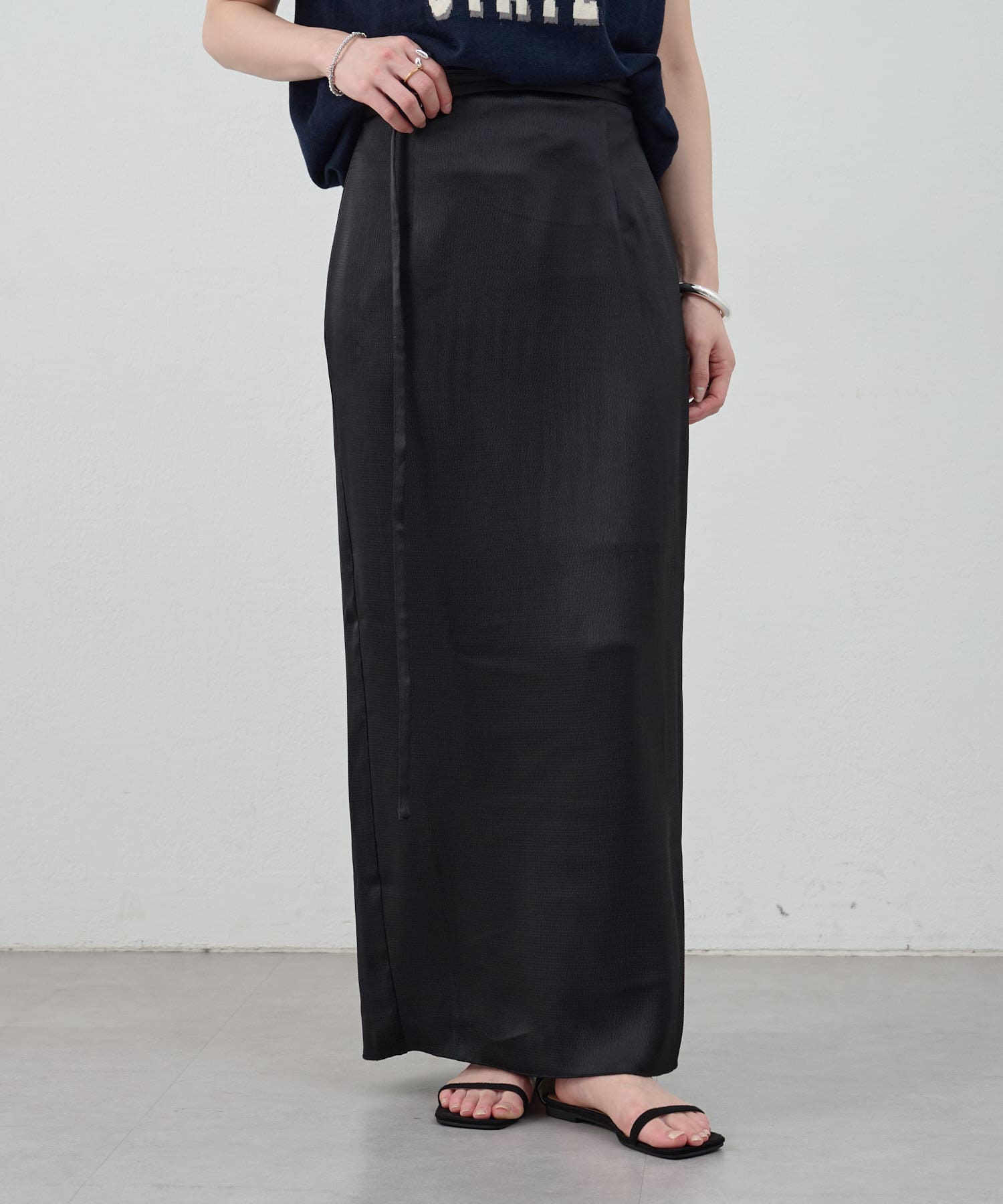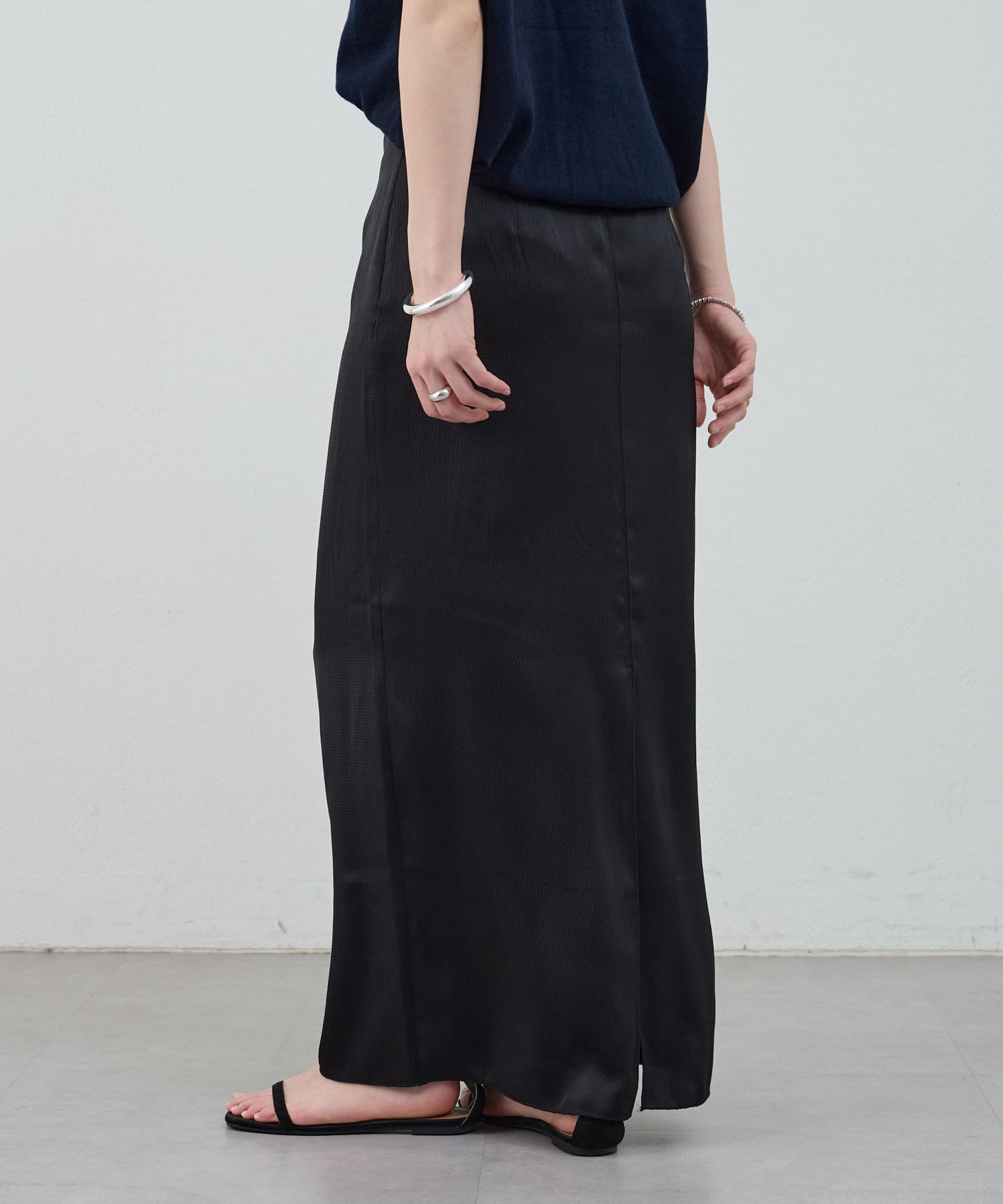 一年中、スタイリングが楽しめるサテンスカート。