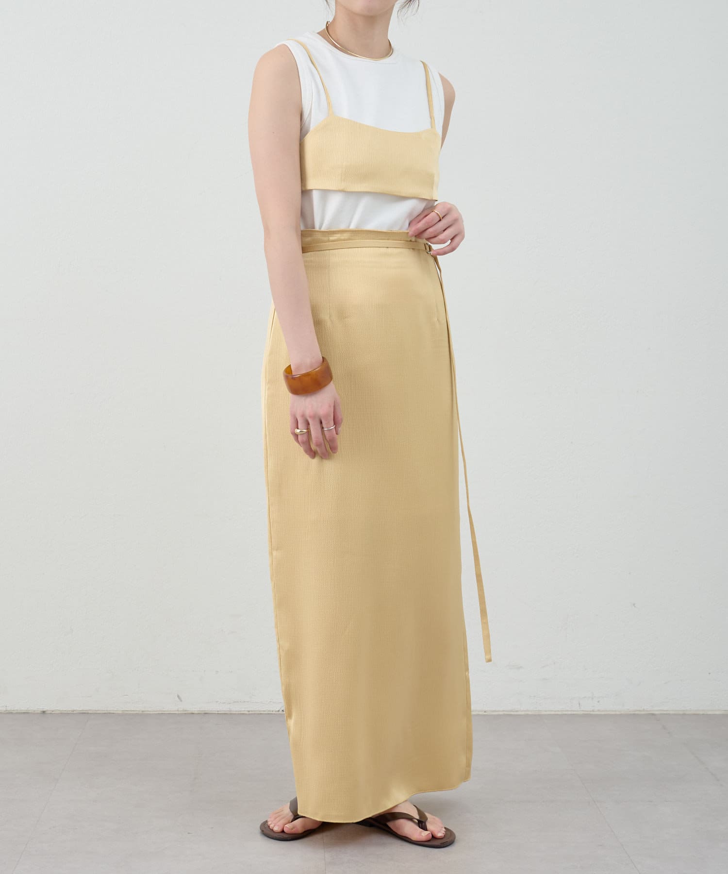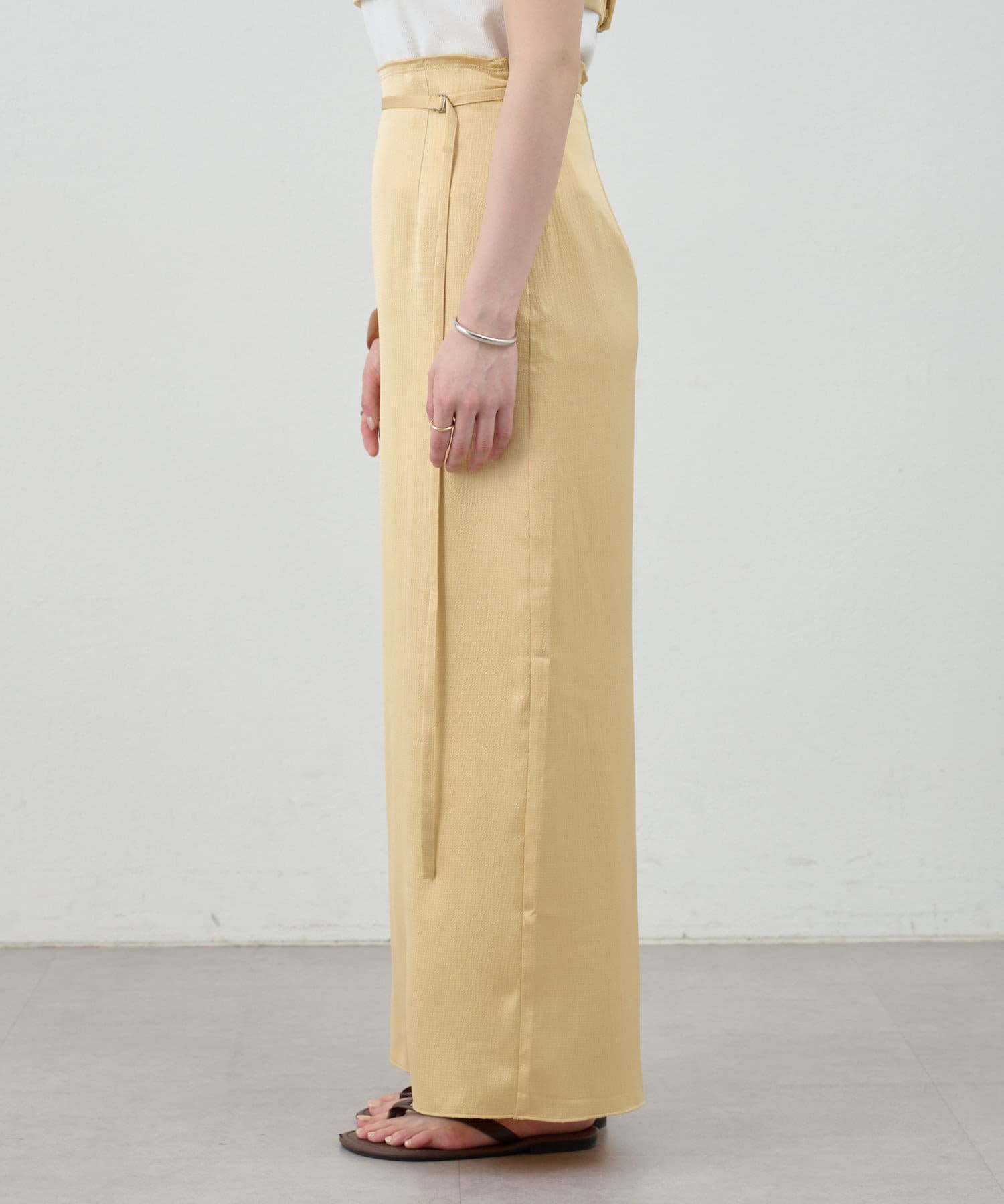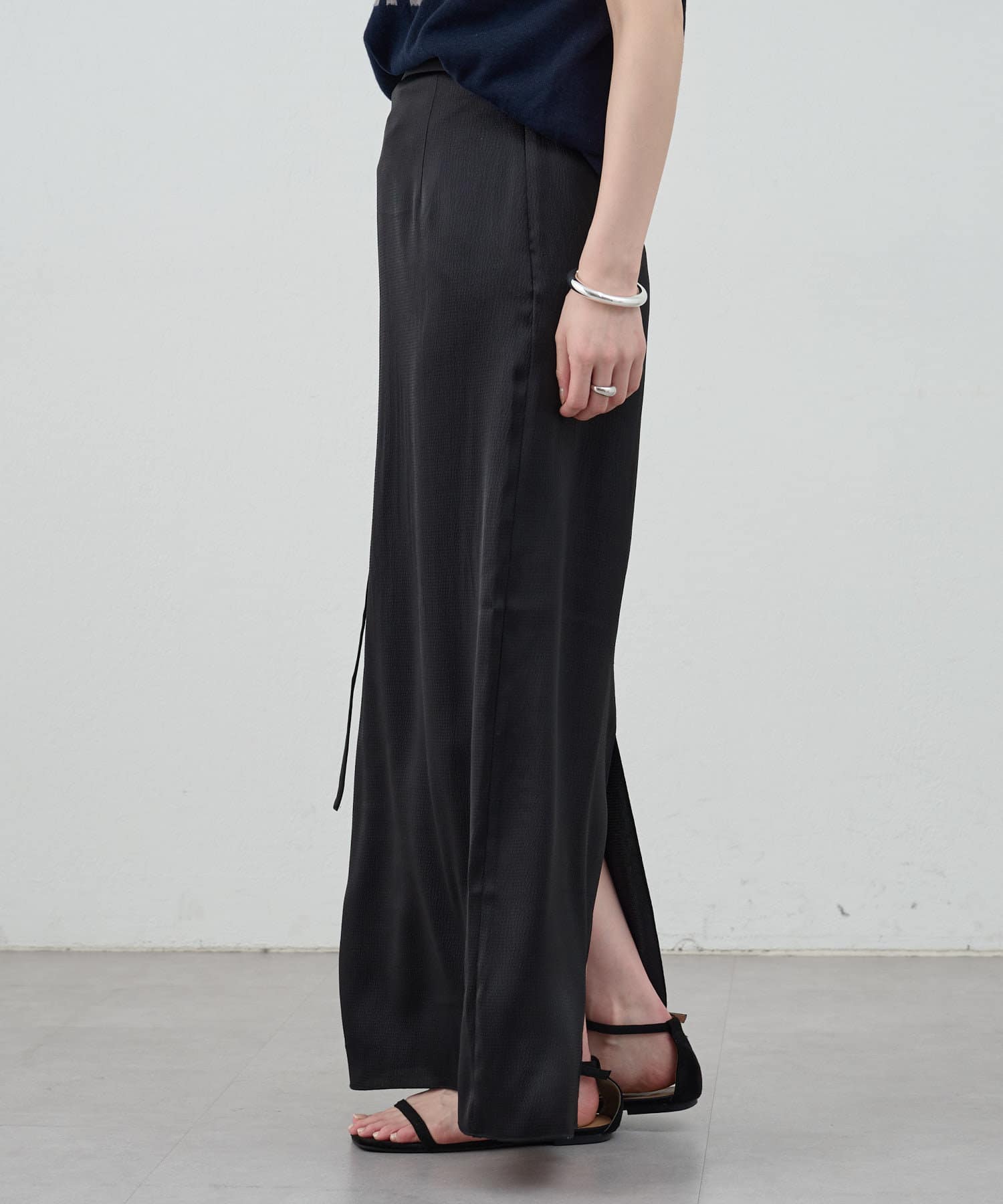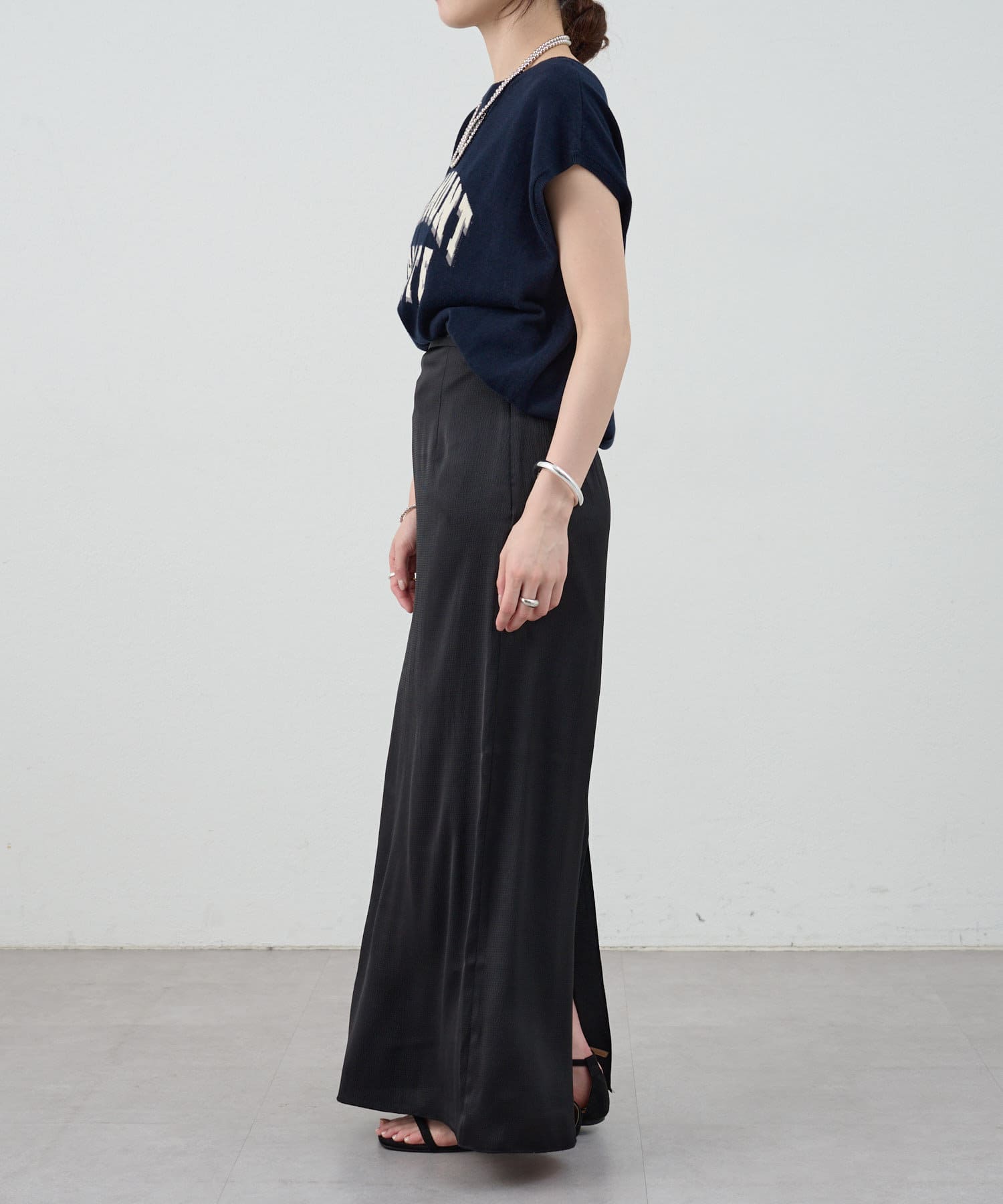 一年中、スタイリングが楽しめるサテンスカート。