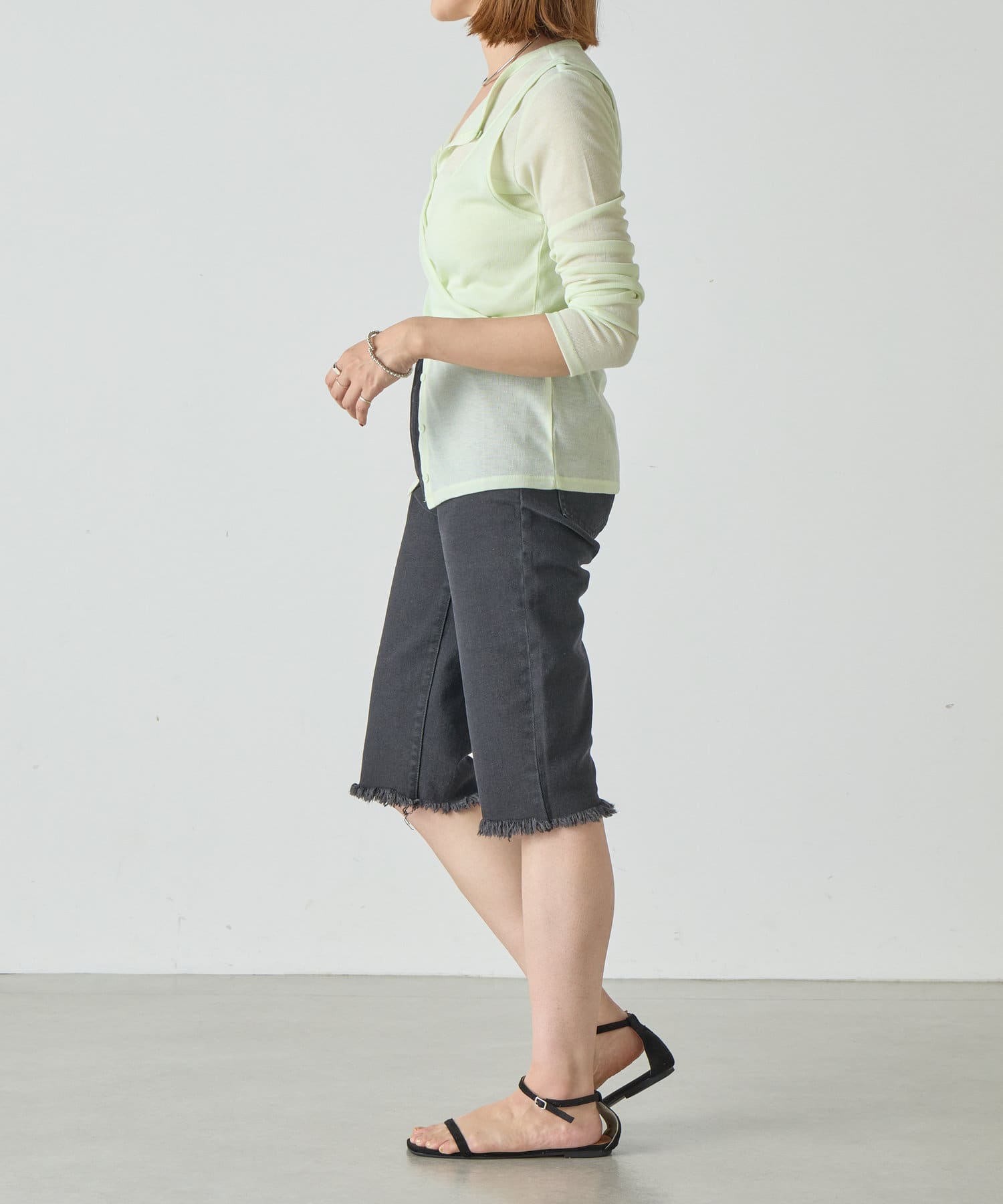カーディガンのボタンを少し開けることで
