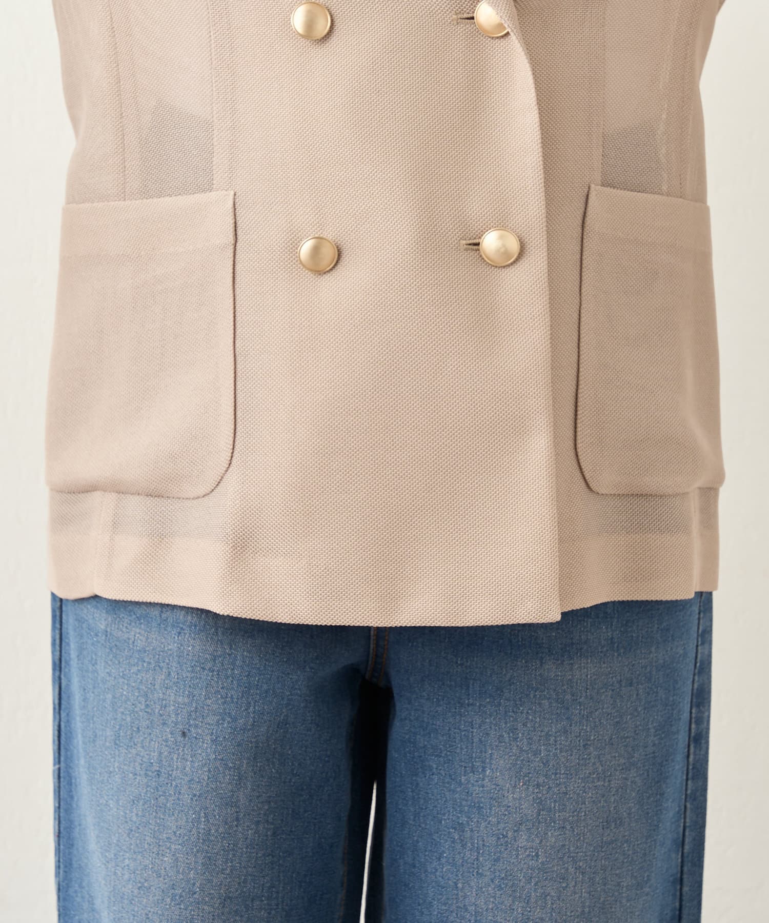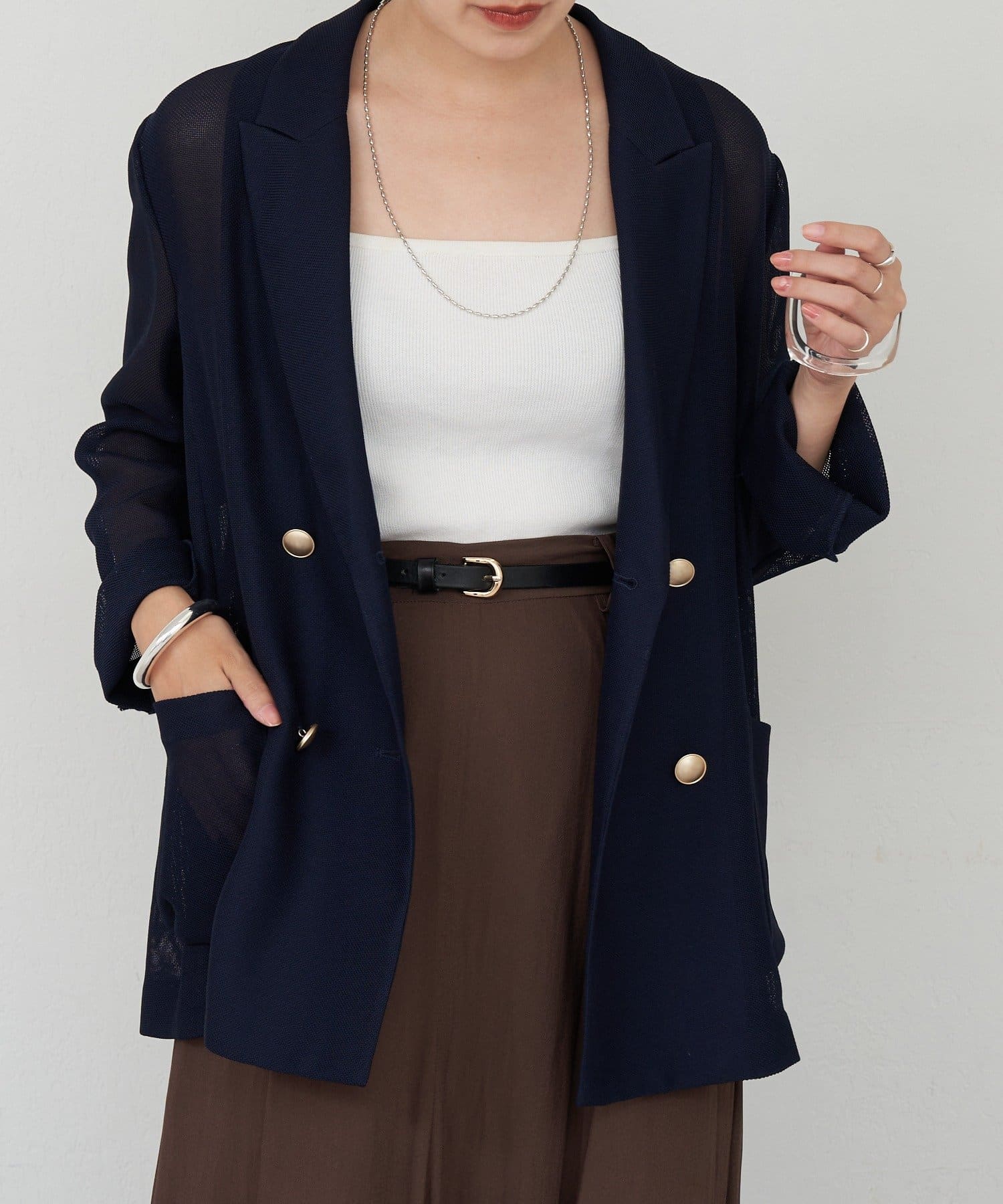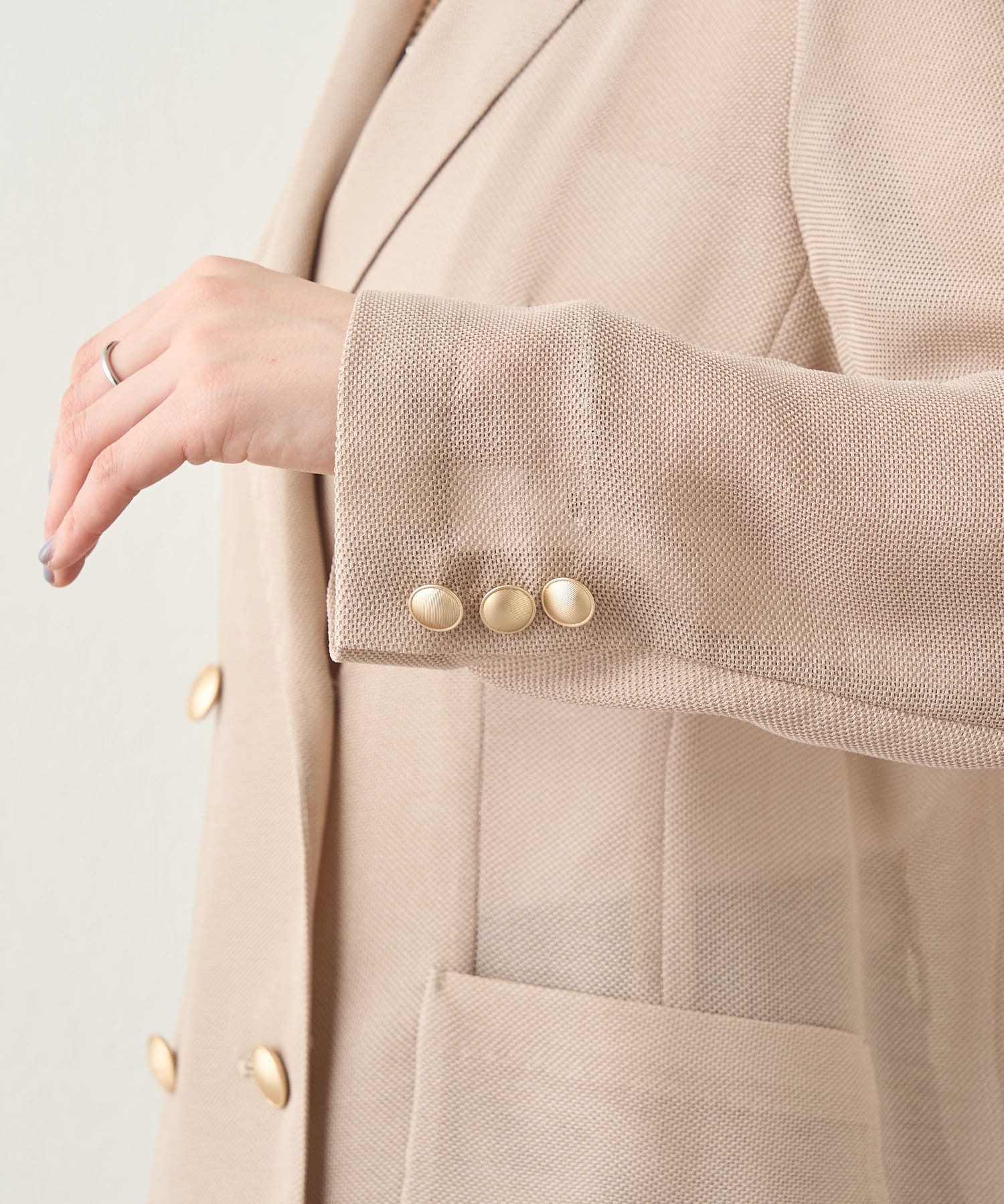 粗すぎないメッシュ素材と、ゴールドのボタンで上品なスタイルに。