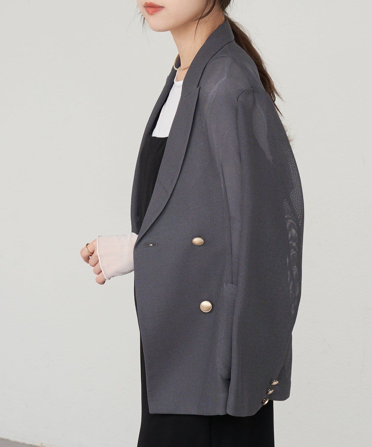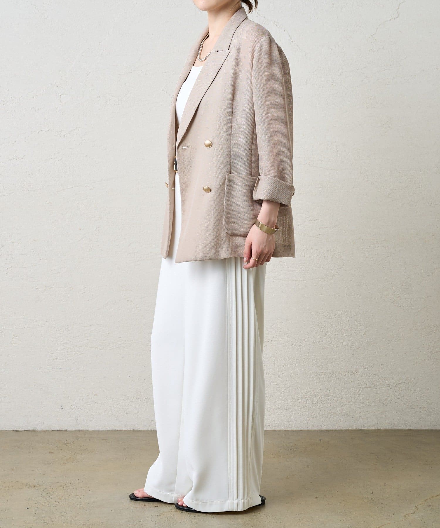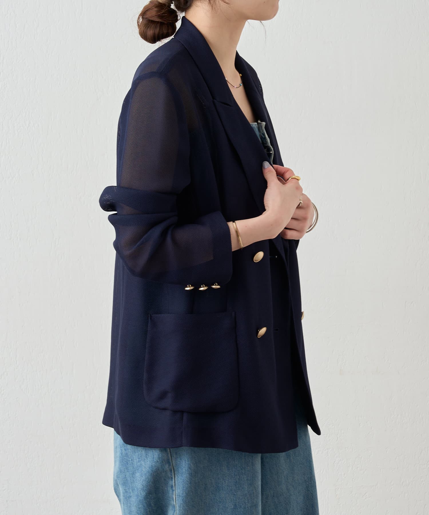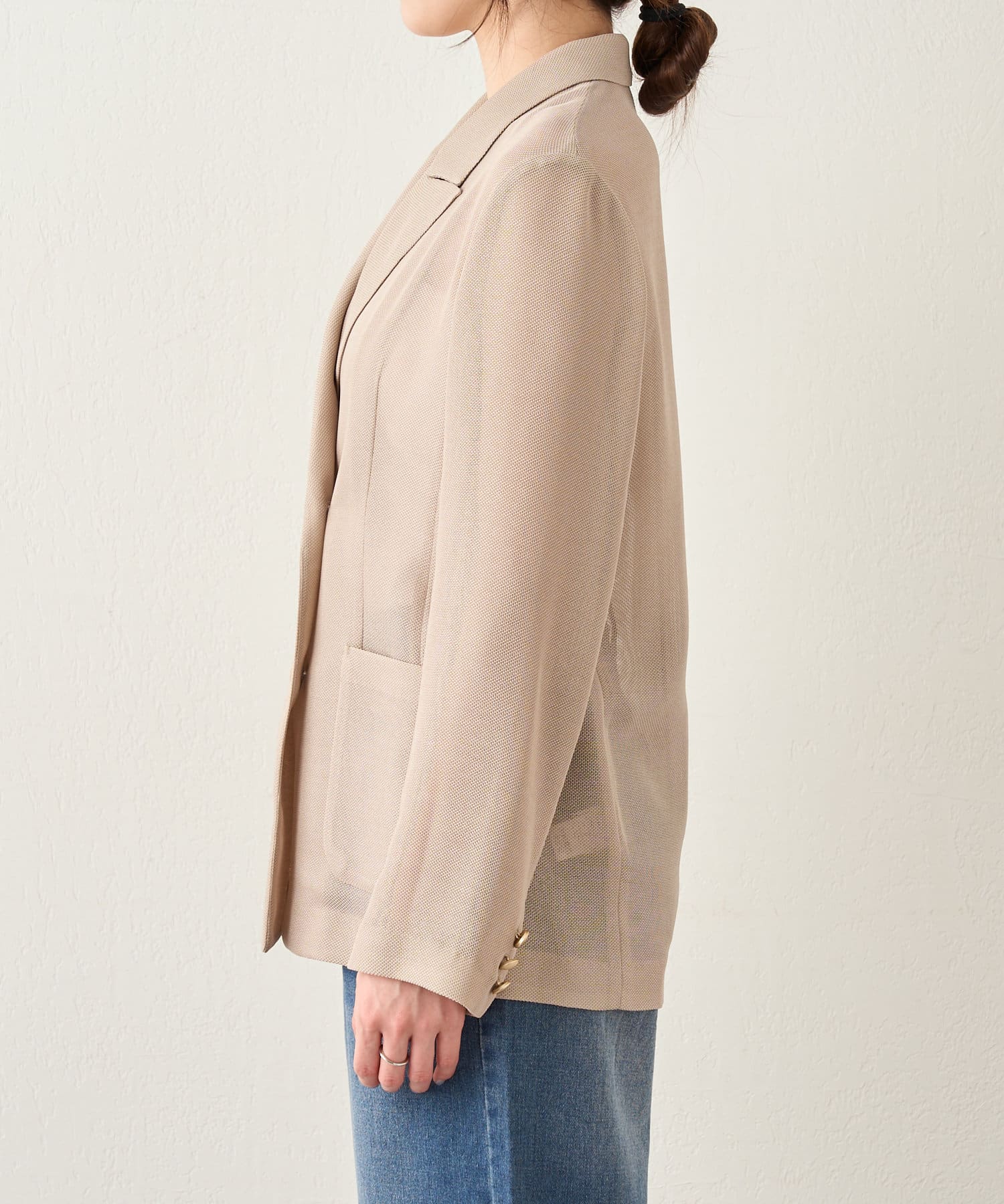 粗すぎないメッシュ素材と、ゴールドのボタンで上品なスタイルに。