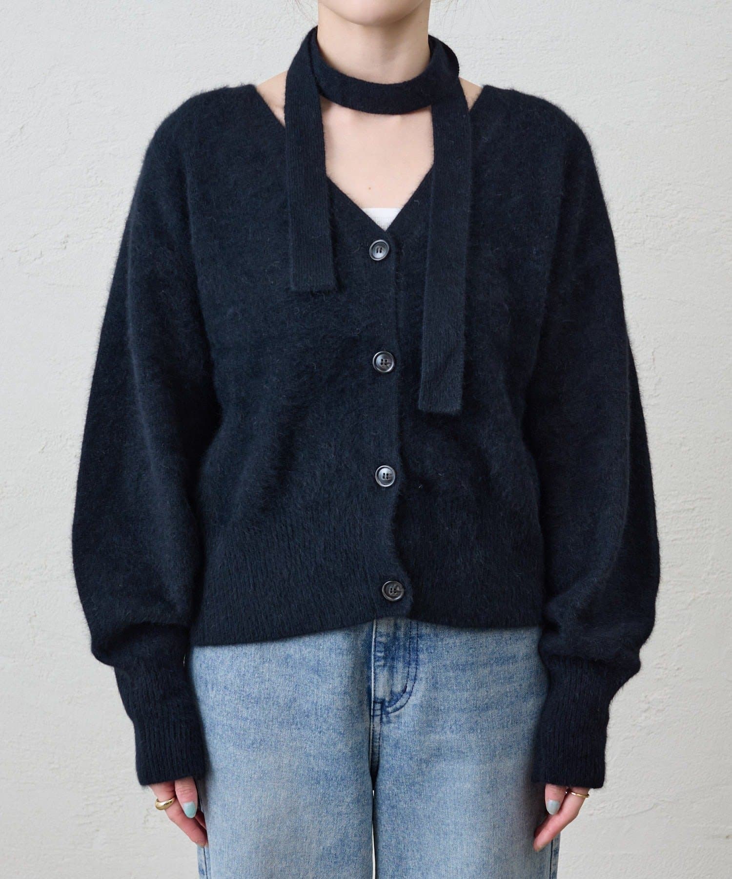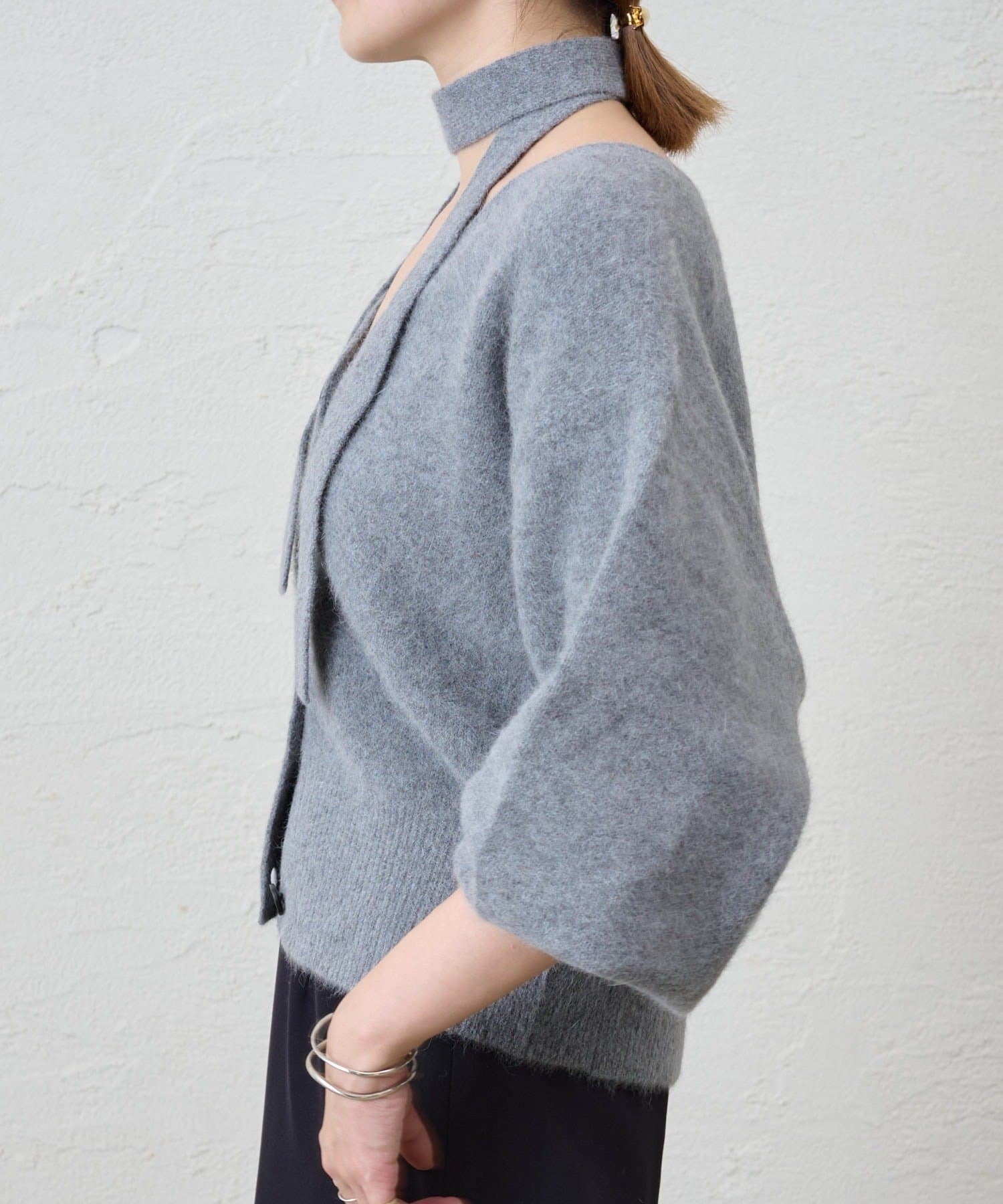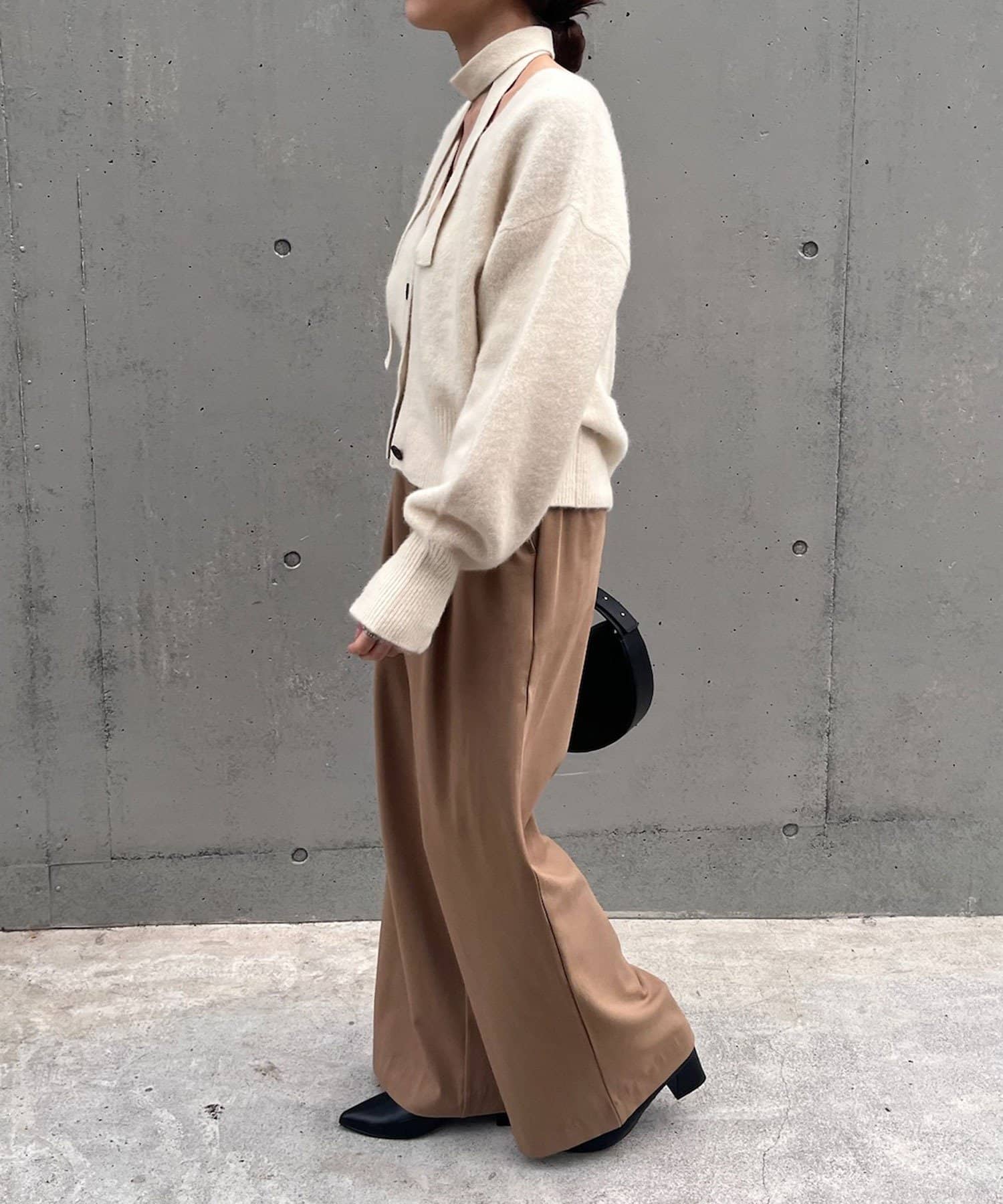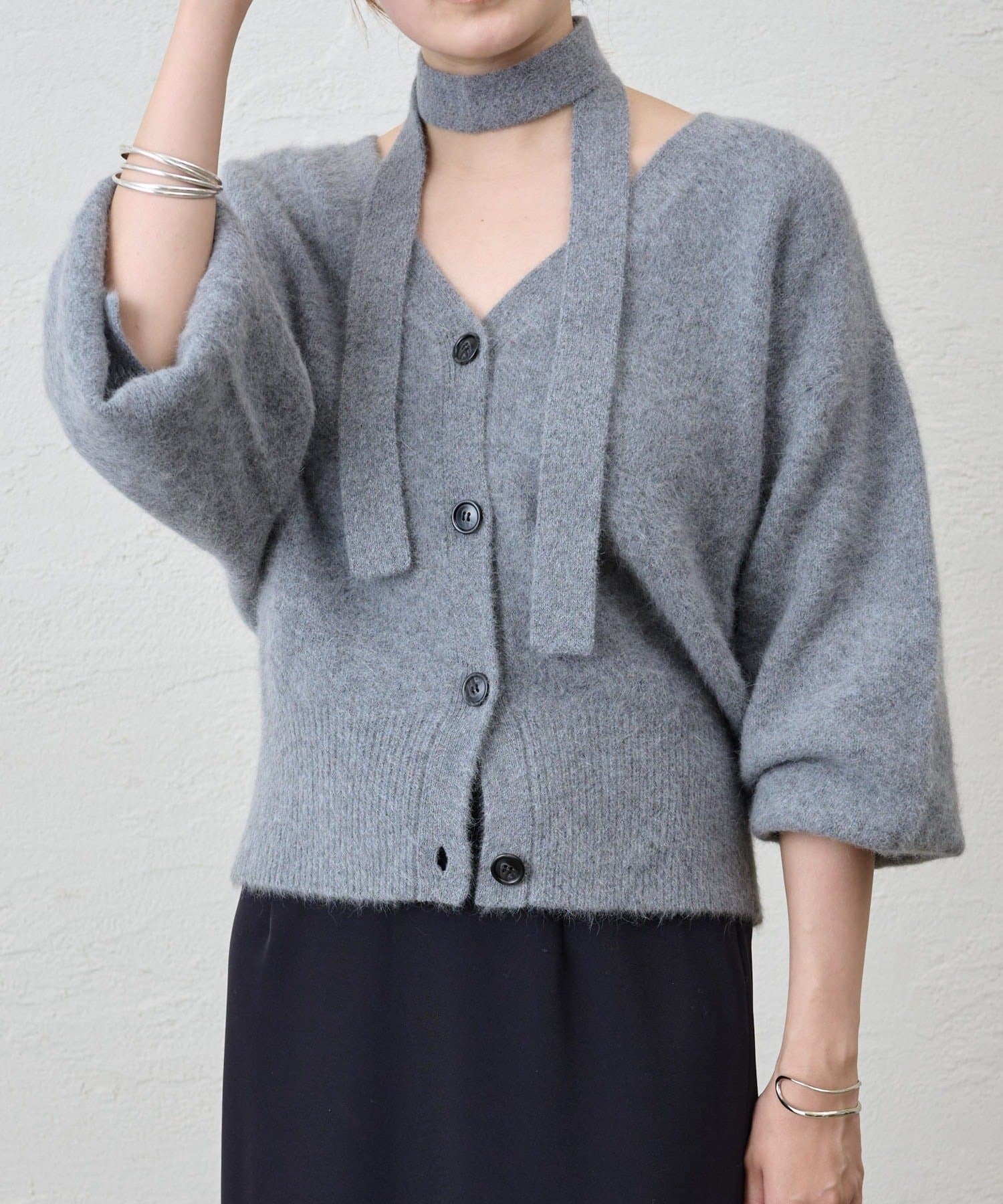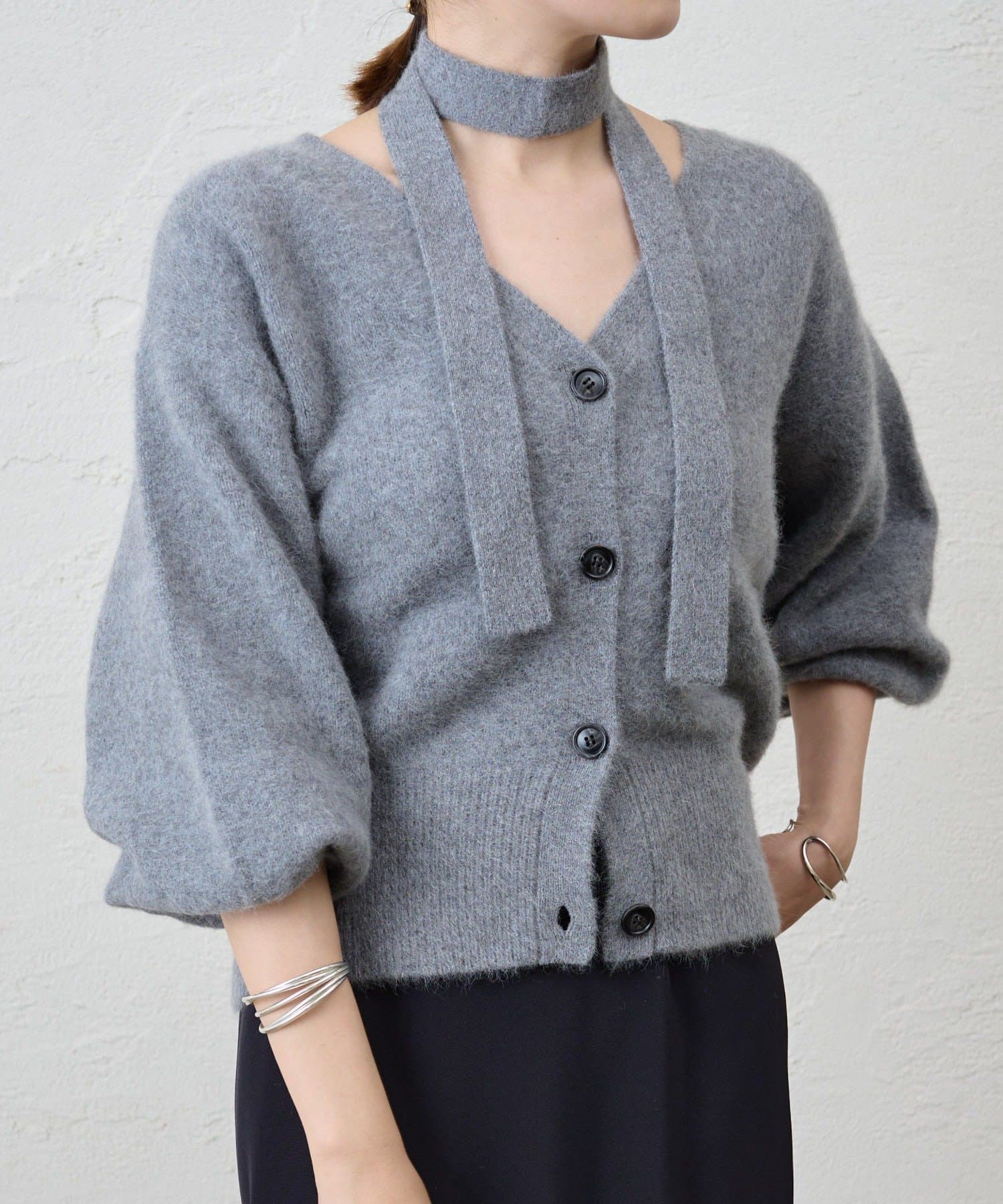 毎年人気のカーディガンは今年はトレンド感を出すためにタイ付きにしています。