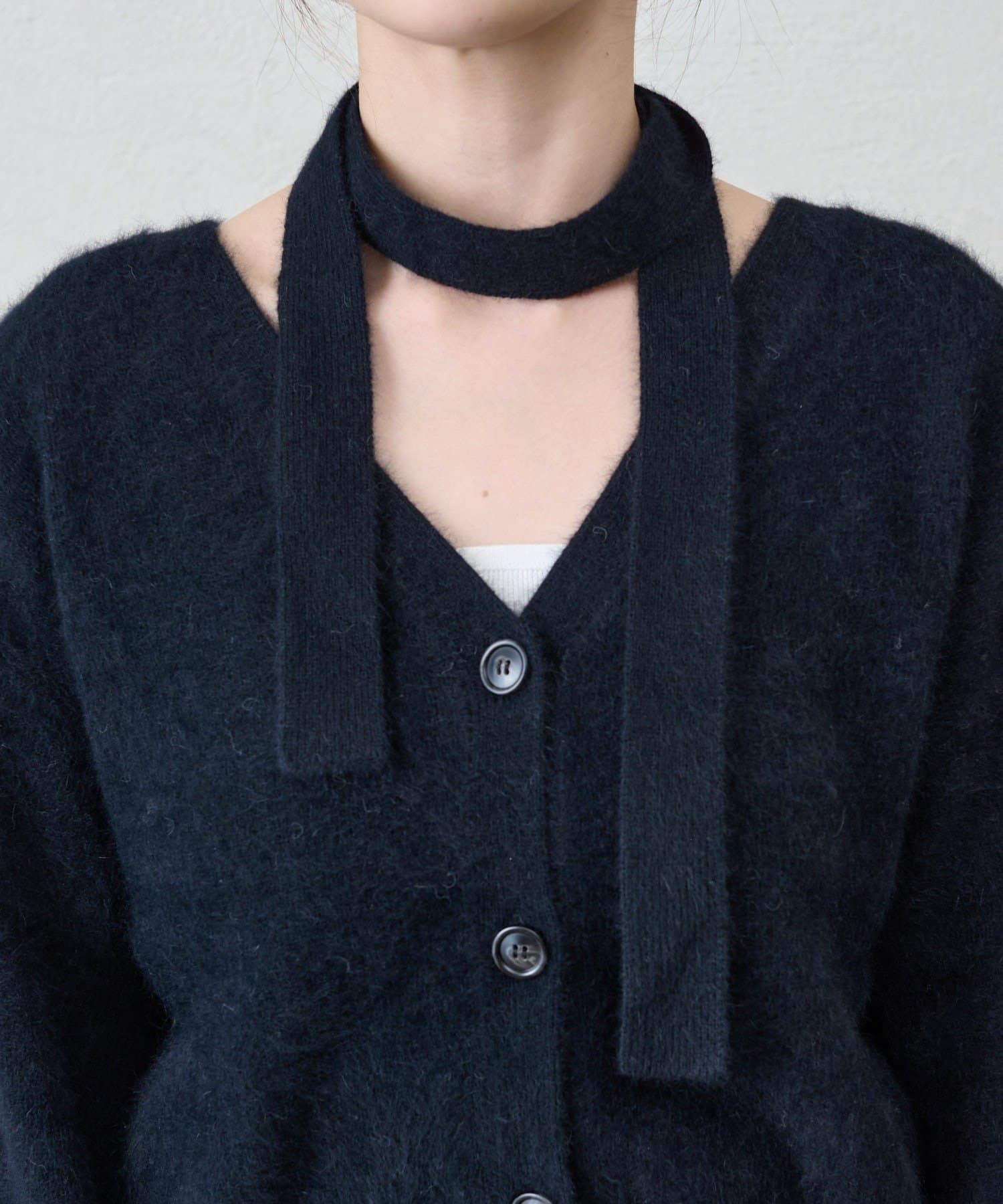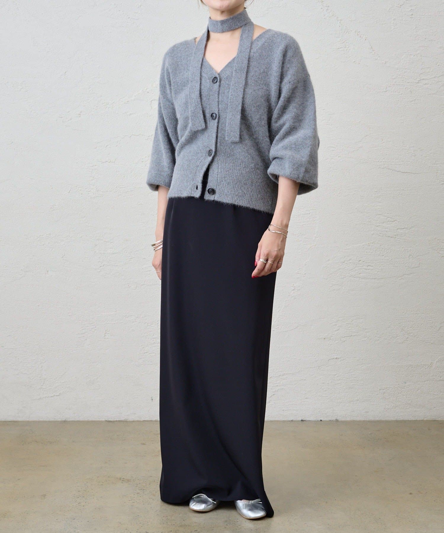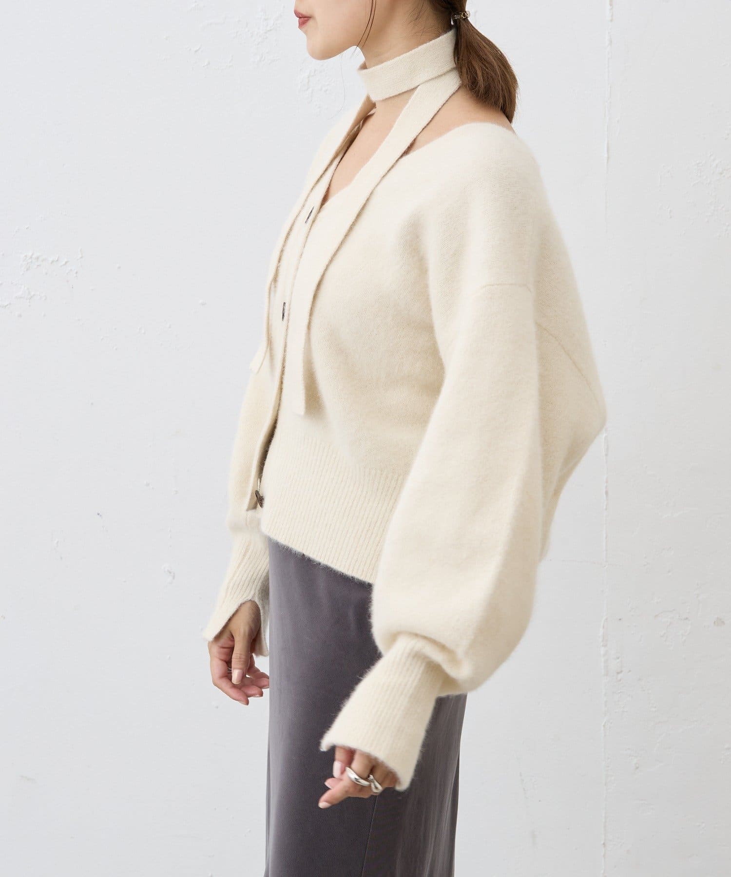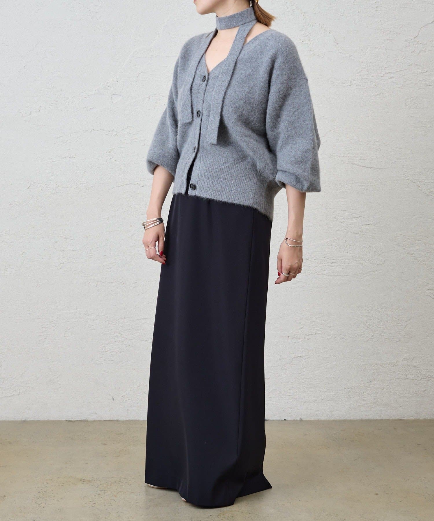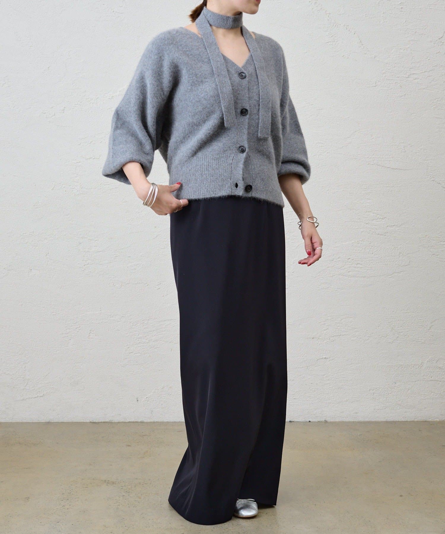 毎年人気のカーディガンは今年はトレンド感を出すためにタイ付きにしています。