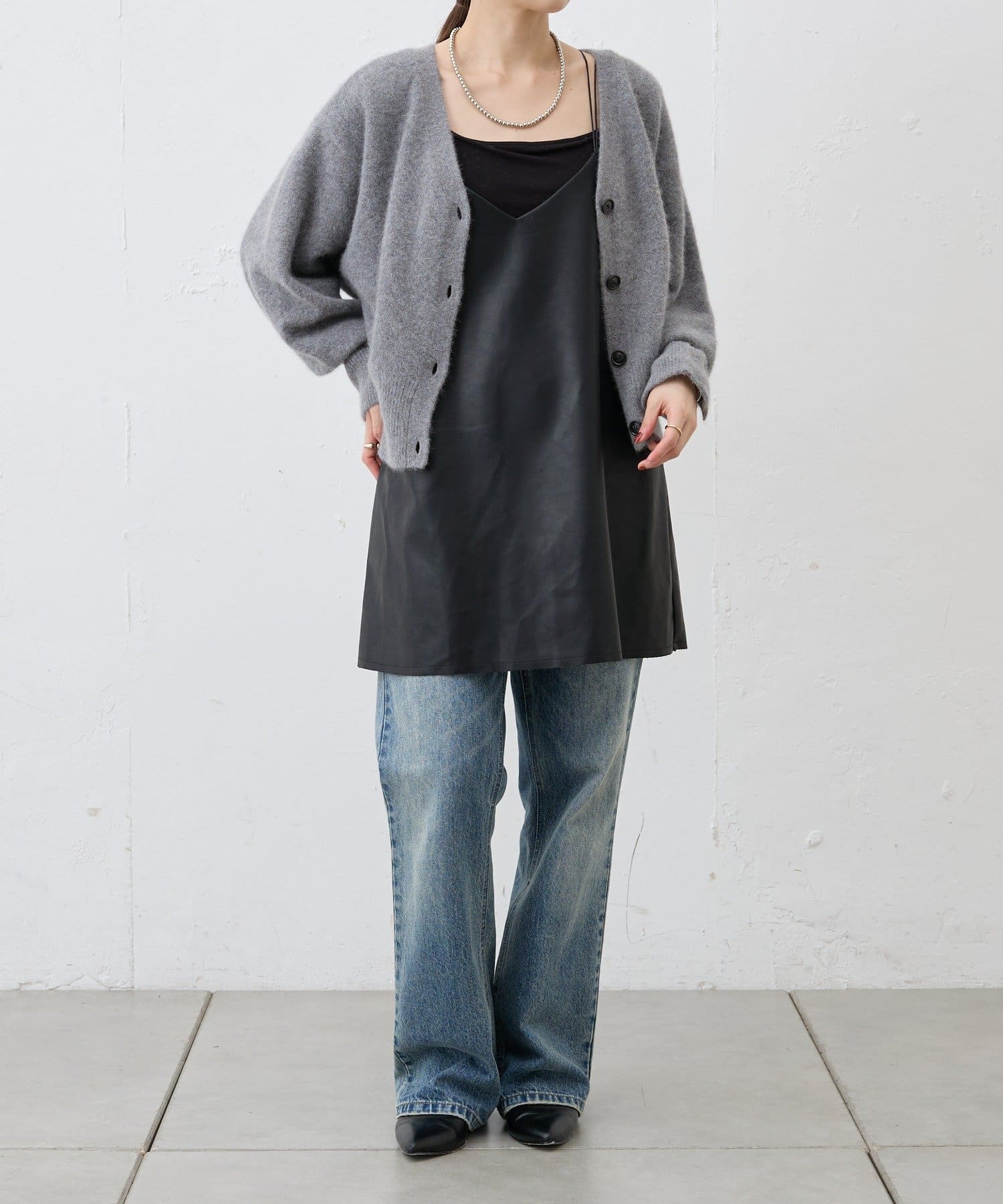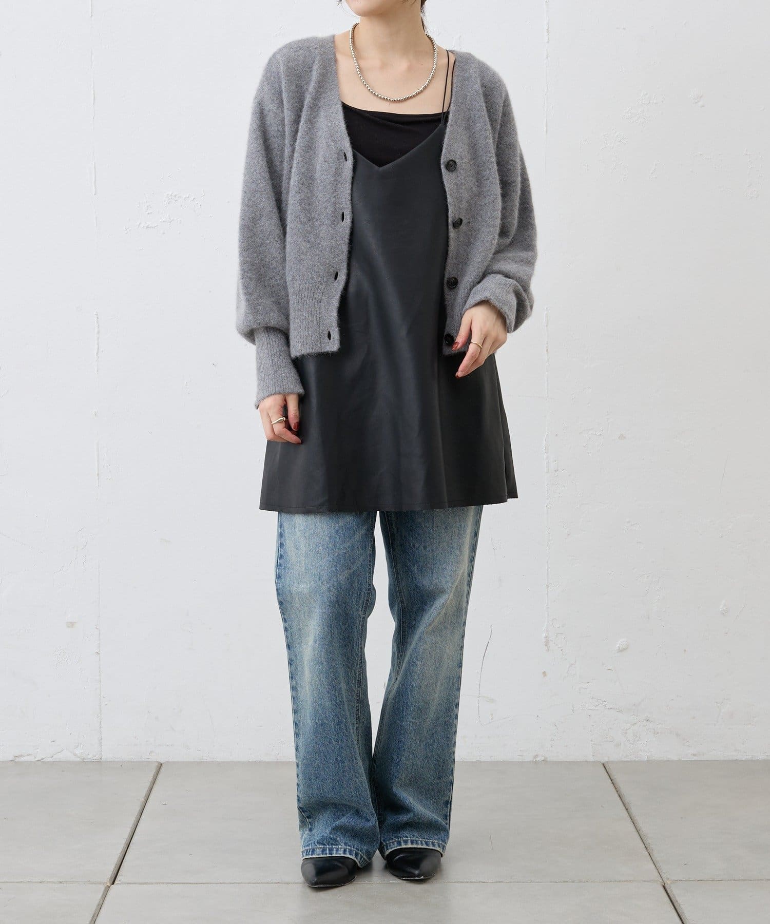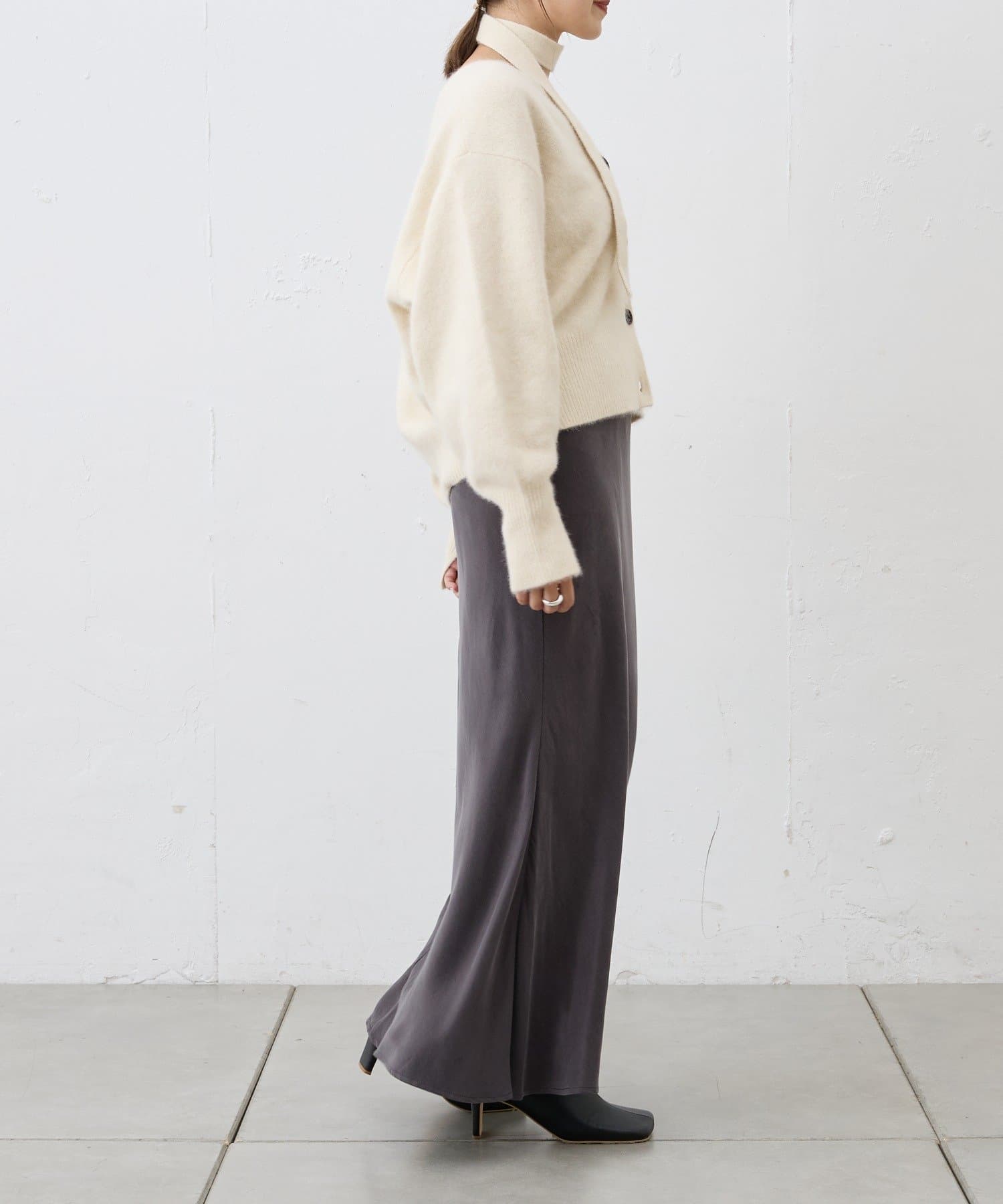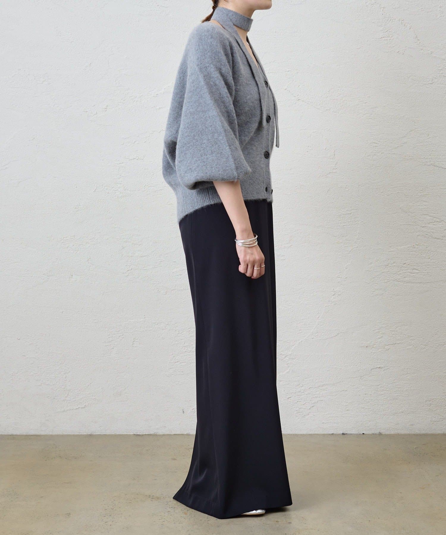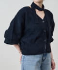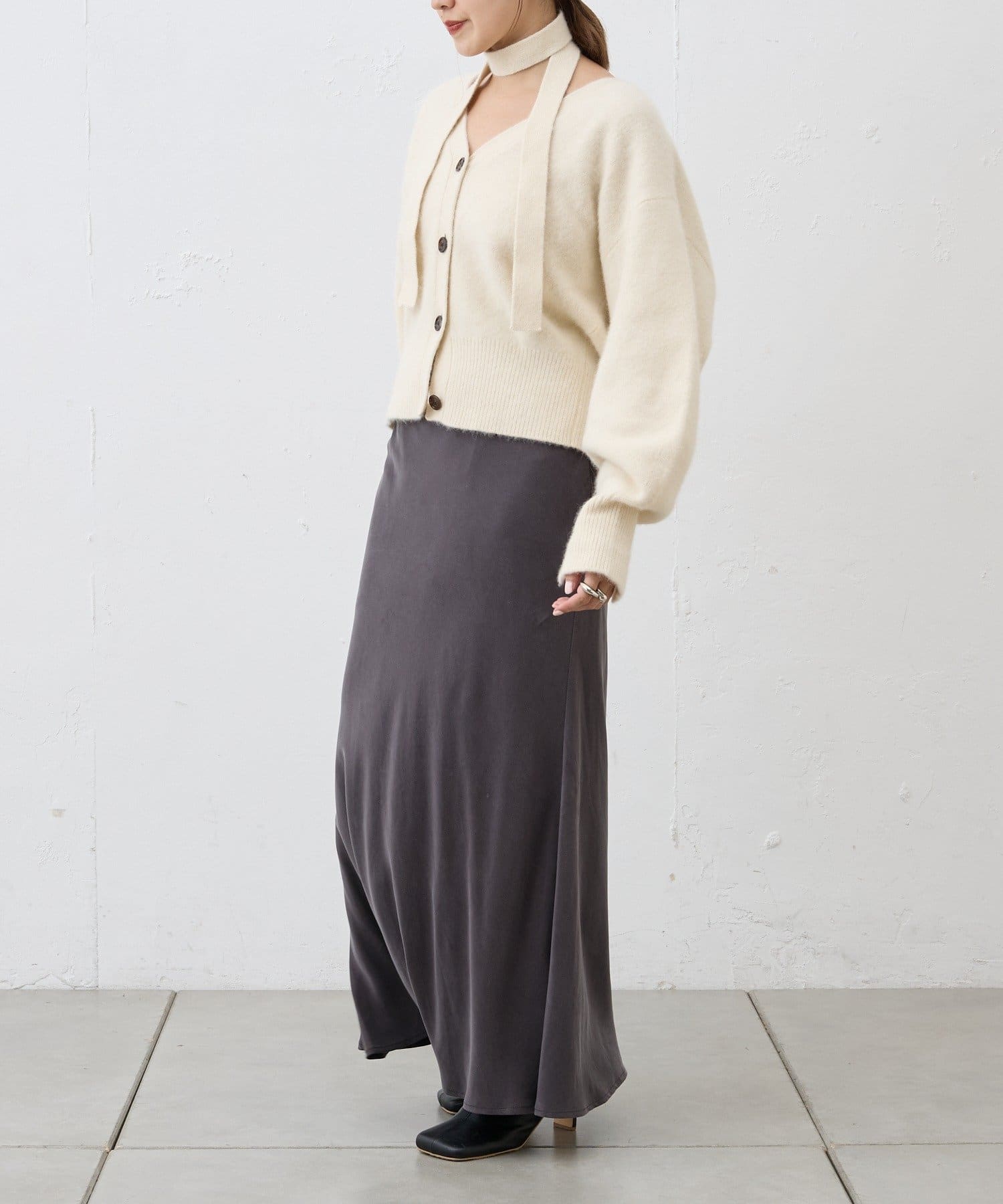毎年人気のカーディガンは今年はトレンド感を出すためにタイ付きにしています。