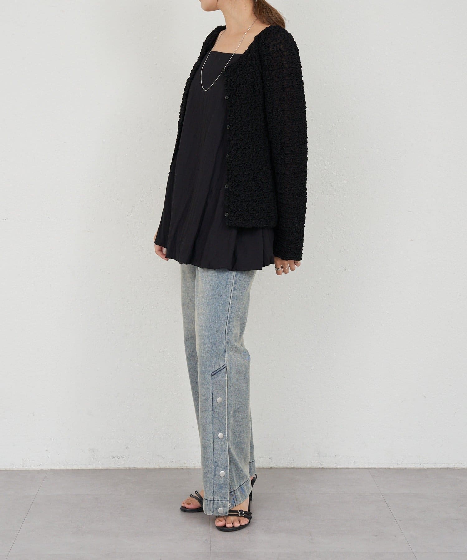 ※この製品の生地は表面が引っ掛かり易い為、着用時や着脱時に指輪やバッグなどの身の回り品との引っ掛かりにご注意ください。