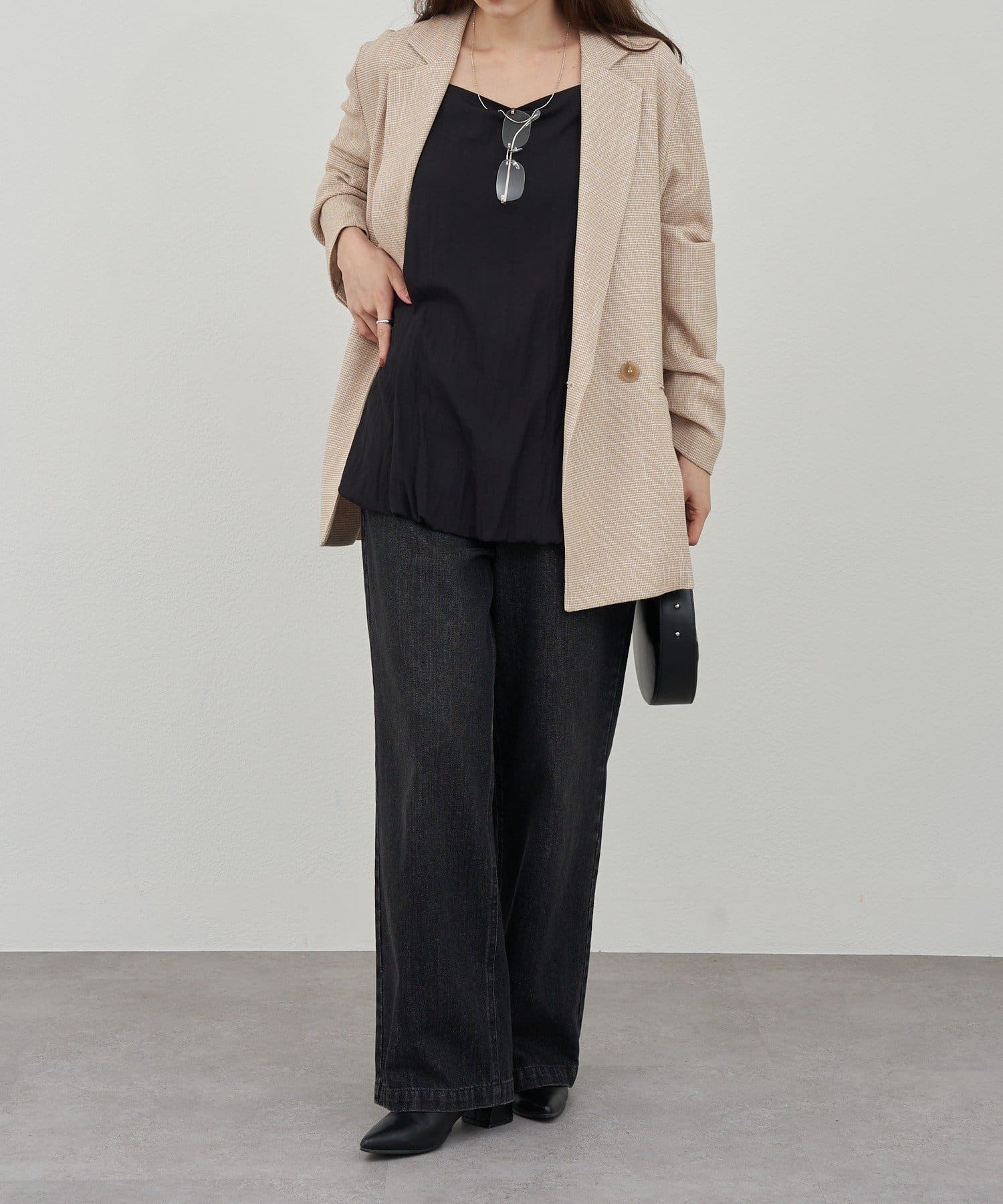 自然に体型をカバーしつつ、女性らしいやわらかな印象を演出します。